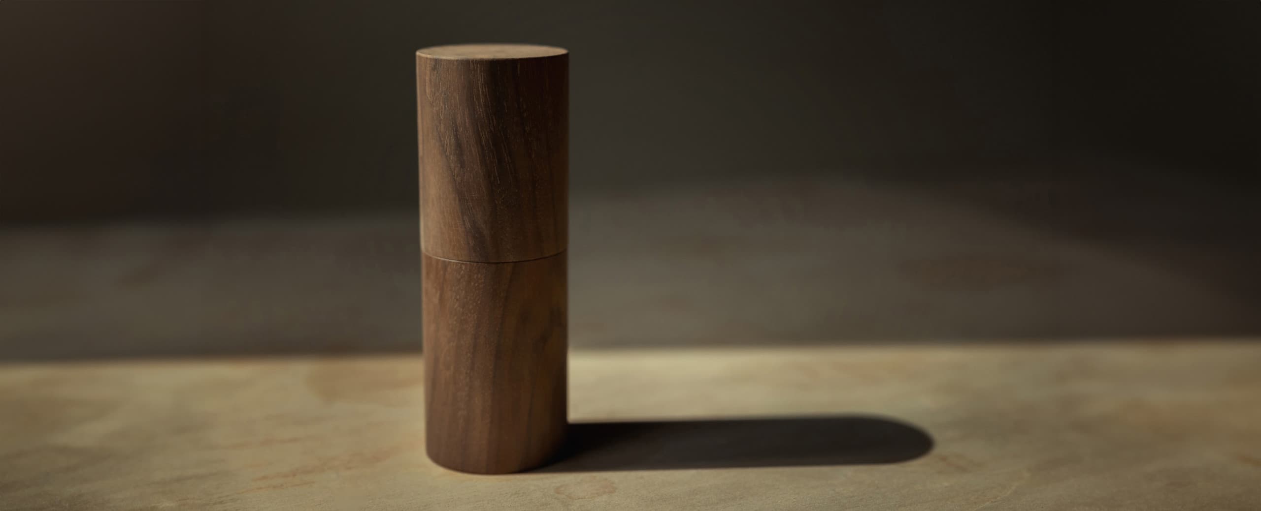 Normally the pepper mill comes in light maple. For AGOBAY, Akiko and Ken have exclusively crafted a version in walnut. With its dark wood, minimal design and soft, rounded feel, this mill is so beautiful that it feels wrong to hide it away in a kitchen drawer. Yet there’s an instinctive hesitancy about touching it with, perhaps, oily hands while cooking. That fear is quickly dispelled when Akiko and Ken explain that they aim to create pieces that are not only visually appealing but also practical and meant to be used. “We hope people will use the mill every day and not just save it for special occasions. As the wood ages, it develops a nice patina, making it even more beautiful over the years.”