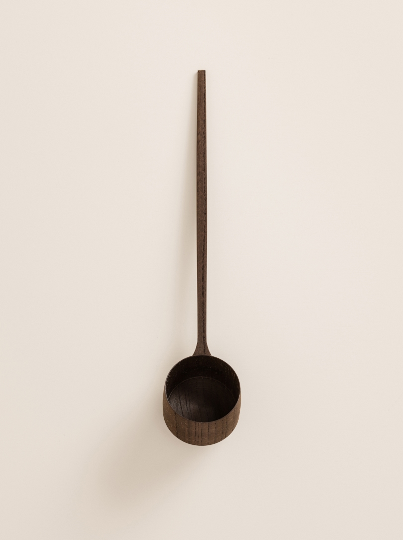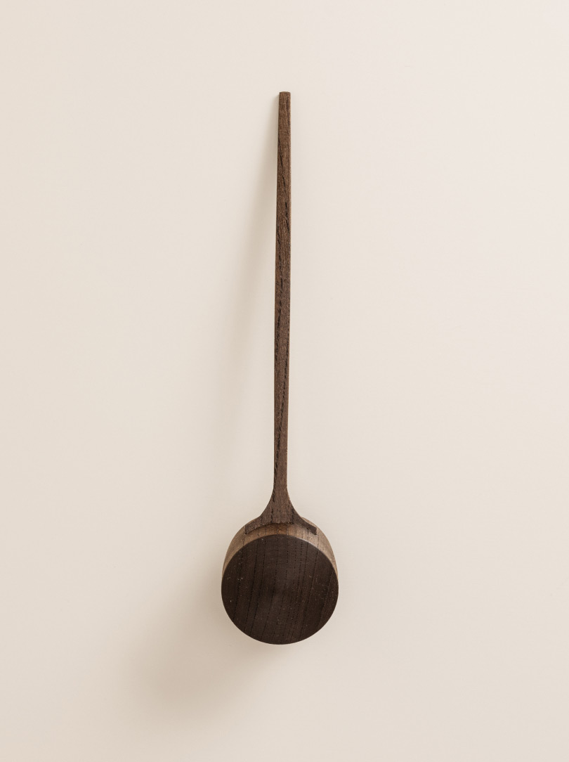 Made of Japanese zelkova wood, with its characteristic darker brown streaks, the spoon develops a patina over time, giving it a unique and distinguished appearance as it ages.