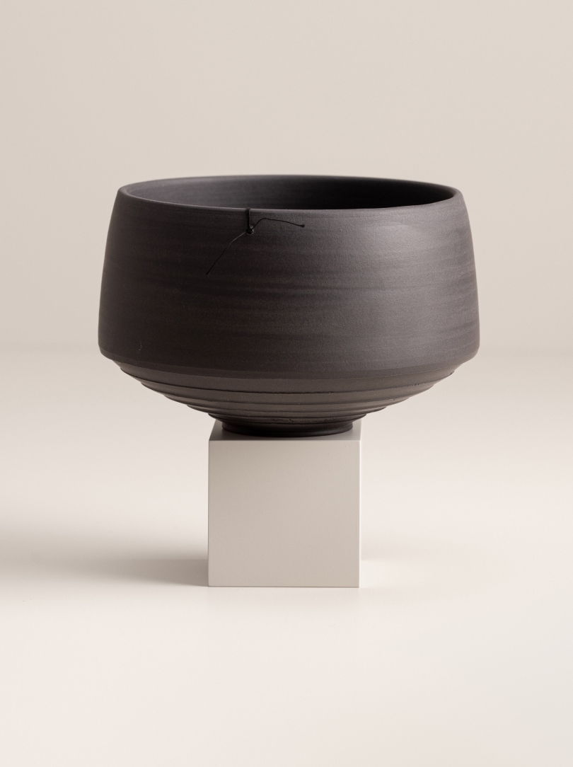 Singular piece, ceramic, black, unglazed
