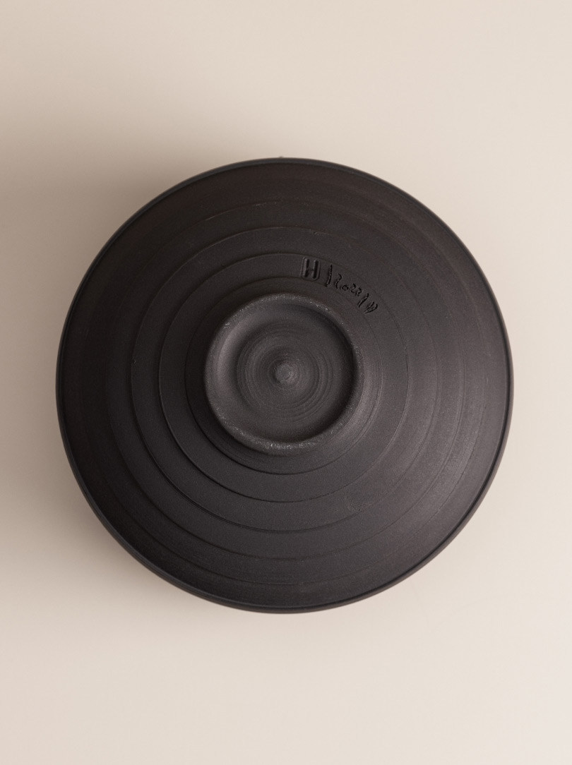 Crafted individually, each piece embodies a unique form and identity, shaped by the artist’s intellectual and physical interaction during its creation. With its minimalist architectural character, this vessel has a presence that gracefully fills the space. Though not immediately visible, the tiny pedestal elevates the bowl, creating an ever-changing interplay of light and shadow around and below it. Despite its delicate appearance, the surface is pleasantly rough to the touch; as your hands glide over the vessel’s curves, a raw sound emerges, reminiscent of nature and unexpectedly soothing. A multi-sensory piece that promises daily delight, regardless of its intended use.