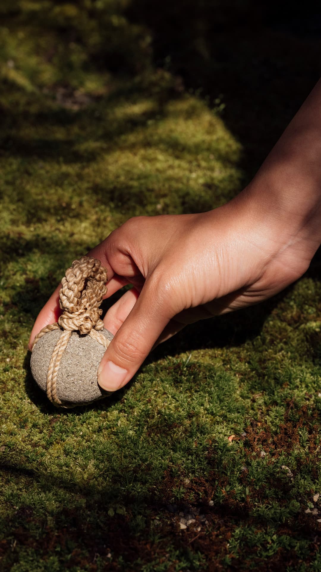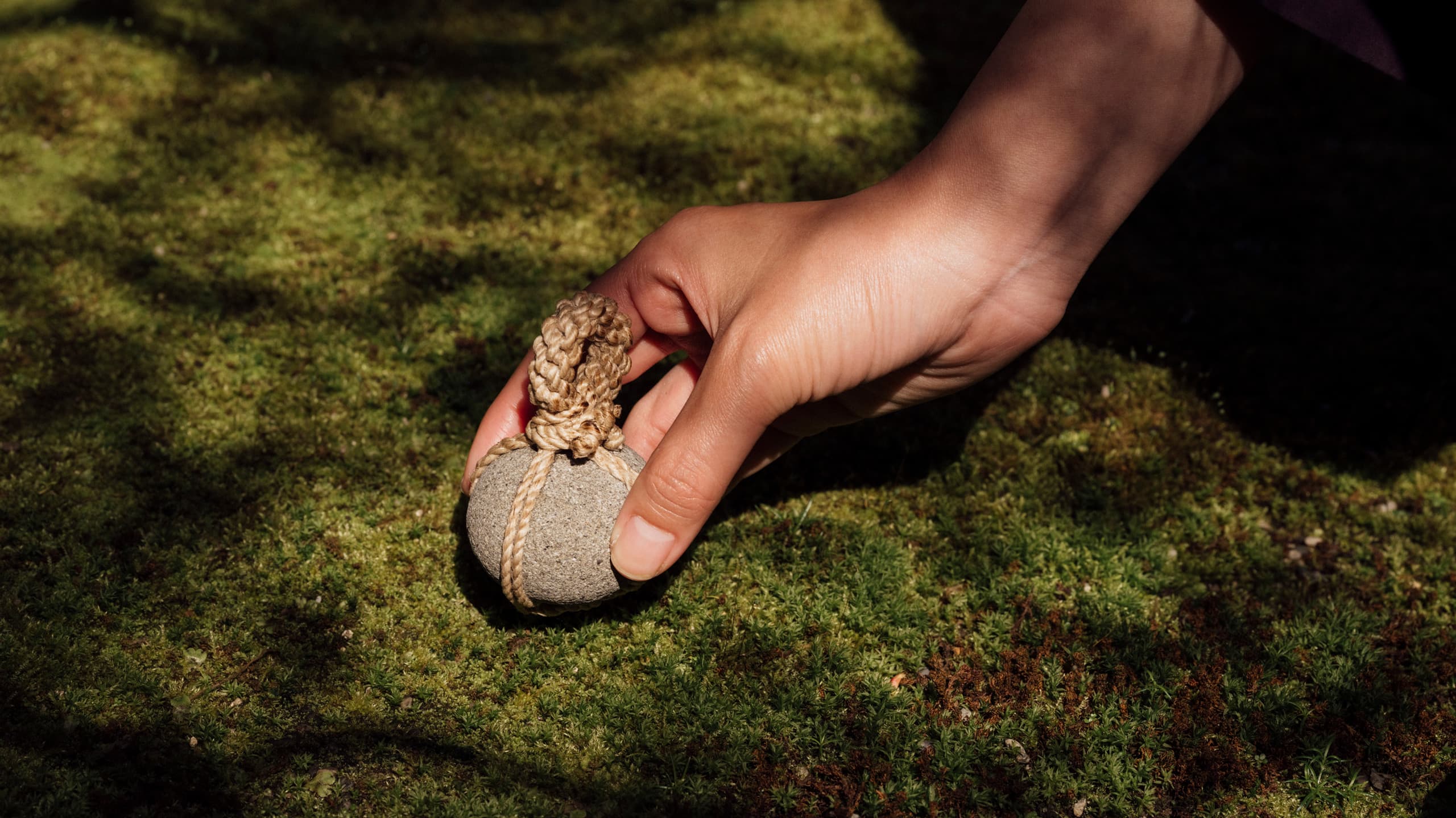 The beauty of kekkai seki lies in their simplicity. Tosei insists that there’s no hidden ritual in the act of binding them with rope; it’s simply about securing string to stone. Yet he acknowledges that tying a rock transforms it – a simple, ordinary object suddenly takes on new meaning. He resists layering it with too much mystical symbolism or overcomplicating the gesture. What he cherishes is how something as humble as a stone, rolling unnoticed in the world, can become significant through a small act such as binding it with rope. “I love this simplicity,” he says, “and I don’t want to manipulate it too much. I just want to give it meaning, and hope someone notices.”