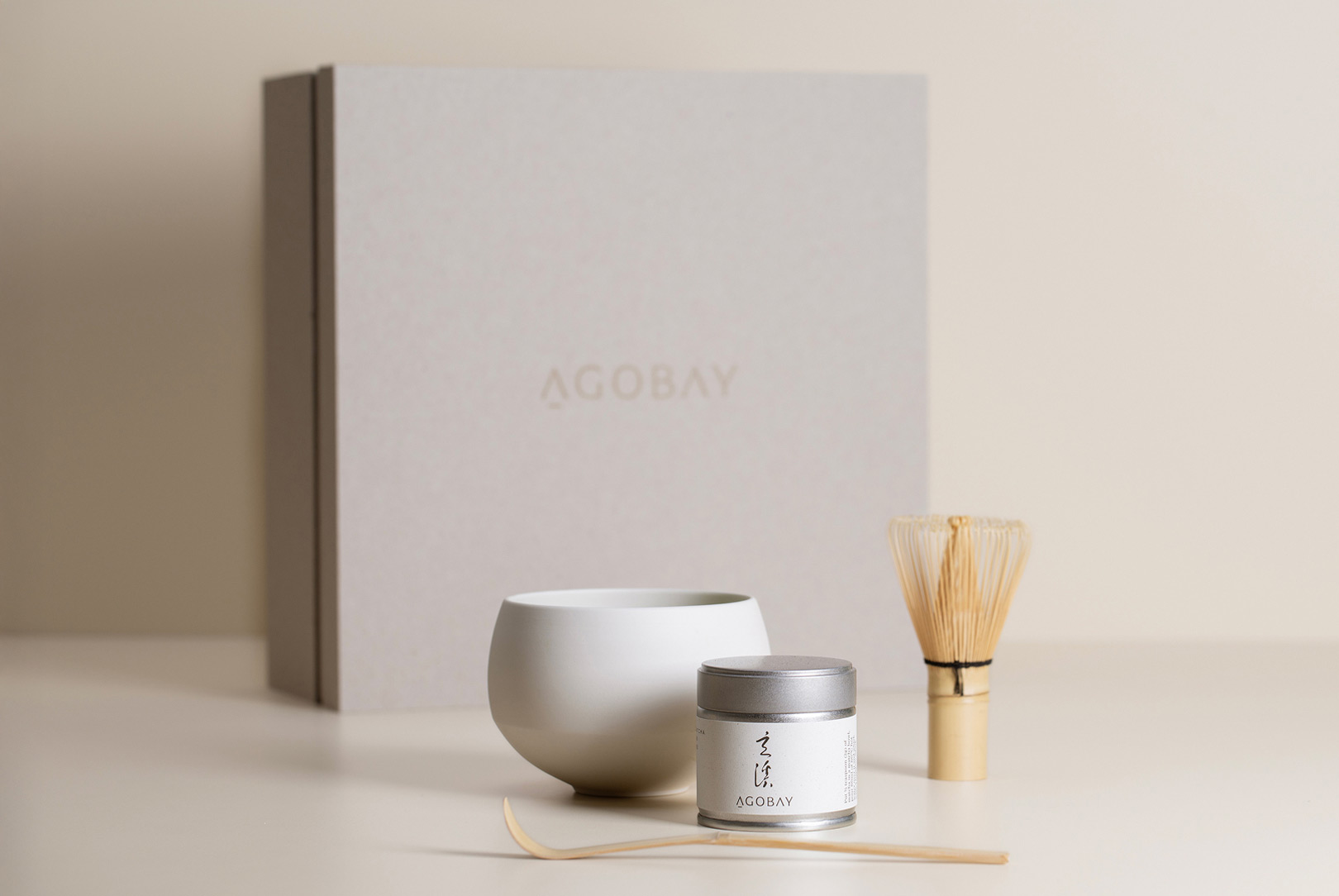 We also offer a Ceremonial Pair Set with two matcha bowls, instead of one. And an Essential Set with matcha tea, a whisk and spoon. All sets are presented in an AGOBAY box.