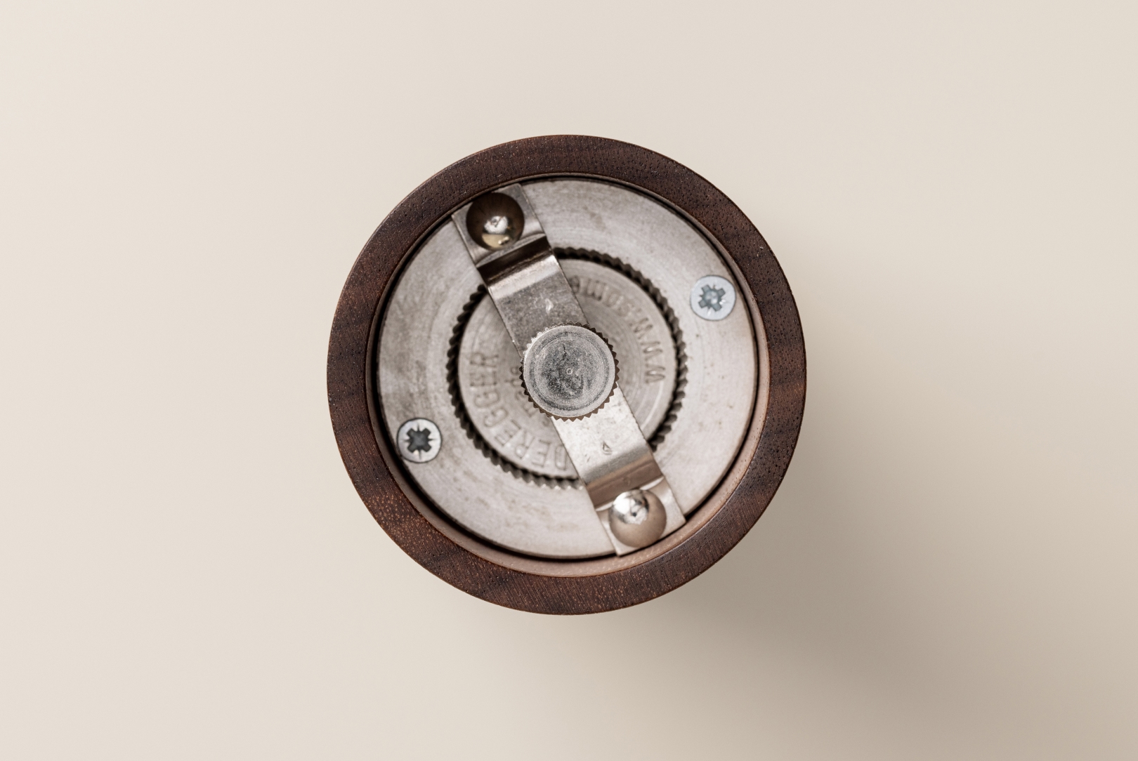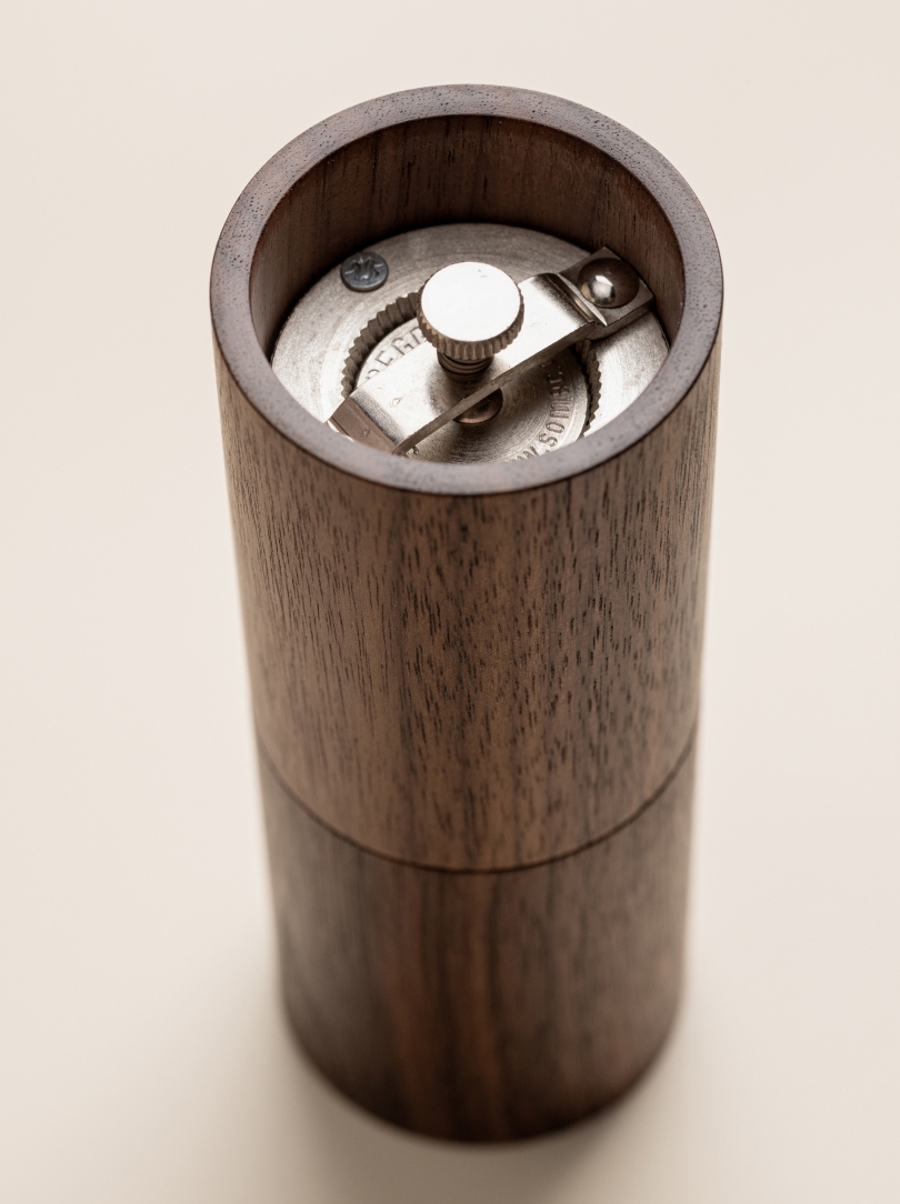 To care for your salt cellar and pepper mill, wipe them with a damp cloth followed by a dry cloth. Do not wash them with any cleansing agents and avoid using abrasive sponges, dishwashers or drying machines.