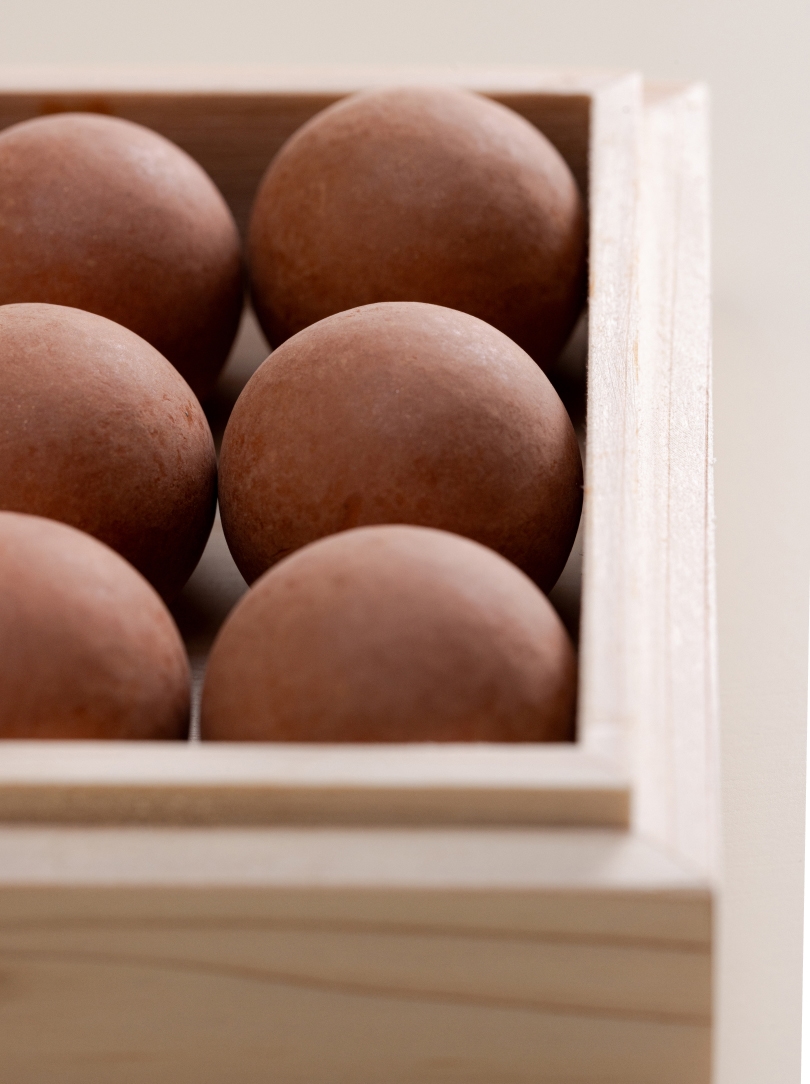 An all-natural room diffuser, featuring nine handcrafted red spheres meticulously crafted from Korean soil. Nestled within a charming pinewood box, these spheres gently release the essence of the applied oil, enhancing the ambiance while promoting air purification and maintaining ideal room humidity levels.