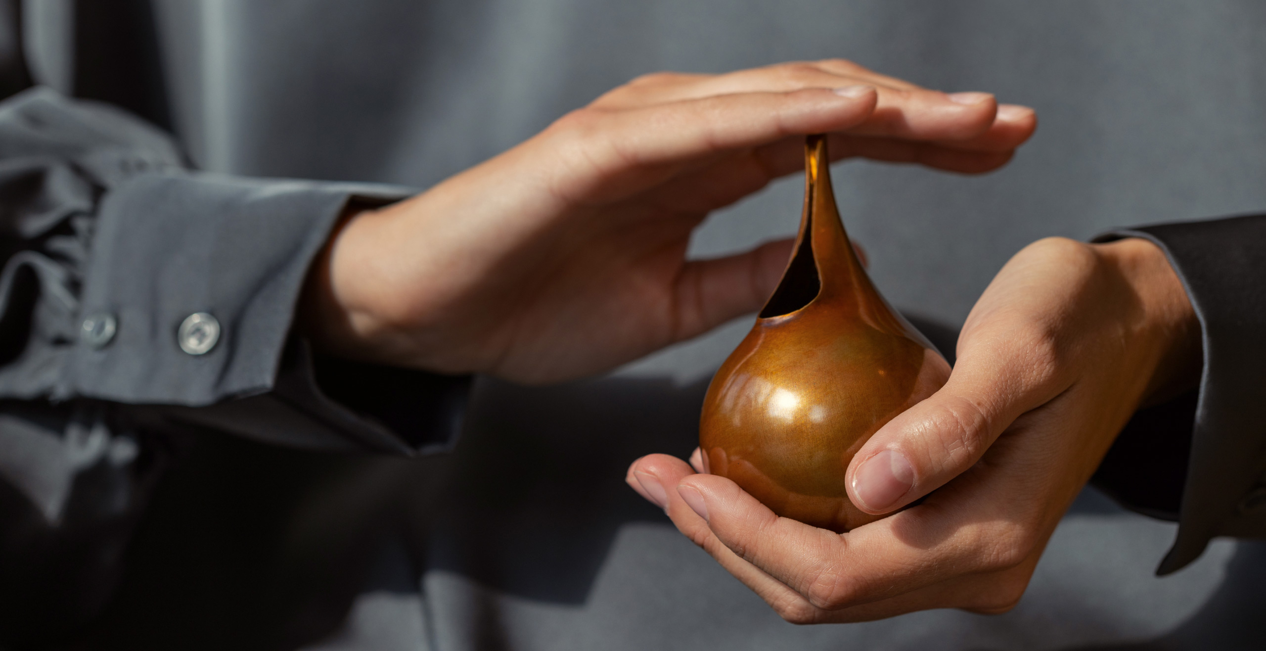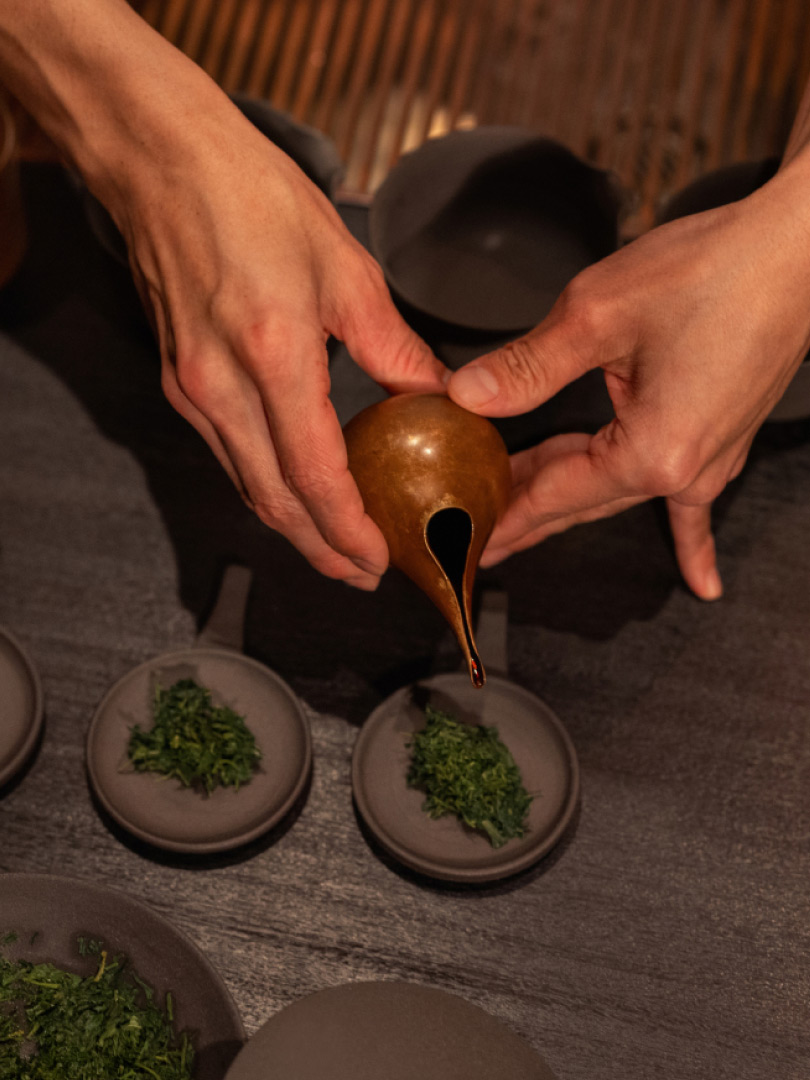AGOBAY Showroom ZurichEach Suiteki is handmade: slight differences in colour, pattern, shape and size between each product convey their unique character. Thanks to its lacquered interior, it is a multi-purpose piece – whether for soy or other sauces, to hold calligraphy utensils or flowers. Reinforced by anti-tarnish and wax to reduce discolouring, the sauce pourer will hardly rust, while its colouring will slowly change over time.