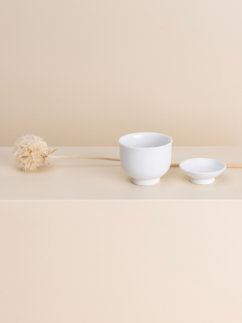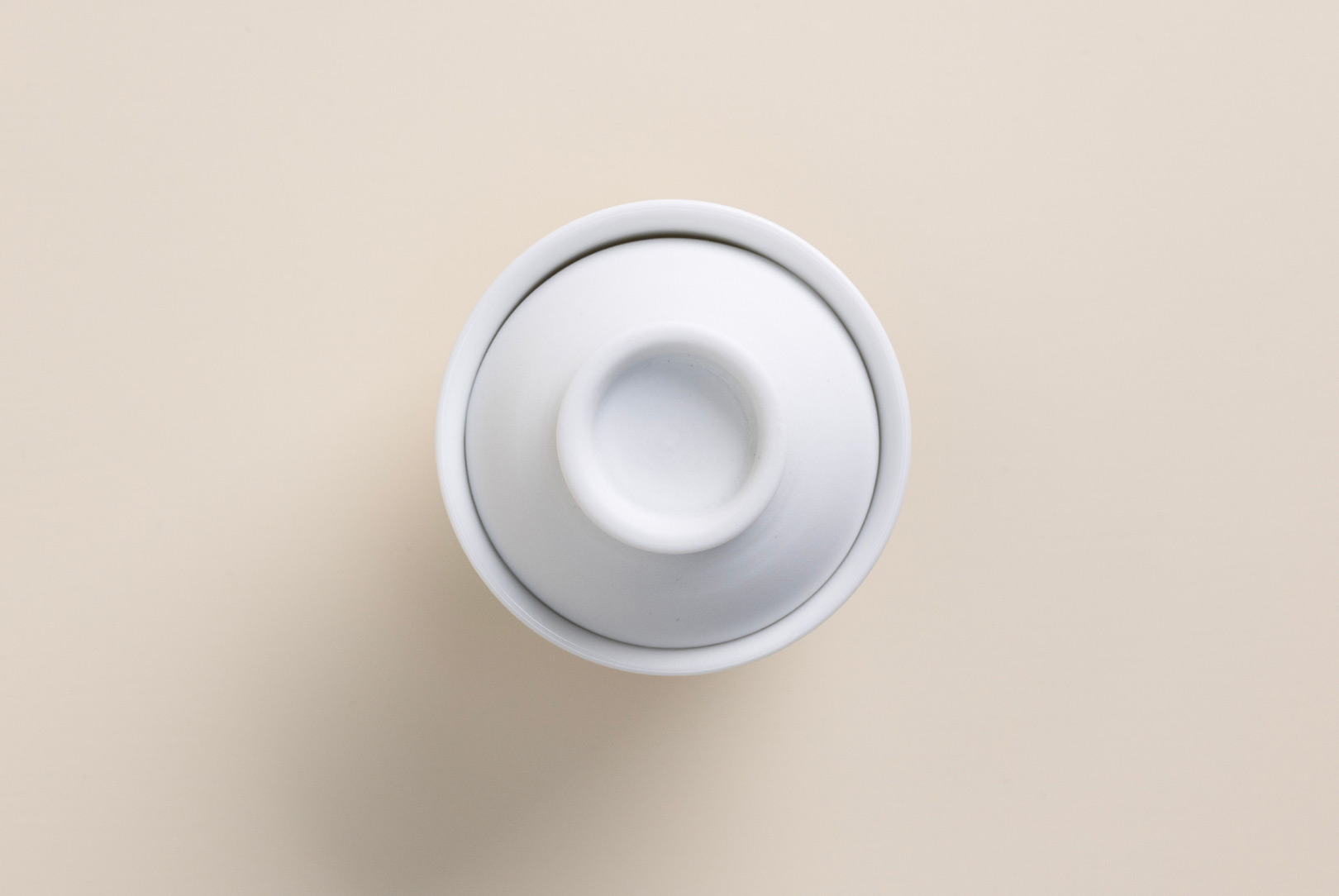 Created to serve small bites or keep condiments, this unglazed mini bowl with its perfectly fitting lid safeguards different small ingredients. It is handcrafted in Arita, in the Saga Prefecture, a town renowned for being one of the first places in Japan to produce porcelain. Please be aware of the delicateness and very small size of this beautiful object; it measures only 50 mm high and 48 mm across.