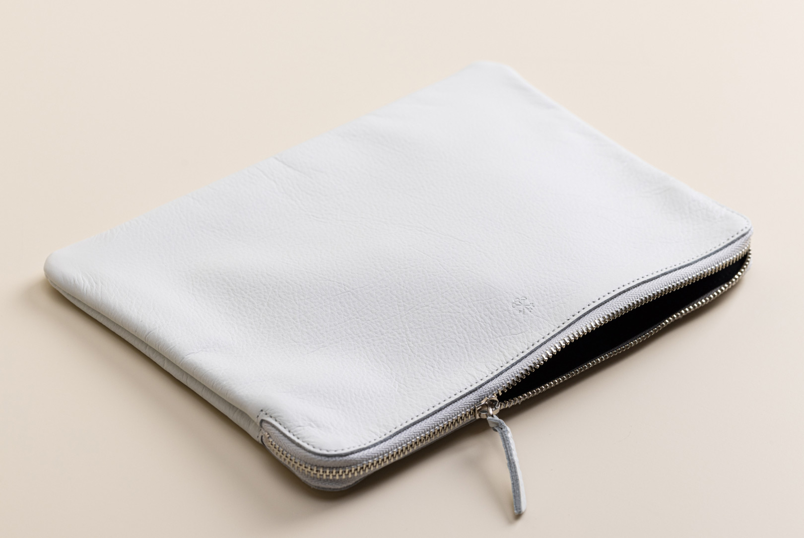 Exuding elegant simplicity and unmatched versatility, this pouch in a subtle ivory tone beautifully complements soft colour palettes while serving a multitude of purposes. Its true luxury lies in its leather lining: impeccably crafted, subtle to the touch and yet imbued with a robustness that transforms it into the ideal lifelong companion.