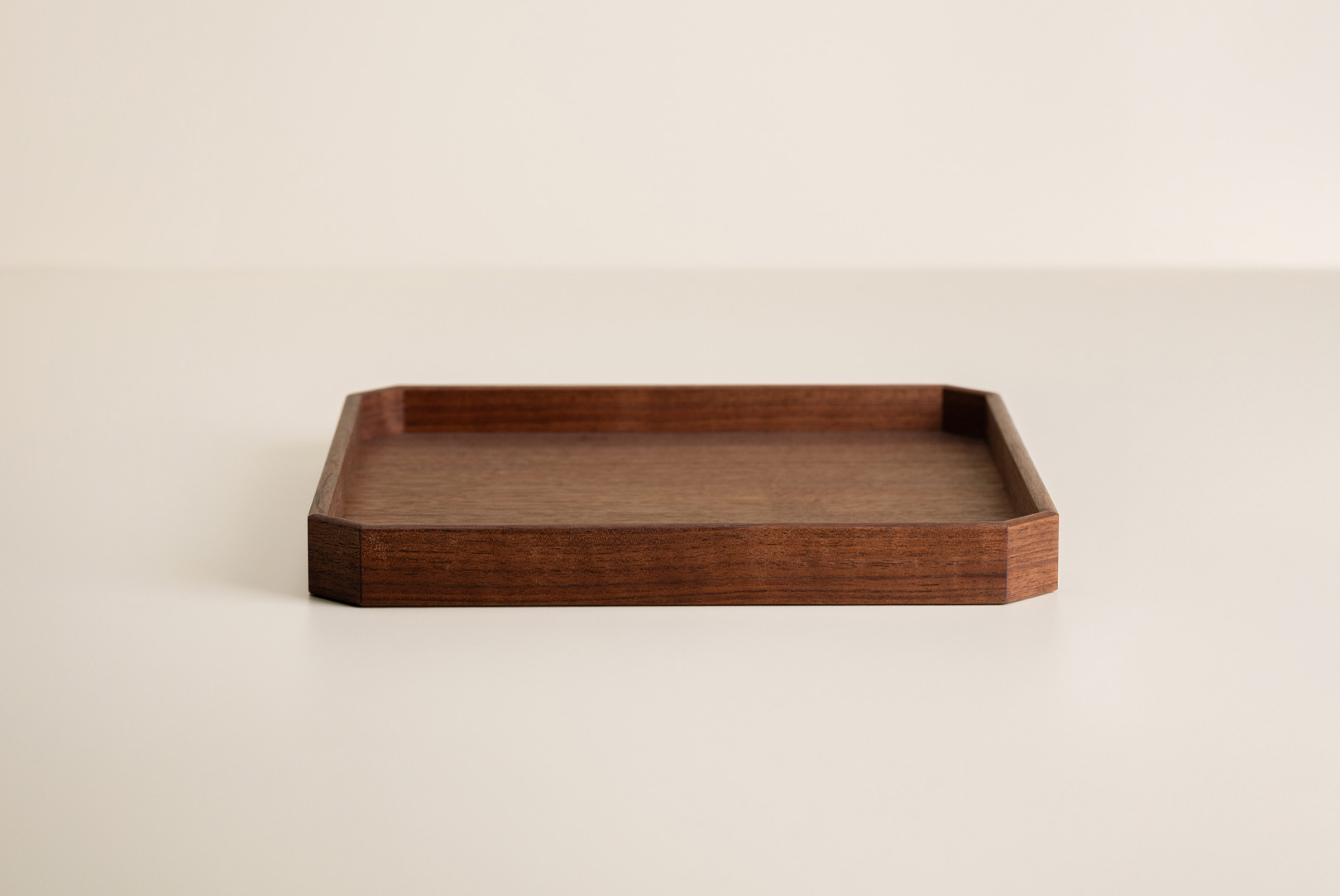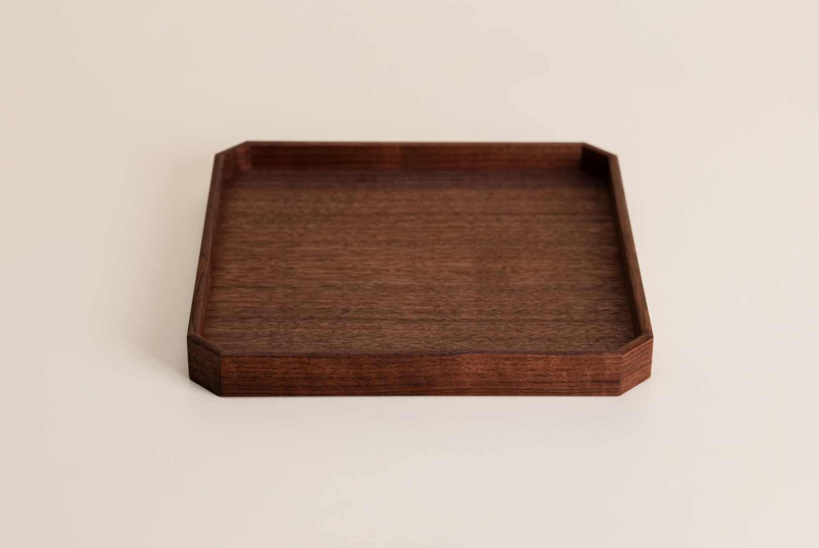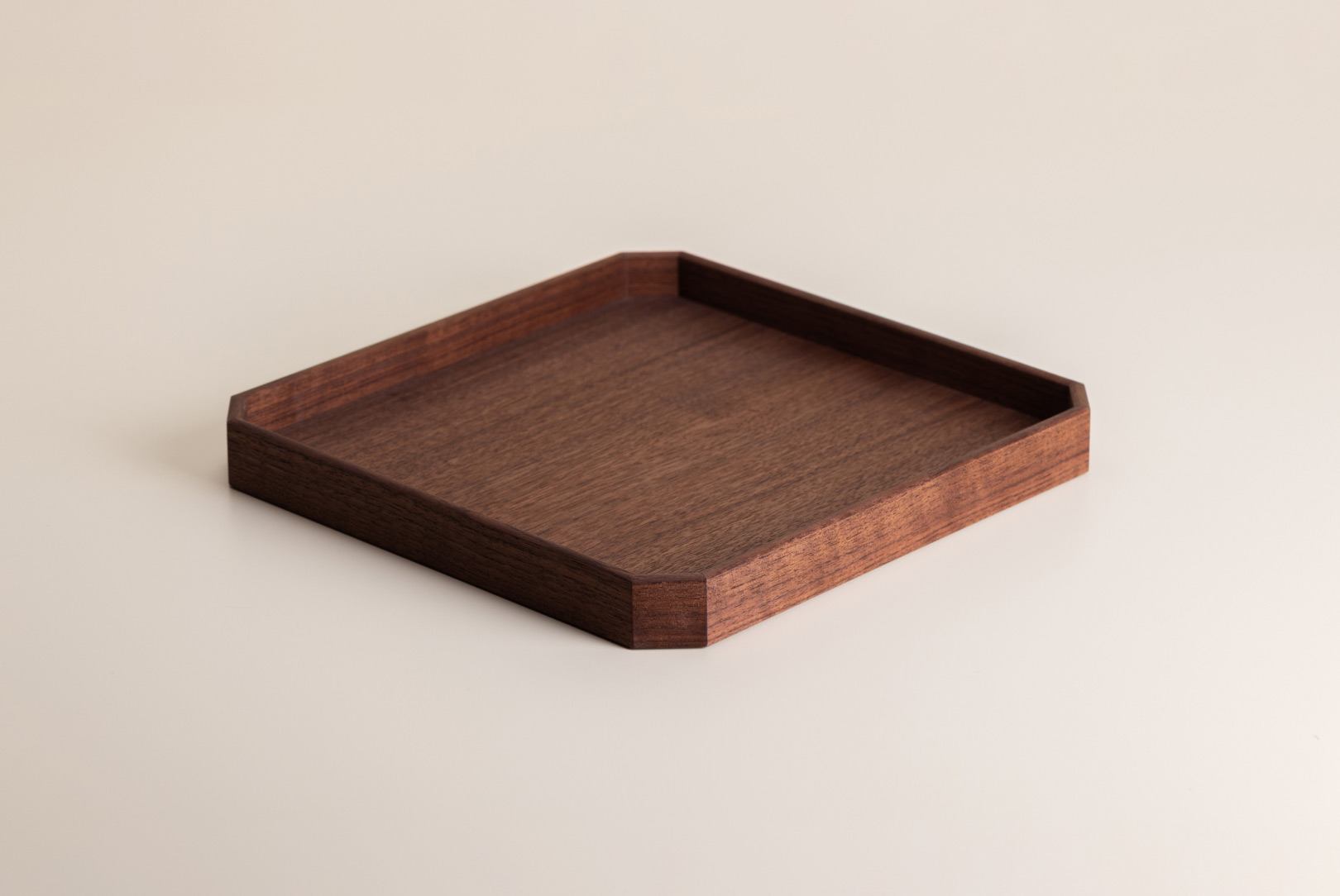As with all of Yusuke Tazawa’s creations, this elegant tray is designed according to his philosophy of ‘simple design, quiet form’ and features subtle yet refined details. The bevelled corners lend a distinctive touch to its aesthetics, while the base plate, crafted from two seamlessly joined pieces, creates a harmonious square surface. Additionally, the 3 cm high edge not only enhances the visual appeal but also serves a practical purpose by preventing items from slipping off.