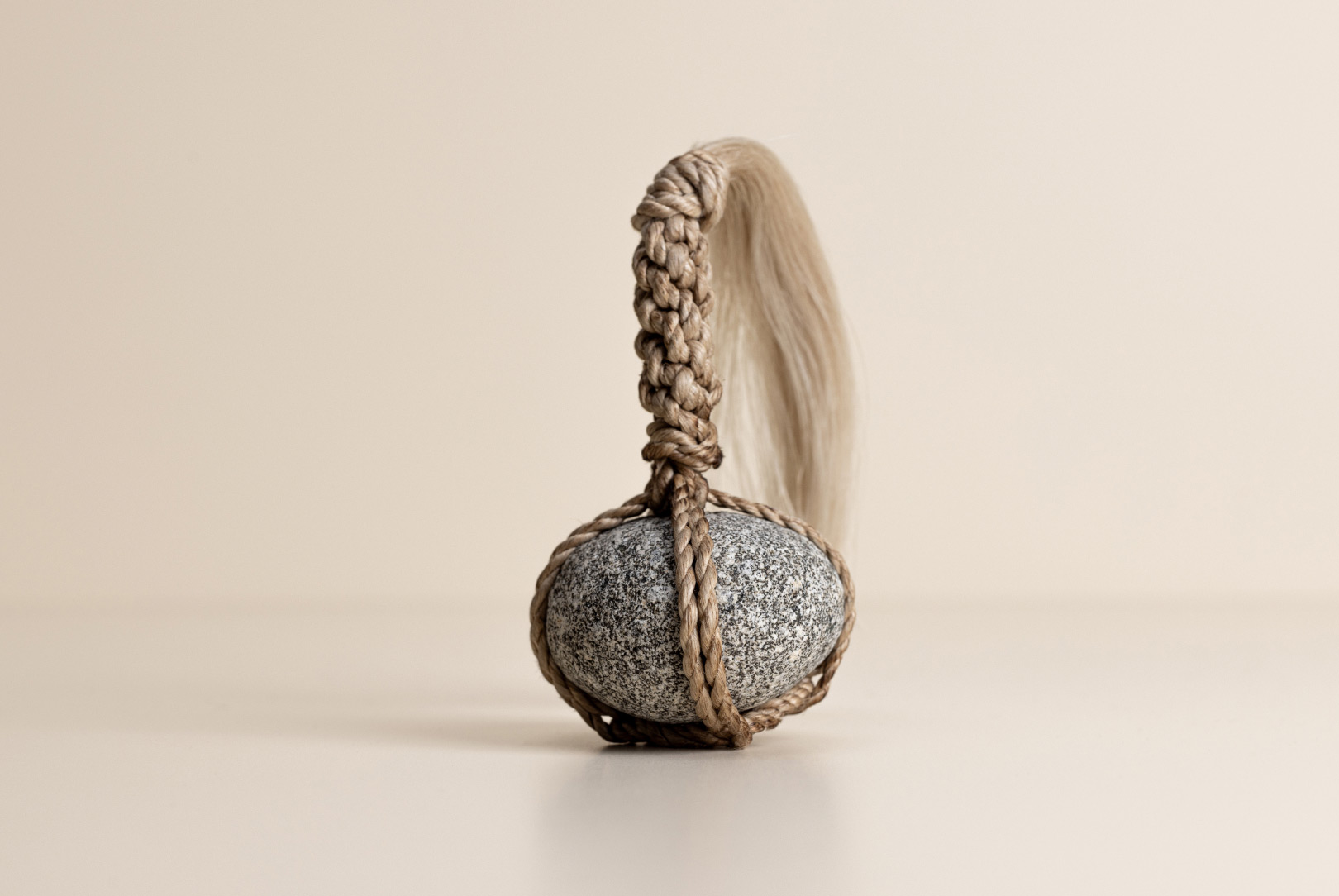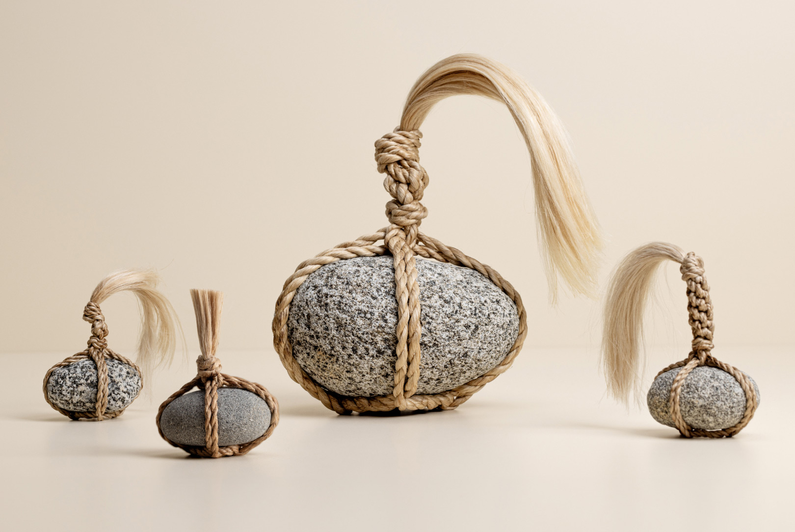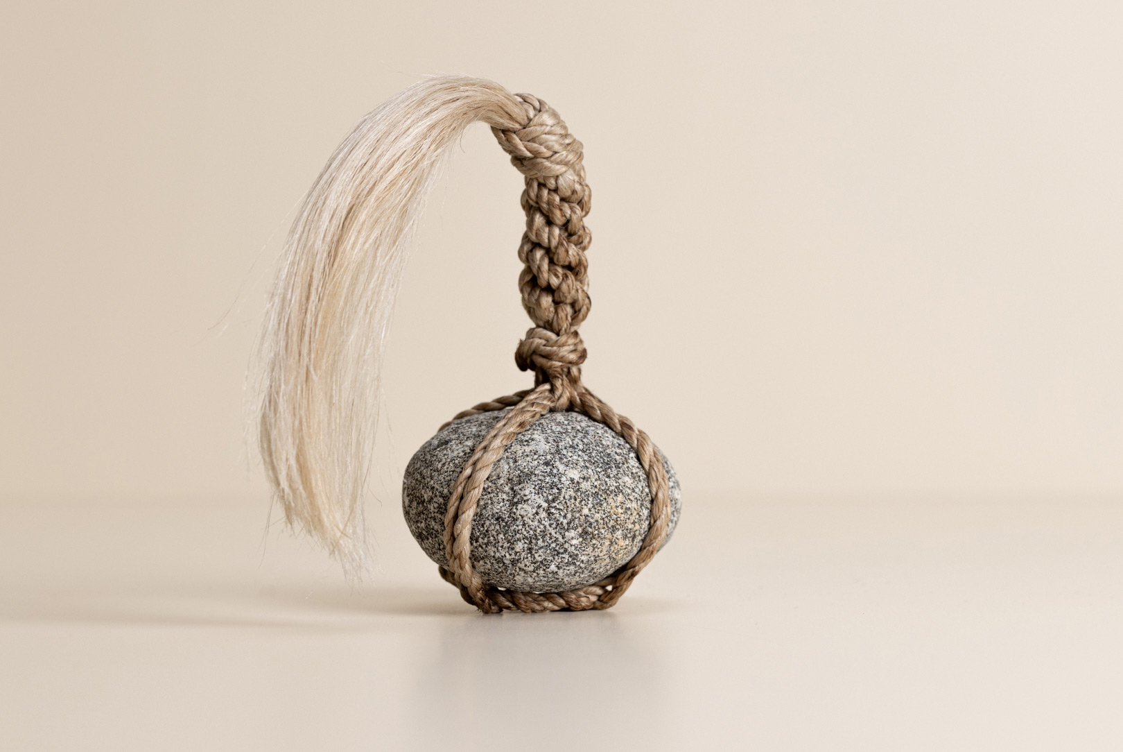 AGOBAY Showroom ZurichOften used in Japanese temples and tea houses, kekkai stones are crafted with intention. They are not merely objects but keepers of spiritual wisdom, echoing the Zen philosophy that ‘heaven, earth and I all share the same origin, and are therefore one’. In Japan, this has led to a spirit of respect for nature and a desire to live in harmony with it since ancient times. The tactile roughness of the stone and the smooth strength of the hemp invite one to ponder the interconnectedness of our existence with nature.