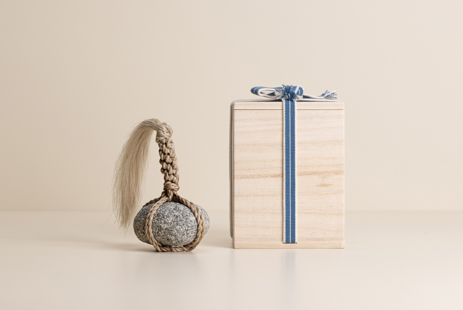 Each stone is delicately wrapped in washi paper, a traditional Japanese paper crafted from the elongated inner fibres of three plants: kozo, mitsumata and gampi. It is presented in a wooden box bearing the artisan’s signature mark. The box itself is made of Paulownia wood, known in East Asia as the ‘empress tree’ and valued for its lightweight but strong properties.