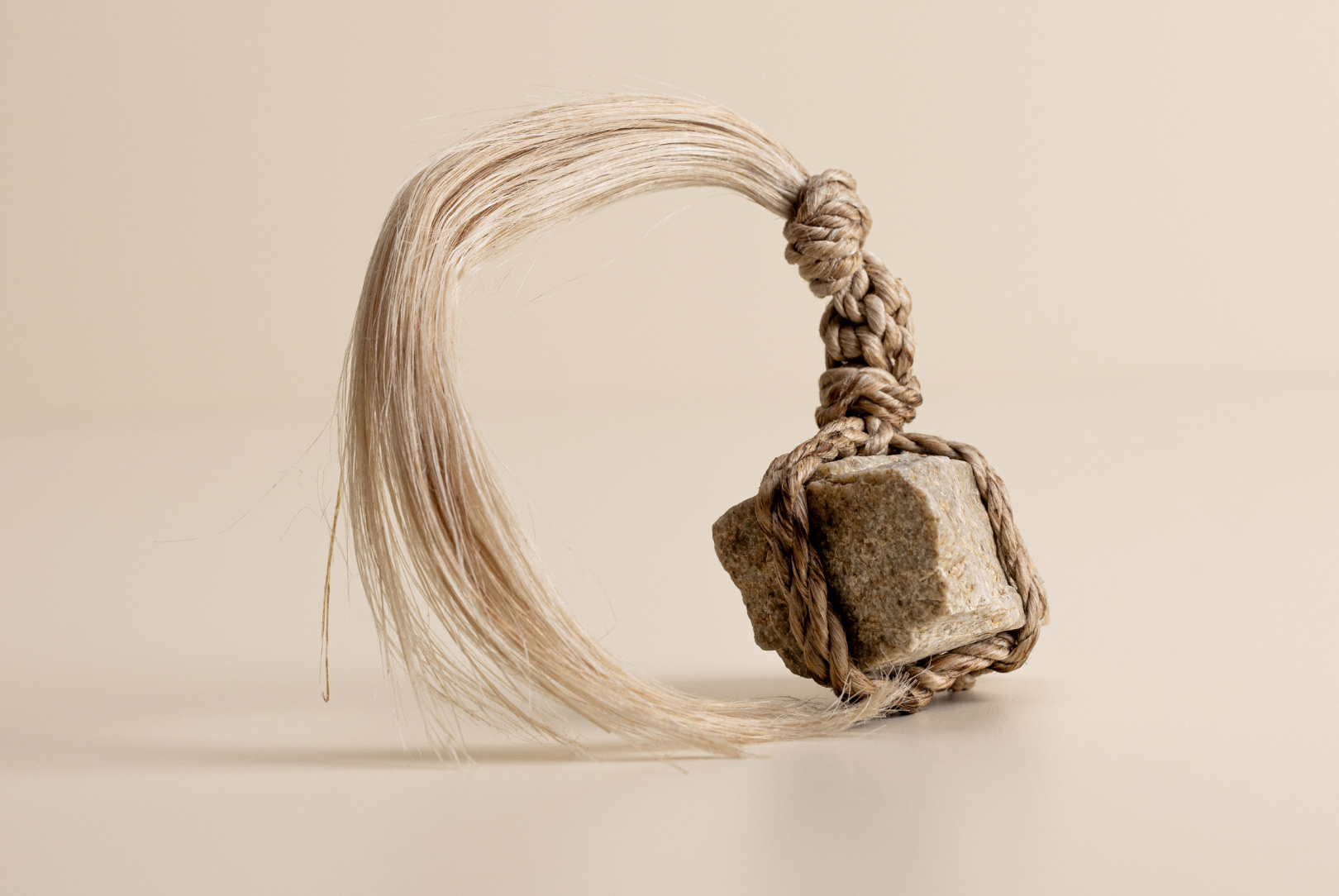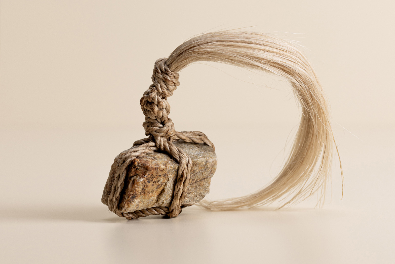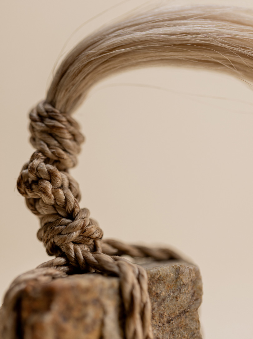 In the quietness of the dawn at one of Kyoto’s oldest Zen temples, Buddhist Zen monk Tosei Shinabe sits in deep meditation, practising ‘zazen’ (‘za’ 坐, Japanese for seated and ‘zen’ 禅 for meditation). His journey takes him to the mystical Awaji Island, the ‘land of birth’ in Japanese mythology, where he selects stones imbued with the earth’s raw beauty. Wrapped in Seima rope made from the finest Japanese hemp, his za kekkai stones serve as a silent testament, a Dharma tool, to the boundary between two spiritual realms, a line as delicate as it is profound.