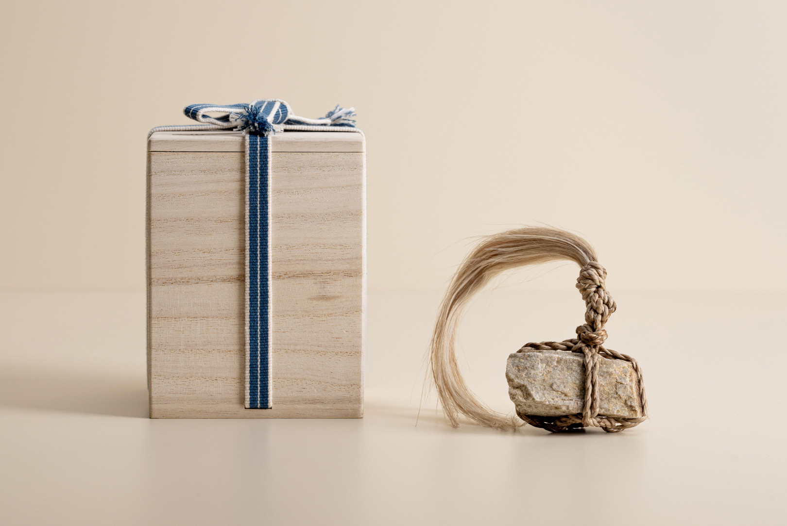 Each stone is delicately wrapped in washi paper, a traditional Japanese paper crafted from the elongated inner fibres of three plants: kozo, mitsumata and gampi. It is presented in a wooden box bearing the artisan’s signature mark. The box itself is made of Paulownia wood, known in East Asia as the ‘empress tree’ and valued for its lightweight but strong properties.