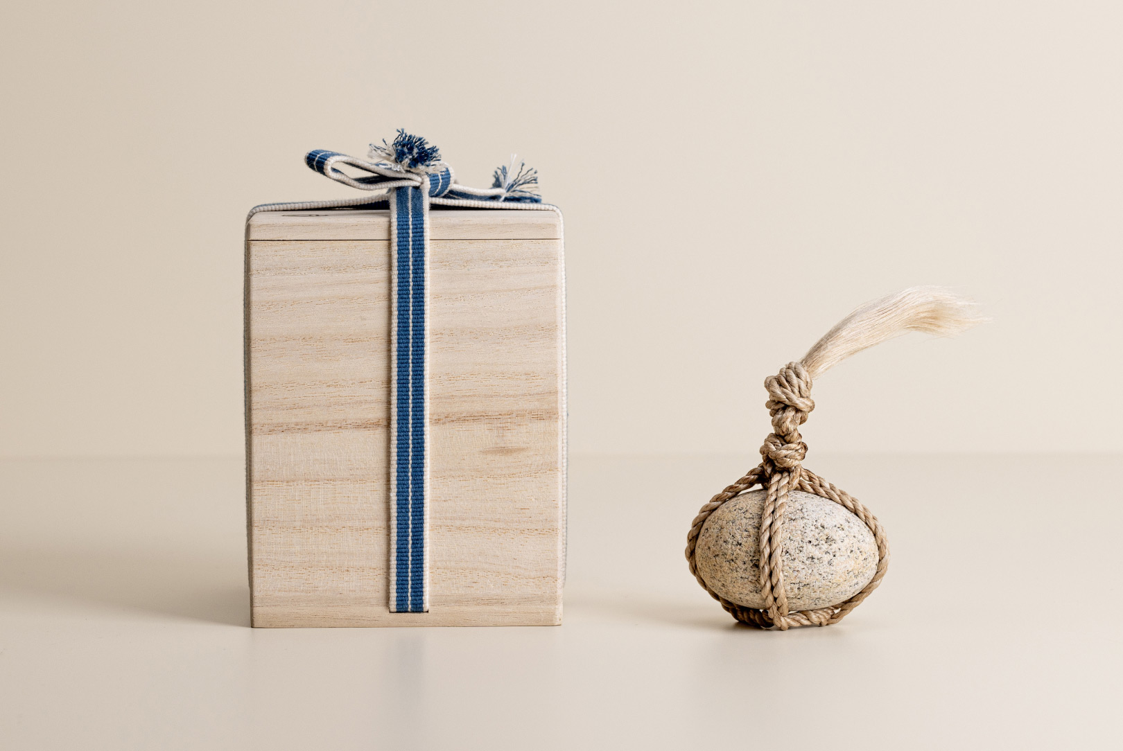 Each stone is delicately wrapped in washi paper, a traditional Japanese paper crafted from the elongated inner fibres of three plants: kozo, mitsumata and gampi. It is presented in a wooden box bearing the artisan’s signature mark. The box itself is made of Paulownia wood, known in East Asia as the ‘empress tree’ and valued for its lightweight but strong properties.