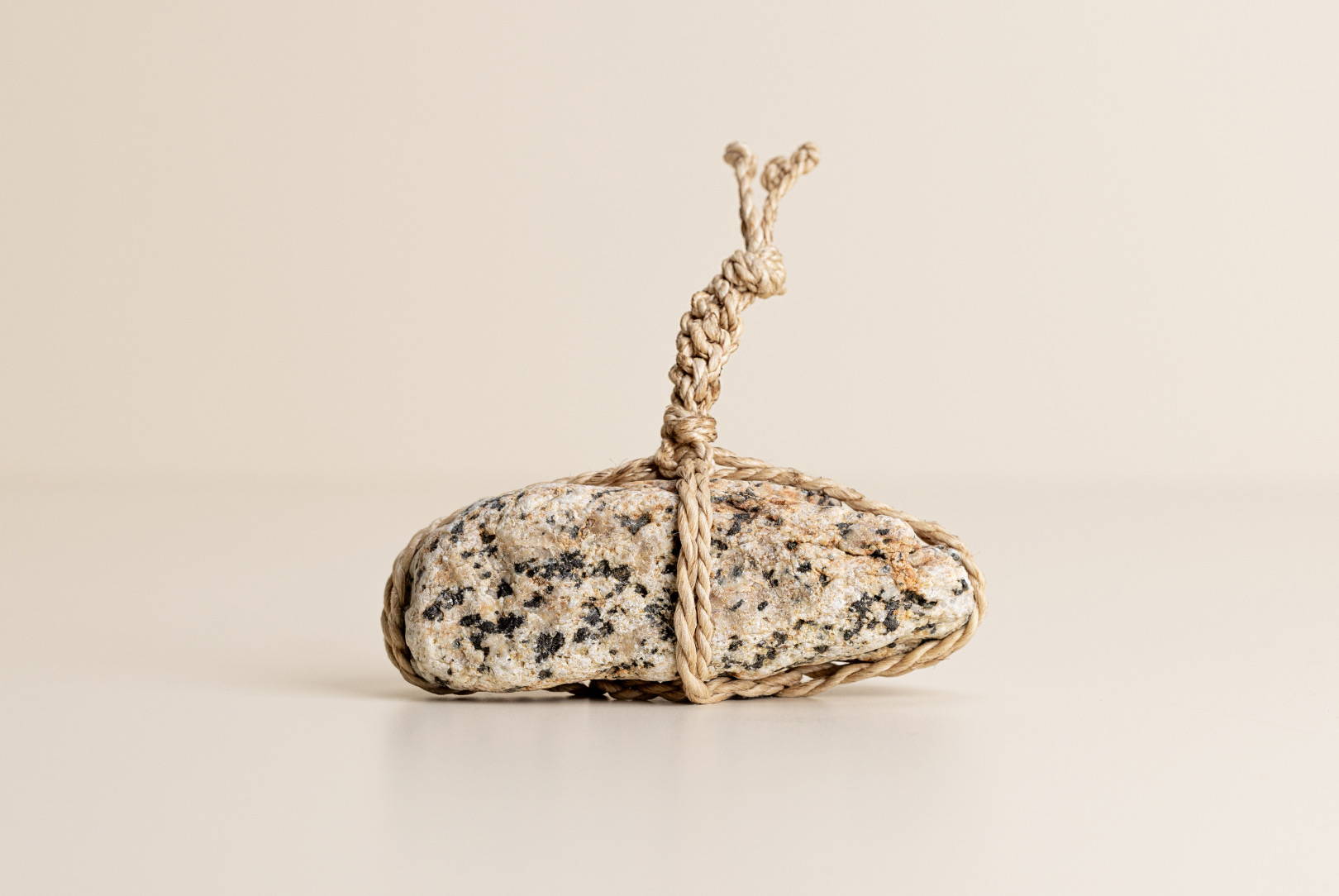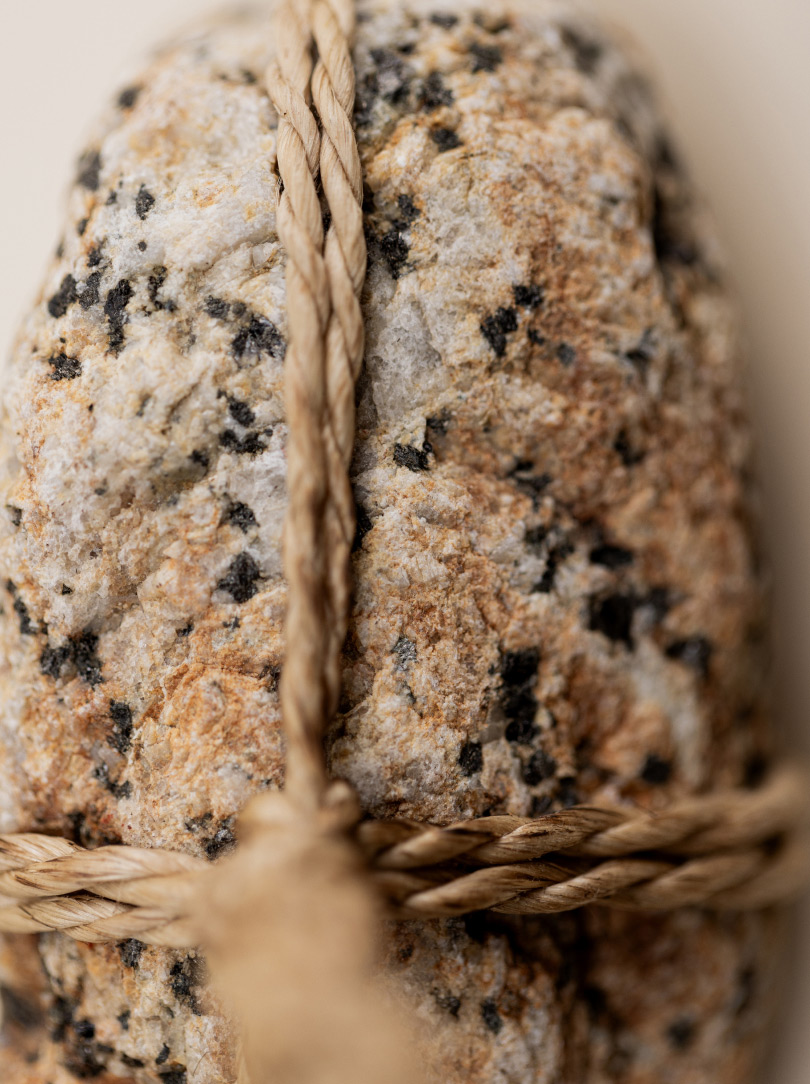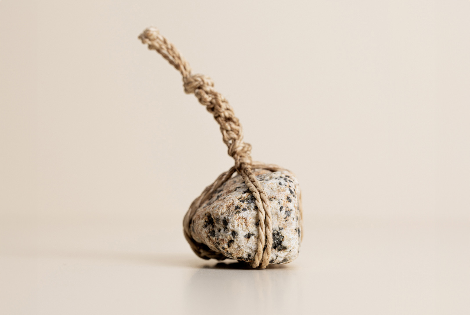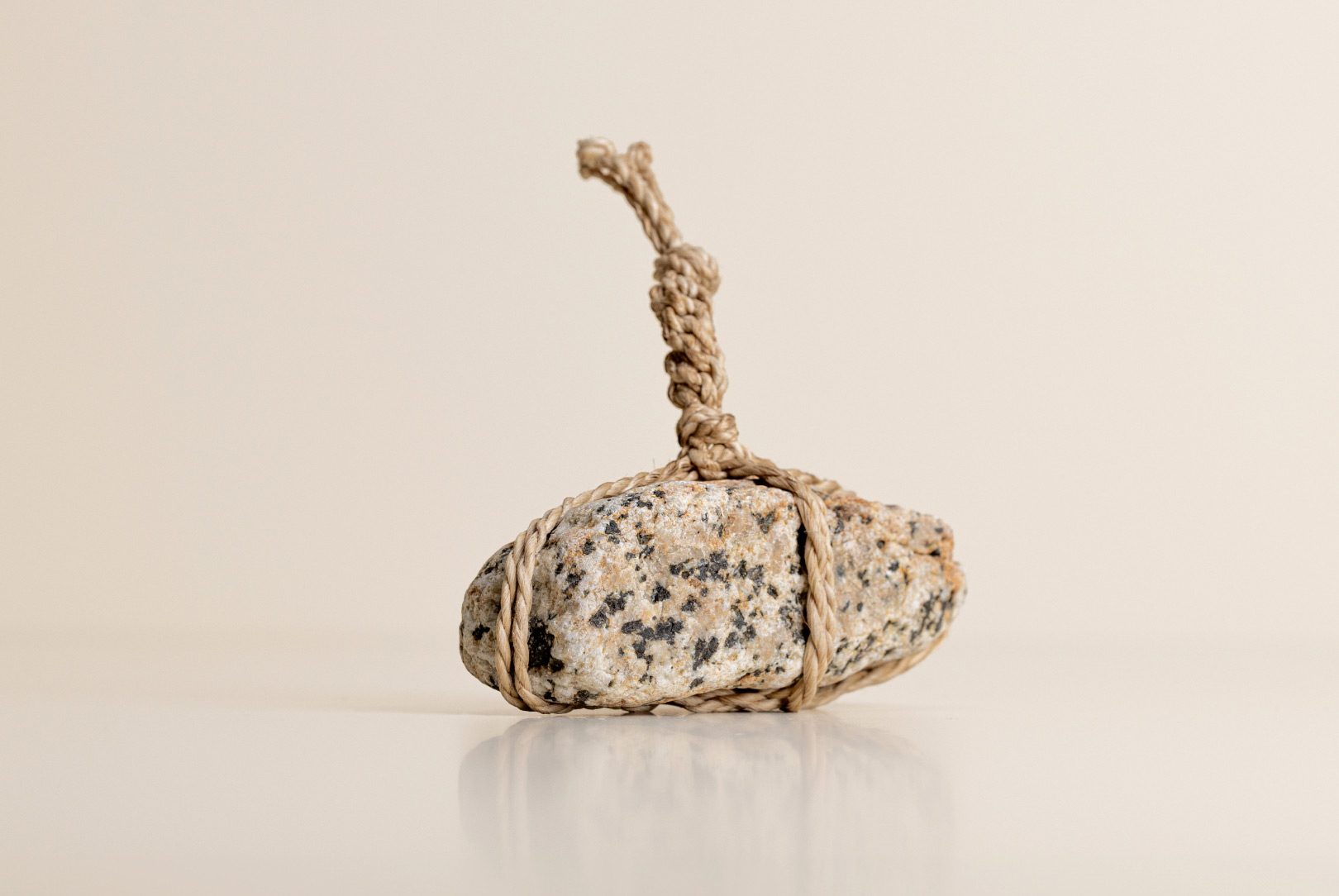 AGOBAY Showroom ZurichOften used in Japanese temples and tea houses, kekkai stones are crafted with intention. They are not merely objects but keepers of spiritual wisdom, echoing the Zen philosophy that ‘heaven, earth and I all share the same origin, and are therefore one’. In Japan, this has led to a spirit of respect for nature and a desire to live in harmony with it since ancient times. The tactile roughness of the stone and the smooth strength of the hemp invite one to ponder the interconnectedness of our existence with nature.