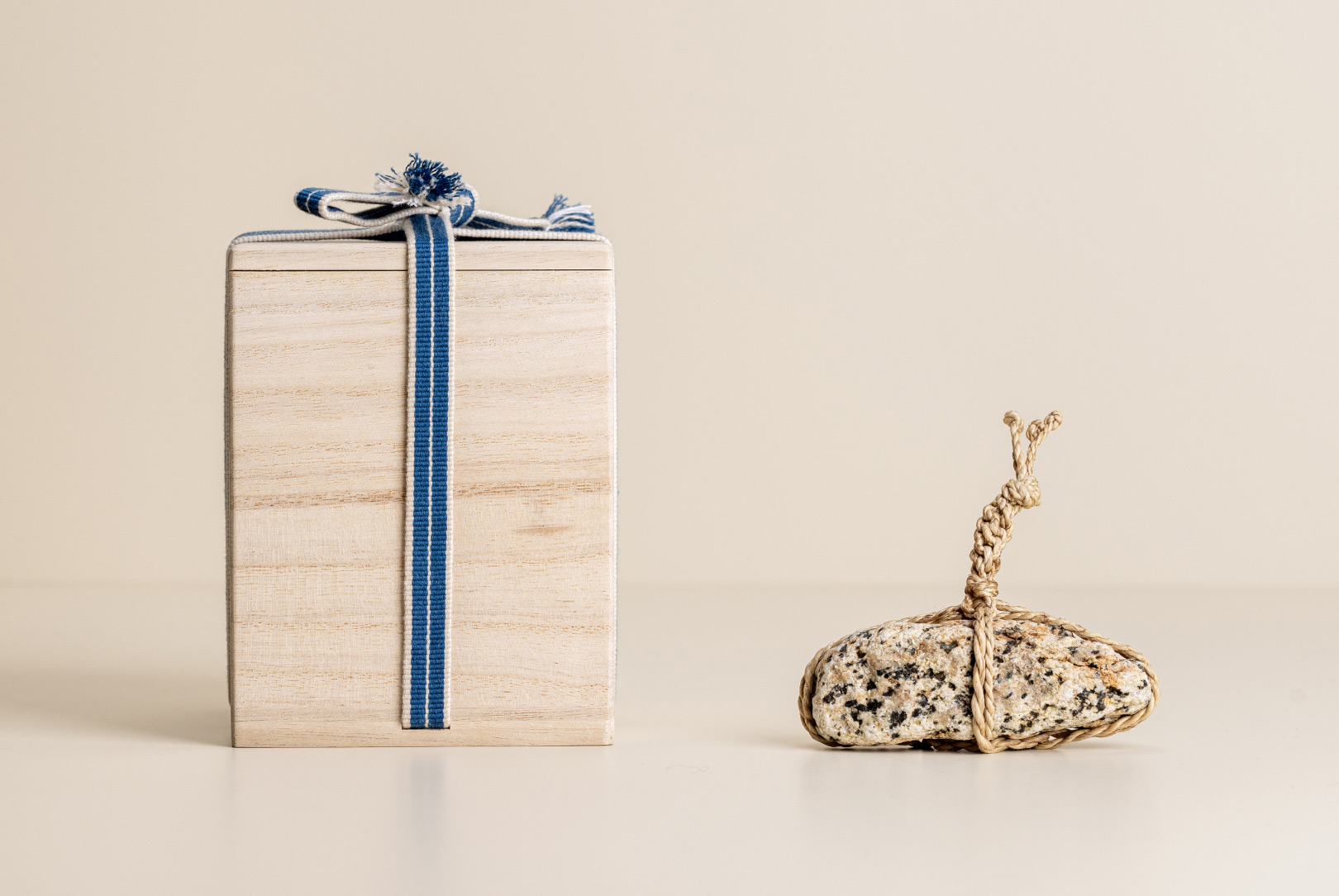 Each stone is delicately wrapped in washi paper, a traditional Japanese paper crafted from the elongated inner fibres of three plants: kozo, mitsumata and gampi. It is presented in a wooden box bearing the artisan’s signature mark. The box itself is made of Paulownia wood, known in East Asia as the ‘empress tree’ and valued for its lightweight but strong properties.