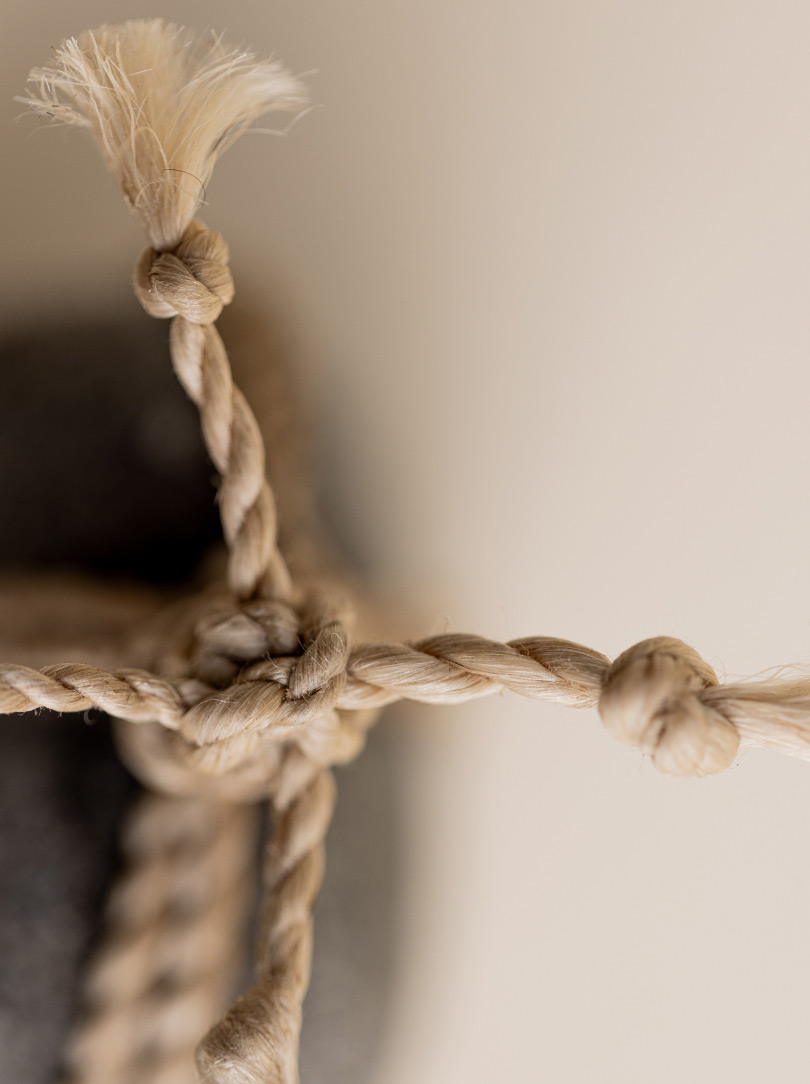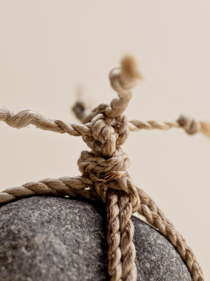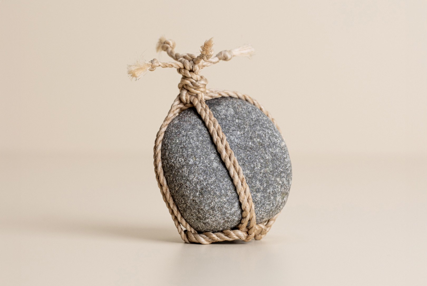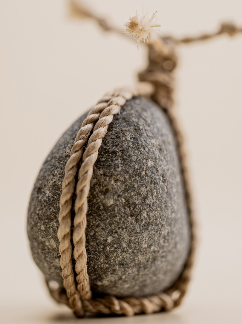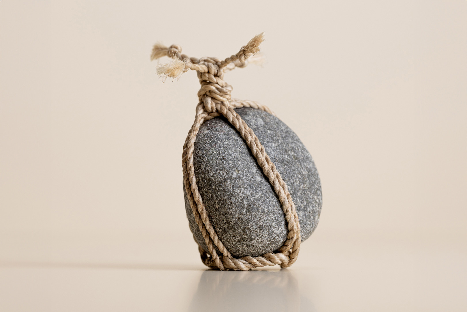 AGOBAY Showroom ZurichOften used in Japanese temples and tea houses, kekkai stones are crafted with intention. They are not merely objects but keepers of spiritual wisdom, echoing the Zen philosophy that ‘heaven, earth and I all share the same origin, and are therefore one’. In Japan, this has led to a spirit of respect for nature and a desire to live in harmony with it since ancient times. The tactile roughness of the stone and the smooth strength of the hemp invite one to ponder the interconnectedness of our existence with nature.