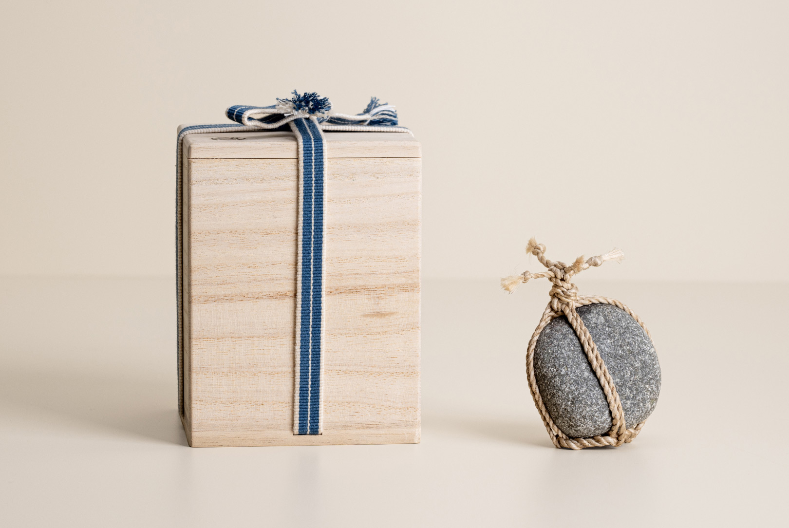 Each stone is delicately wrapped in washi paper, a traditional Japanese paper crafted from the elongated inner fibres of three plants: kozo, mitsumata and gampi. It is presented in a wooden box bearing the artisan’s signature mark. The box itself is made of Paulownia wood, known in East Asia as the ‘empress tree’ and valued for its lightweight but strong properties.