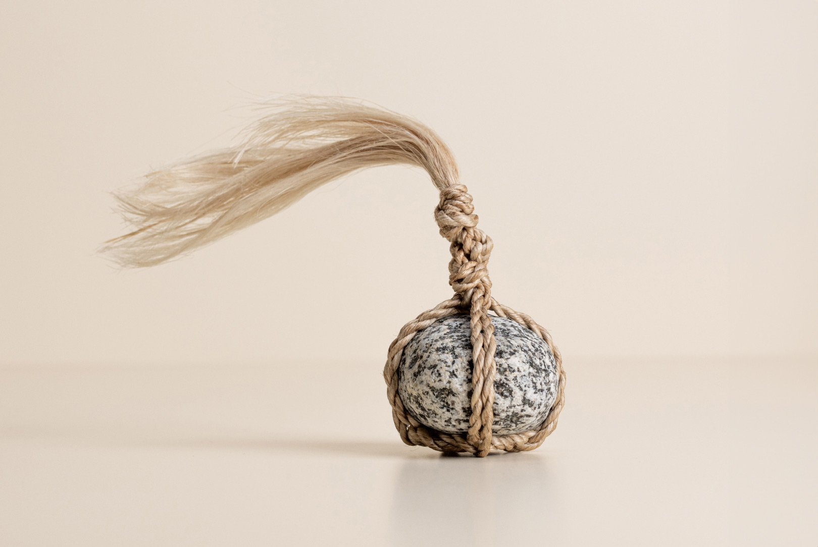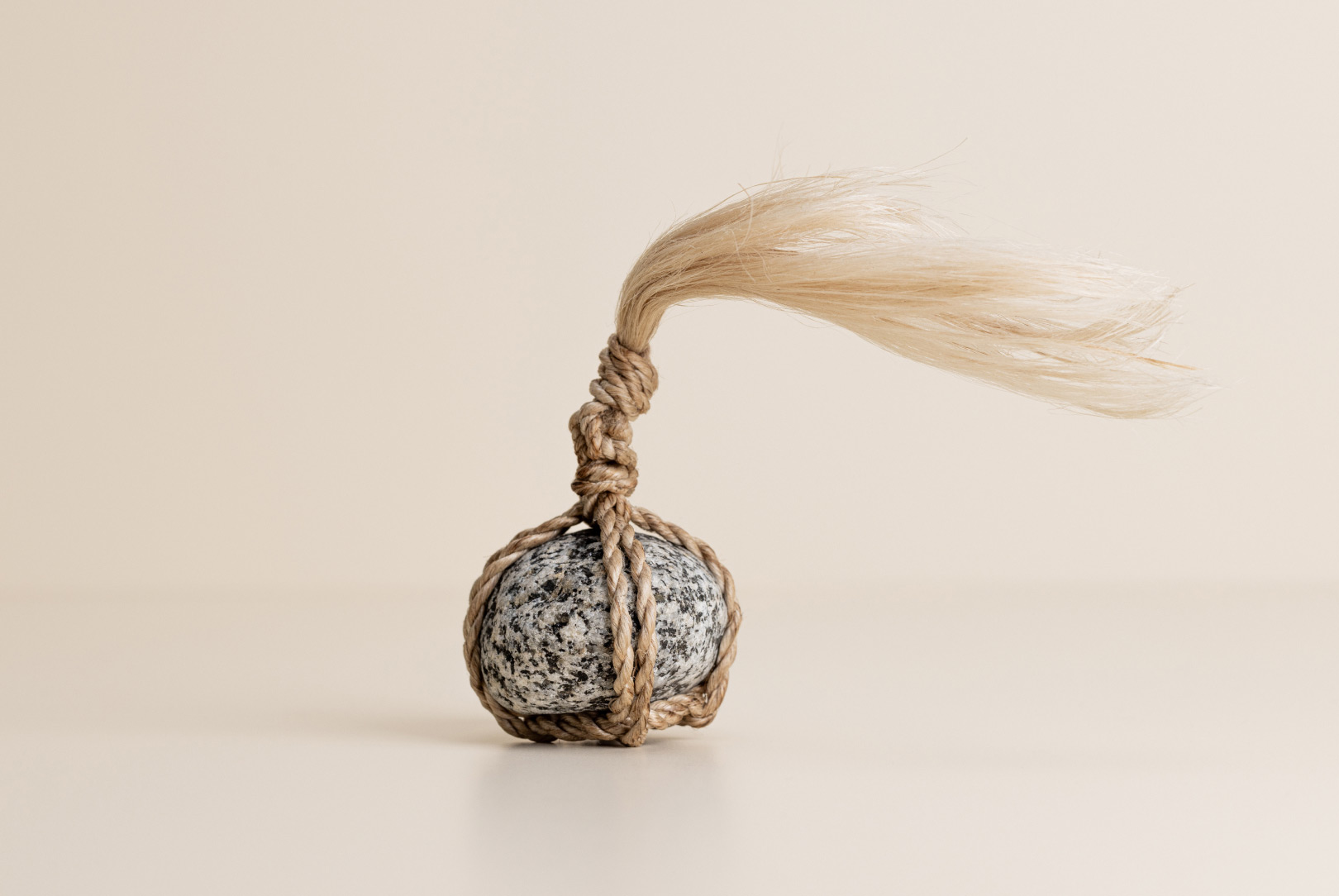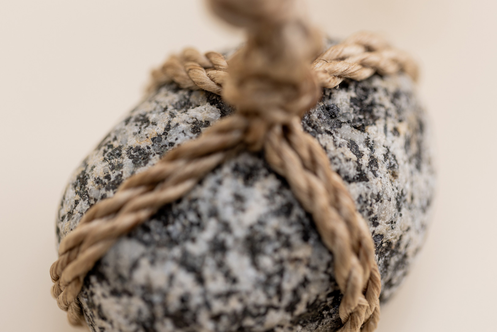 AGOBAY Showroom ZurichOften used in Japanese temples and tea houses, kekkai stones are crafted with intention. They are not merely objects but keepers of spiritual wisdom, echoing the Zen philosophy that ‘heaven, earth and I all share the same origin, and are therefore one’. In Japan, this has led to a spirit of respect for nature and a desire to live in harmony with it since ancient times. The tactile roughness of the stone and the smooth strength of the hemp invite one to ponder the interconnectedness of our existence with nature.