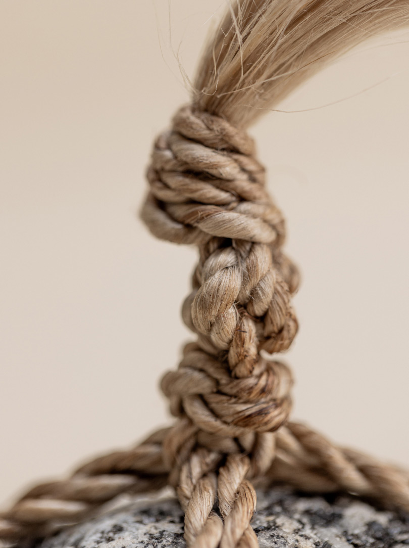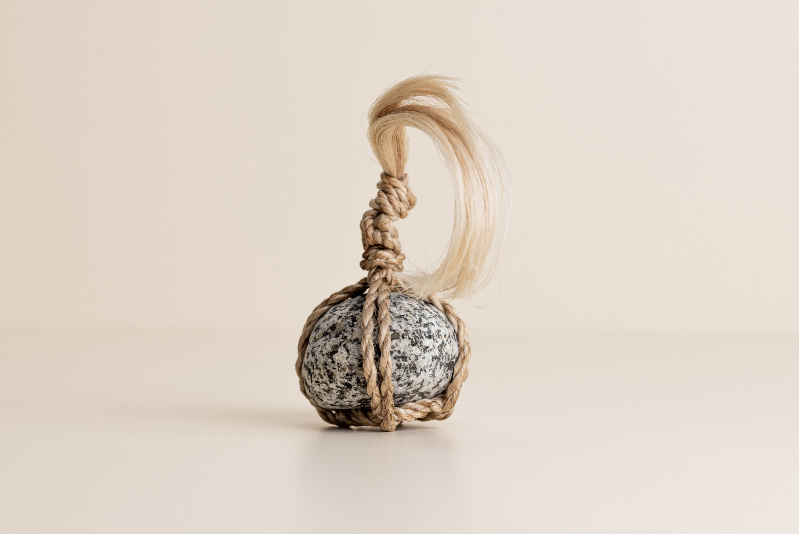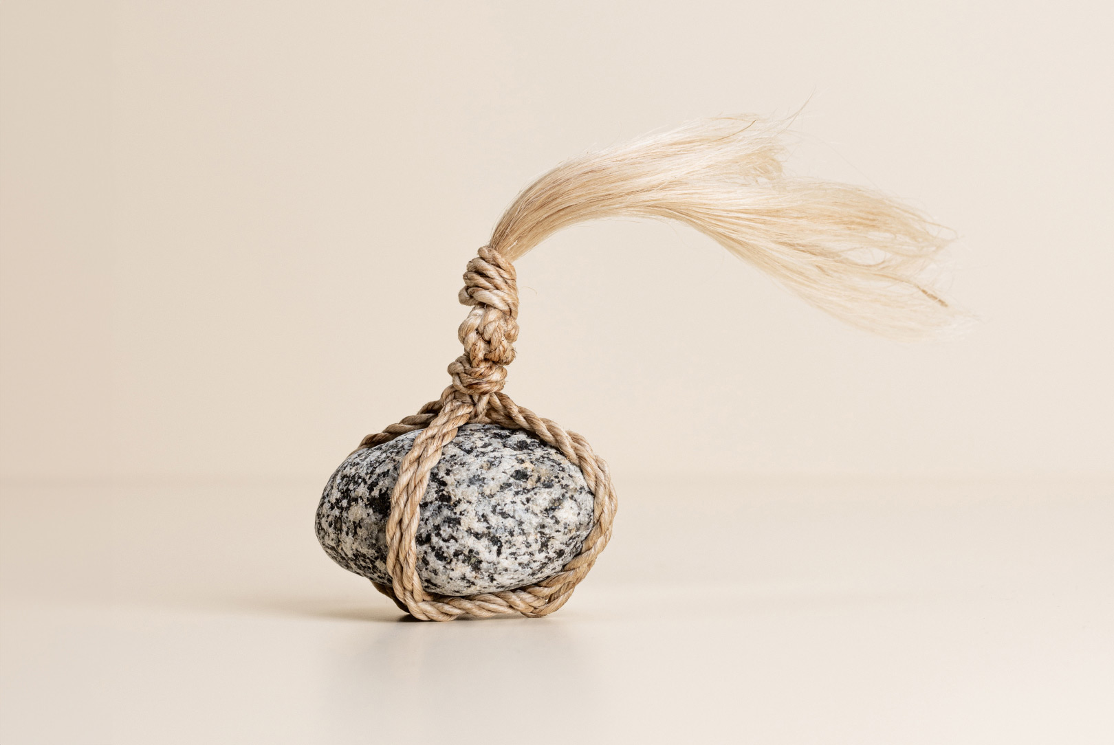 AGOBAY Showroom ZurichOften used in Japanese temples and tea houses, kekkai stones are crafted with intention. They are not merely objects but keepers of spiritual wisdom, echoing the Zen philosophy that ‘heaven, earth and I all share the same origin, and are therefore one’. In Japan, this has led to a spirit of respect for nature and a desire to live in harmony with it since ancient times. The tactile roughness of the stone and the smooth strength of the hemp invite one to ponder the interconnectedness of our existence with nature.