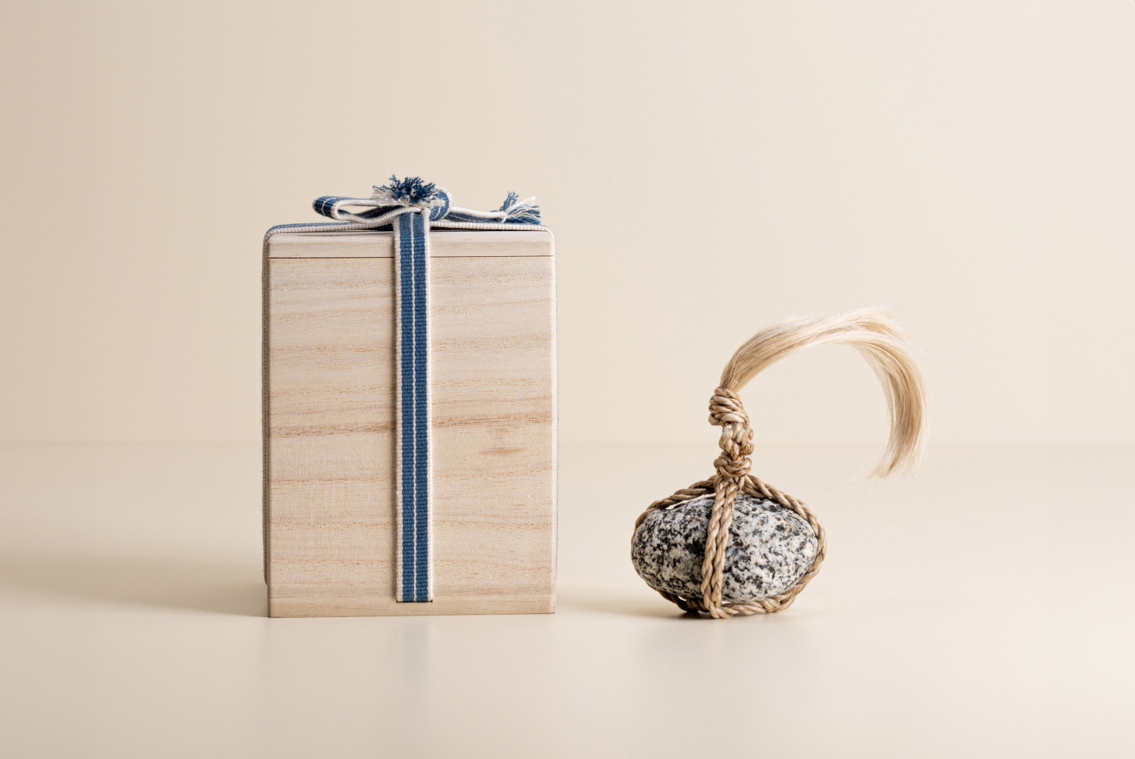 Each stone is delicately wrapped in washi paper, a traditional Japanese paper crafted from the elongated inner fibres of three plants: kozo, mitsumata and gampi. It is presented in a wooden box bearing the artisan’s signature mark. The box itself is made of Paulownia wood, known in East Asia as the ‘empress tree’ and valued for its lightweight but strong properties.