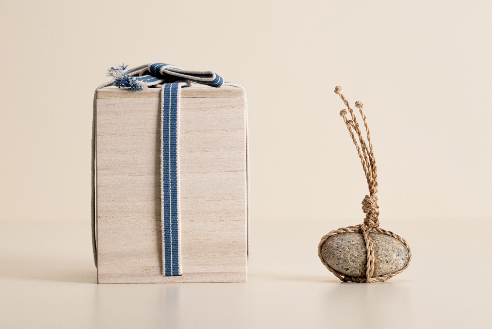 Each stone is delicately wrapped in washi paper, a traditional Japanese paper crafted from the elongated inner fibres of three plants: kozo, mitsumata and gampi. It is presented in a wooden box bearing the artisan’s signature mark. The box itself is made of Paulownia wood, known in East Asia as the ‘empress tree’ and valued for its lightweight but strong properties.