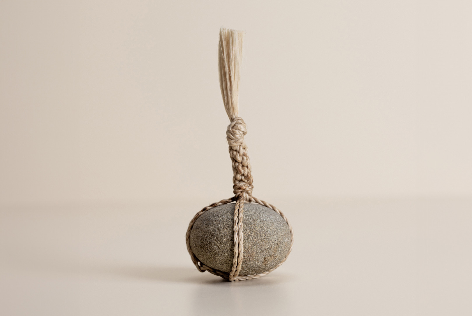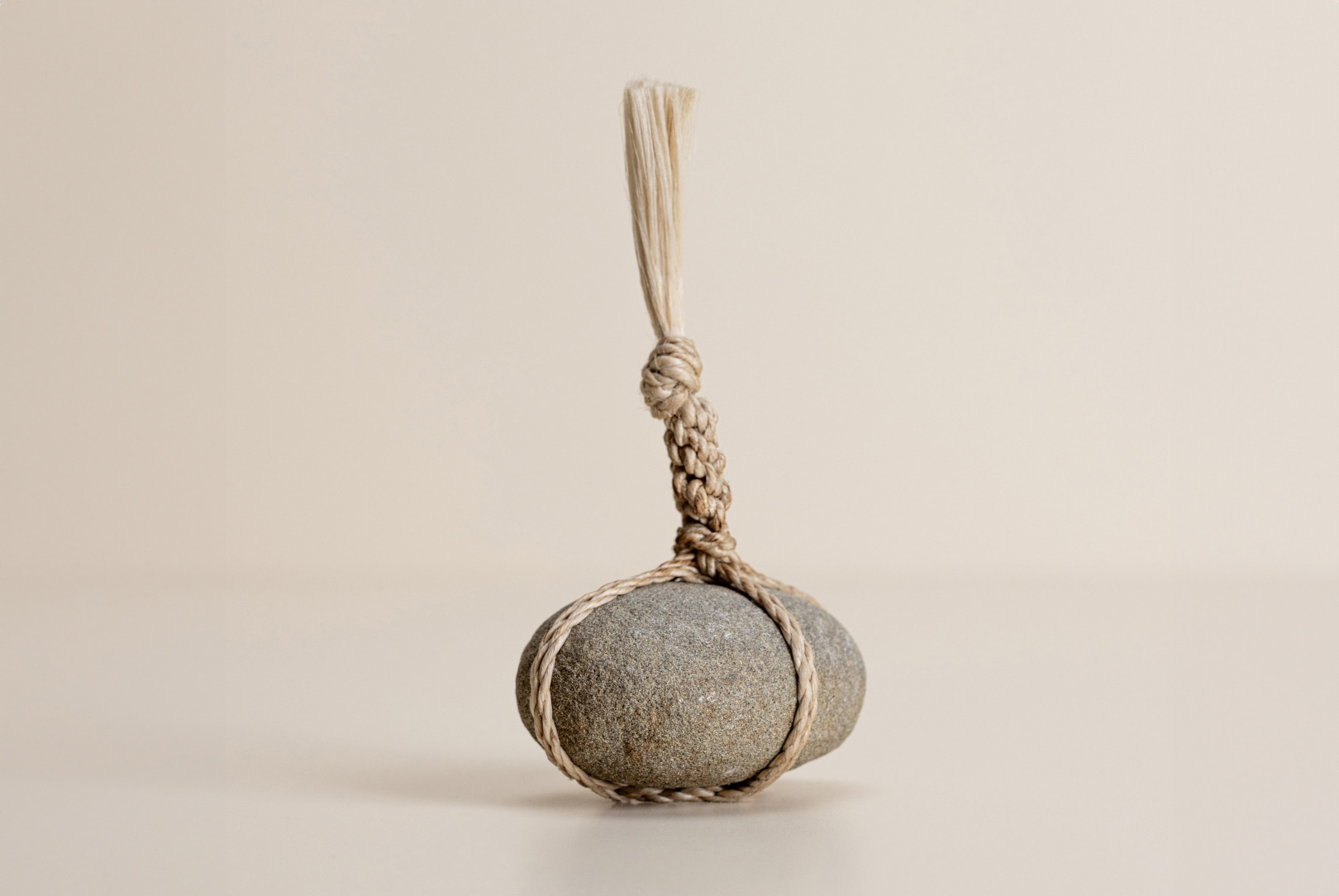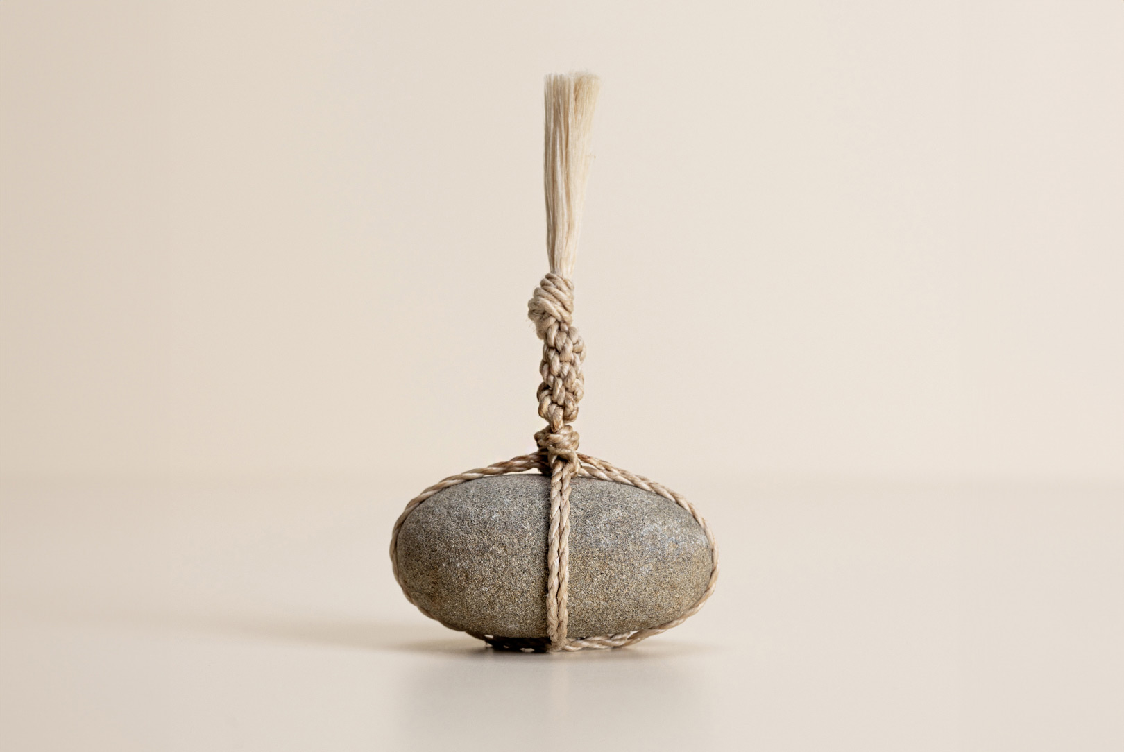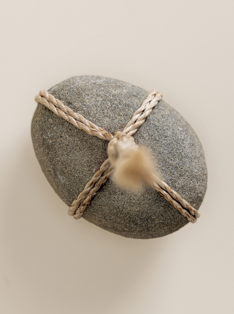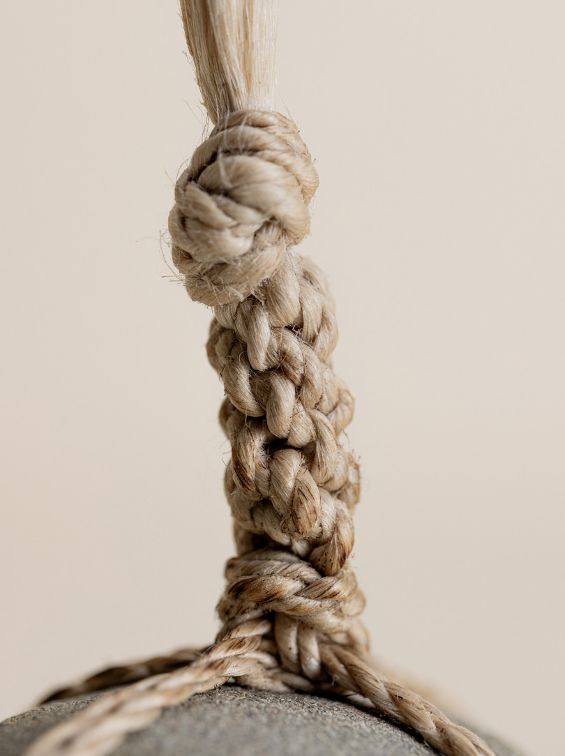 AGOBAY Showroom ZurichOften used in Japanese temples and tea houses, kekkai stones are crafted with intention. They are not merely objects but keepers of spiritual wisdom, echoing the Zen philosophy that ‘heaven, earth and I all share the same origin, and are therefore one’. In Japan, this has led to a spirit of respect for nature and a desire to live in harmony with it since ancient times. The tactile roughness of the stone and the smooth strength of the hemp invite one to ponder the interconnectedness of our existence with nature.