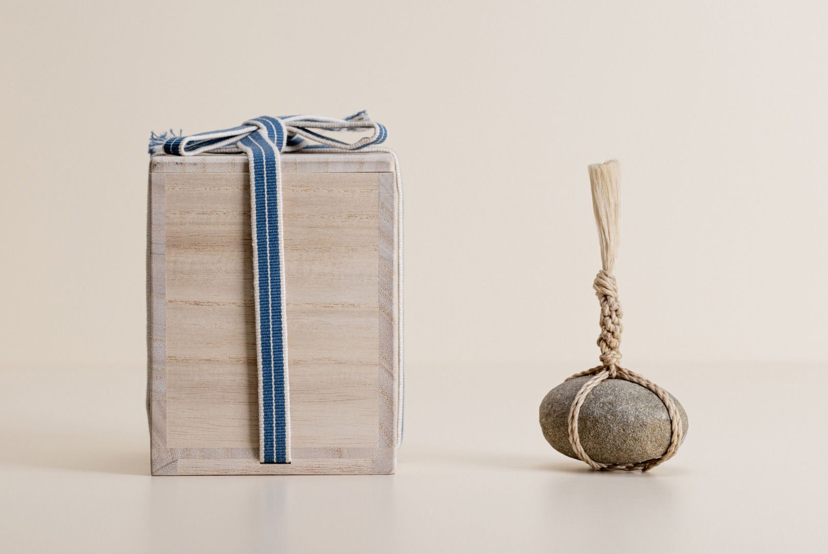 Each stone is delicately wrapped in washi paper, a traditional Japanese paper crafted from the elongated inner fibres of three plants: kozo, mitsumata and gampi. It is presented in a wooden box bearing the artisan’s signature mark. The box itself is made of Paulownia wood, known in East Asia as the ‘empress tree’ and valued for its lightweight but strong properties.