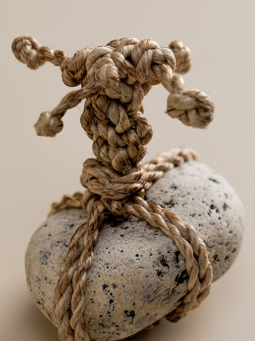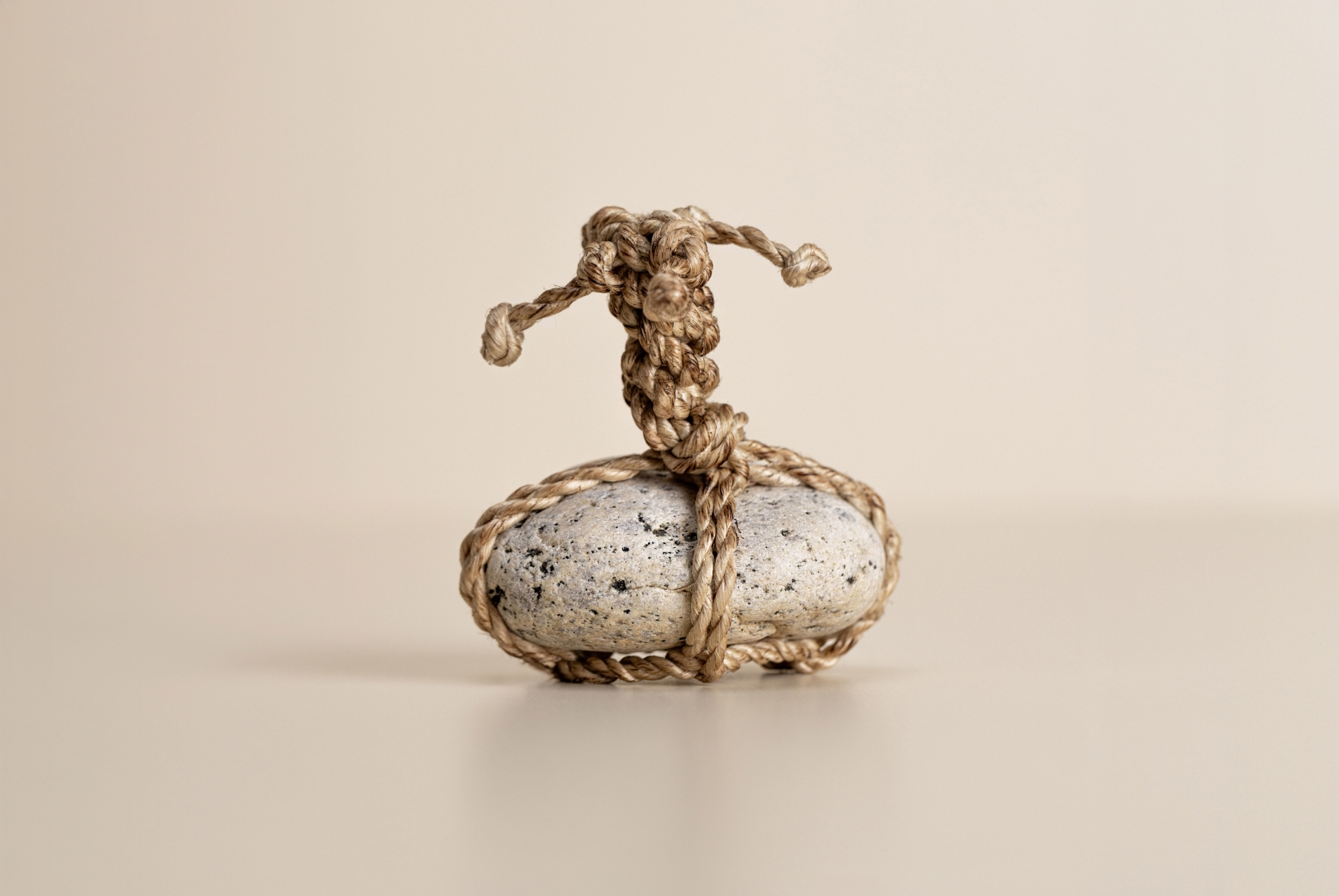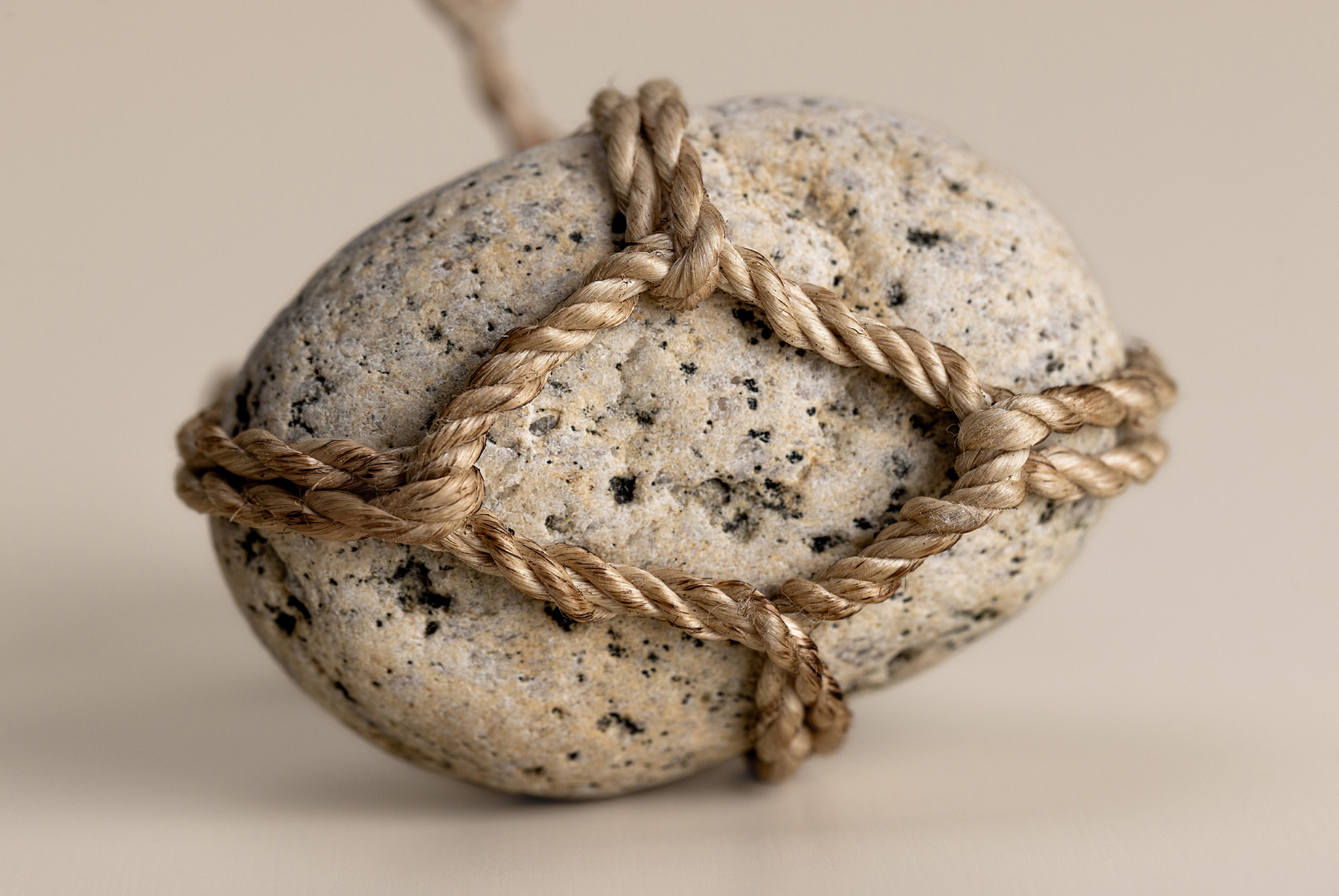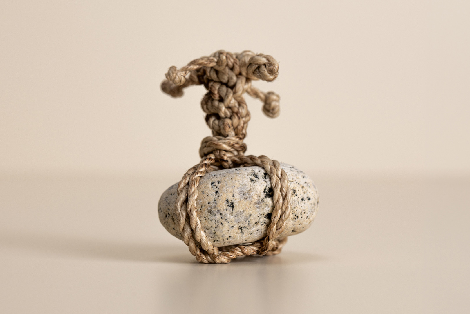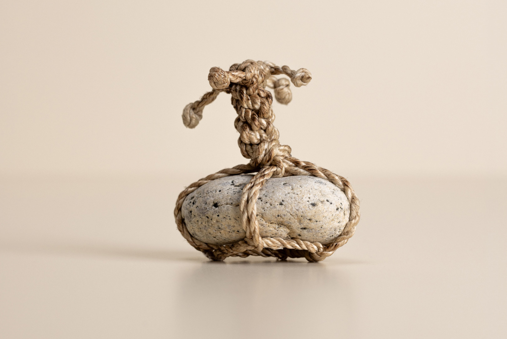 AGOBAY Showroom ZurichOften used in Japanese temples and tea houses, kekkai stones are crafted with intention. They are not merely objects but keepers of spiritual wisdom, echoing the Zen philosophy that ‘heaven, earth and I all share the same origin, and are therefore one’. In Japan, this has led to a spirit of respect for nature and a desire to live in harmony with it since ancient times. The tactile roughness of the stone and the smooth strength of the hemp invite one to ponder the interconnectedness of our existence with nature.