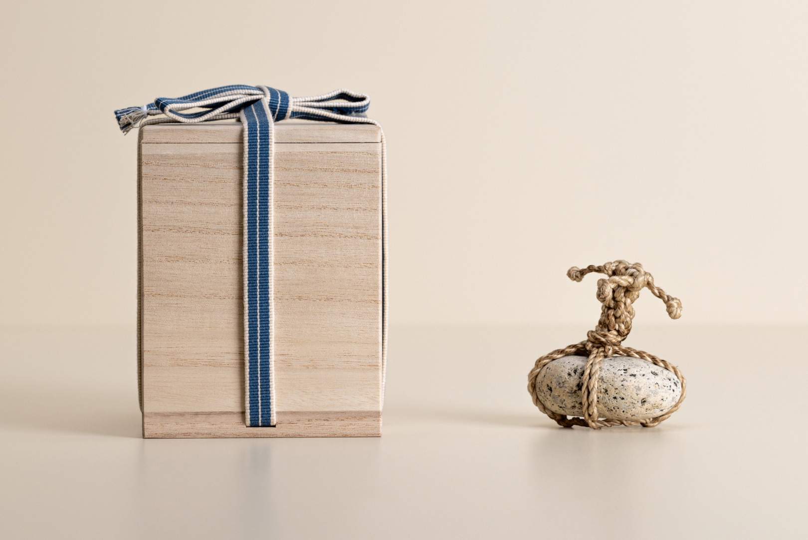 Each stone is delicately wrapped in washi paper, a traditional Japanese paper crafted from the elongated inner fibres of three plants: kozo, mitsumata and gampi. It is presented in a wooden box bearing the artisan’s signature mark. The box itself is made of Paulownia wood, known in East Asia as the ‘empress tree’ and valued for its lightweight but strong properties.