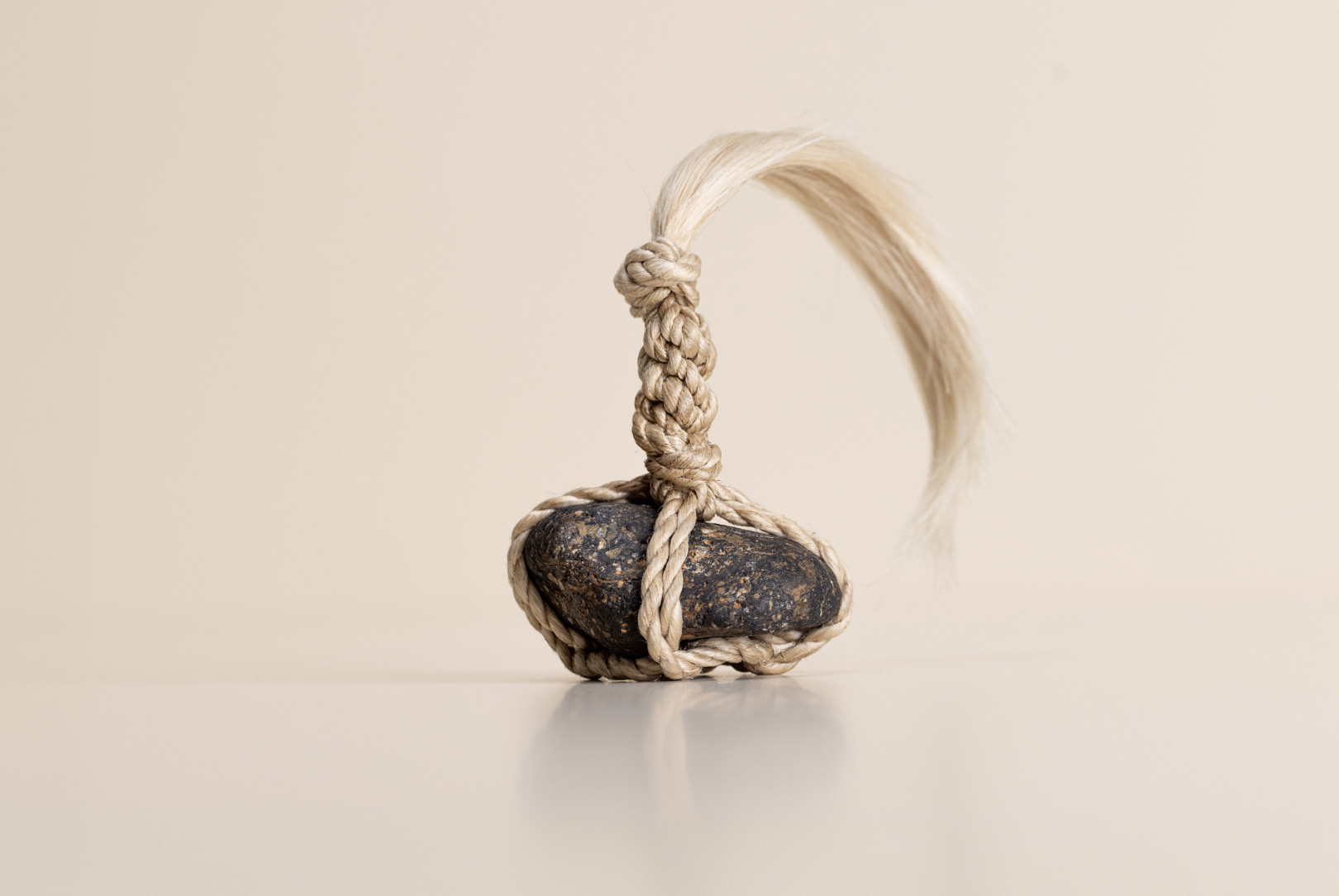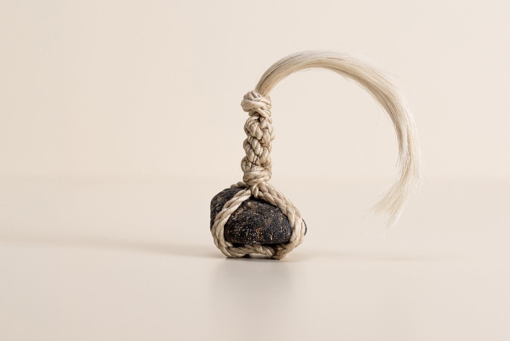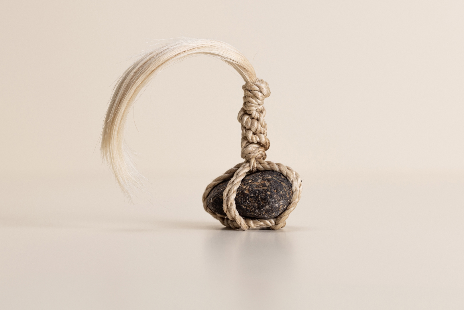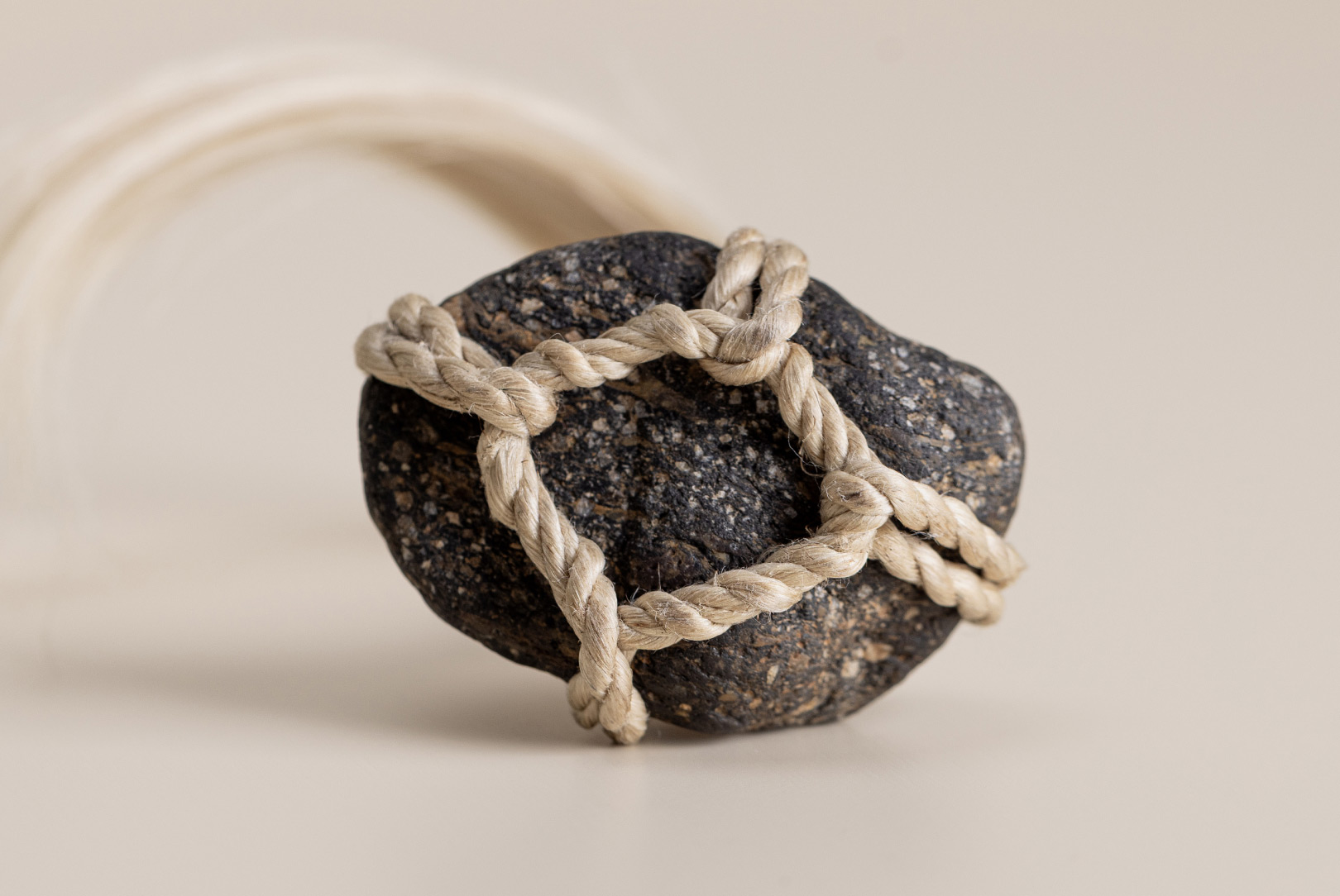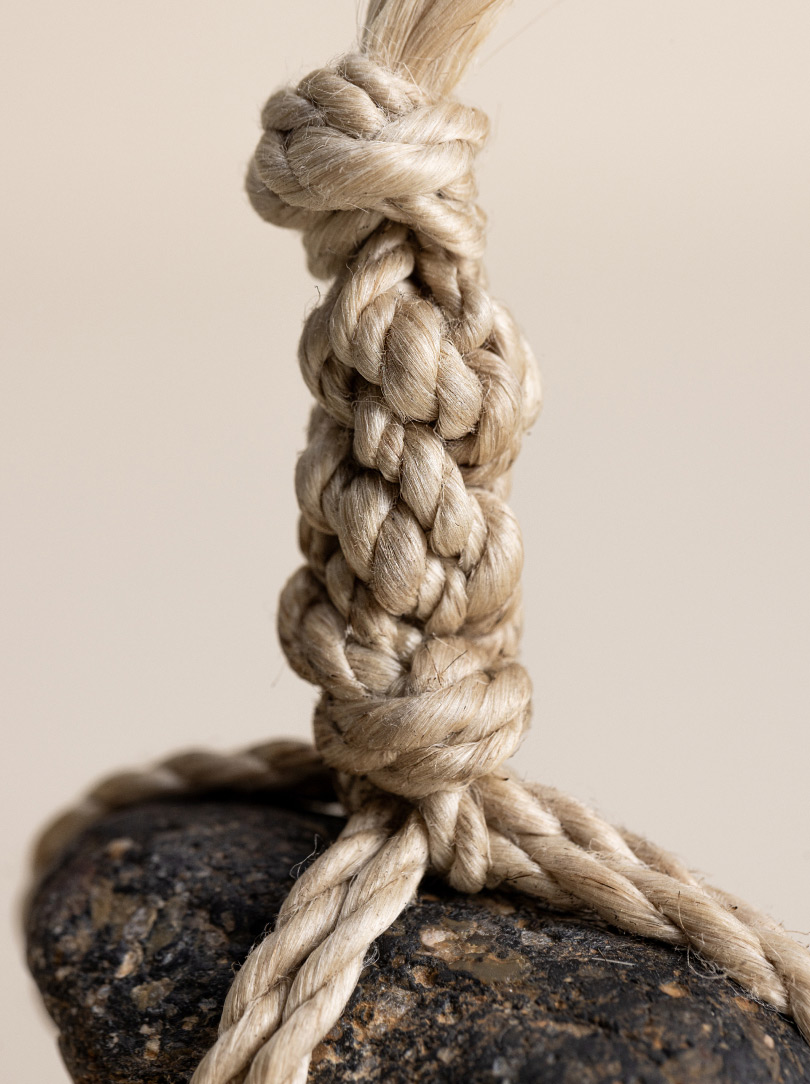 AGOBAY Showroom ZurichOften used in Japanese temples and tea houses, kekkai stones are crafted with intention. They are not merely objects but keepers of spiritual wisdom, echoing the Zen philosophy that ‘heaven, earth and I all share the same origin, and are therefore one’. In Japan, this has led to a spirit of respect for nature and a desire to live in harmony with it since ancient times. The tactile roughness of the stone and the smooth strength of the hemp invite one to ponder the interconnectedness of our existence with nature.