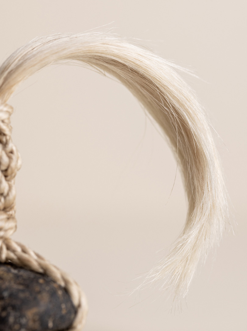 In the quietness of the dawn at one of Kyoto’s oldest Zen temples, Buddhist Zen monk Tosei Shinabe sits in deep meditation, practising ‘zazen’ (‘za’ 坐, Japanese for seated and ‘zen’ 禅 for meditation). His journey takes him to the mystical Awaji Island, the ‘land of birth’ in Japanese mythology, where he selects stones imbued with the earth‘s raw beauty. Wrapped in Seima rope made from the finest Japanese hemp, his za kekkai stones serve as a silent testament, a Dharma tool, to the boundary between two spiritual realms, a line as delicate as it is profound.