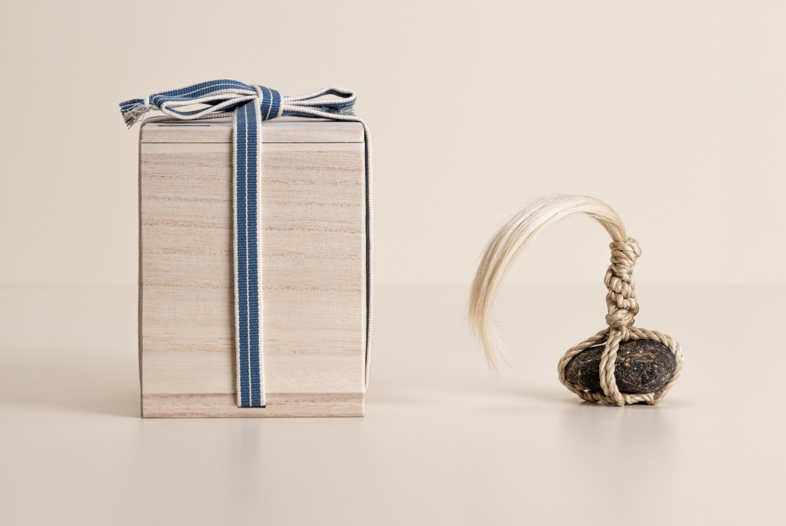 Each stone is delicately wrapped in washi paper, a traditional Japanese paper crafted from the elongated inner fibres of three plants: kozo, mitsumata and gampi. It is presented in a wooden box bearing the artisan’s signature mark. The box itself is made of Paulownia wood, known in East Asia as the ‘empress tree’ and valued for its lightweight but strong properties.