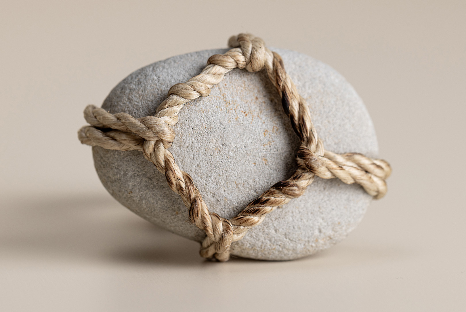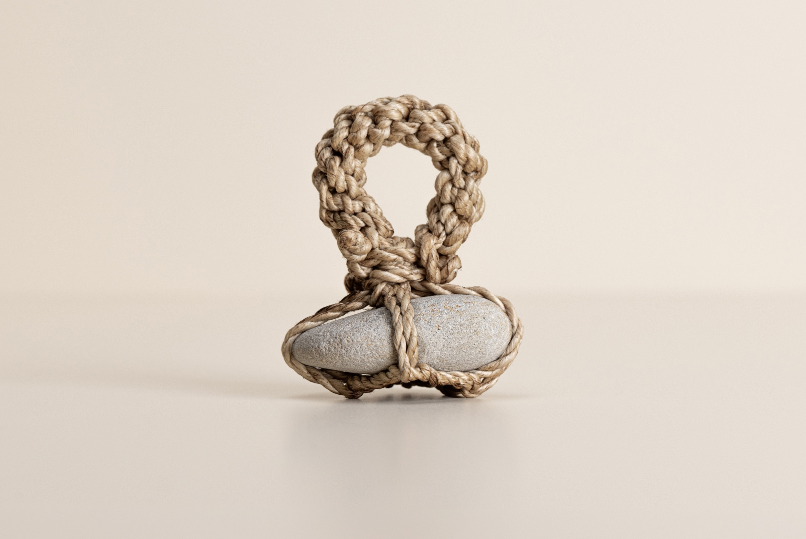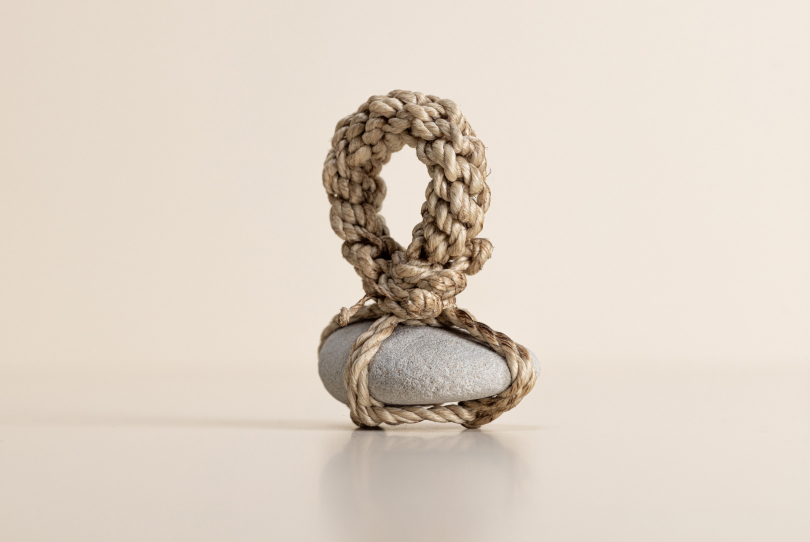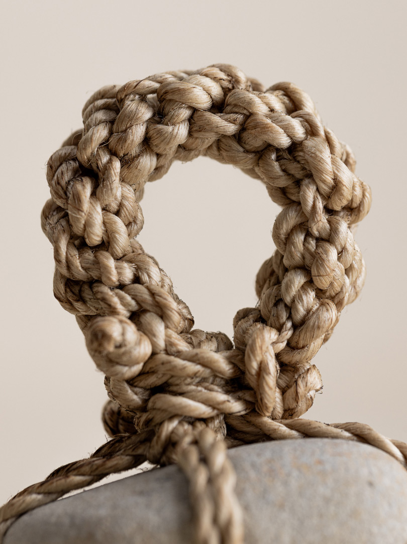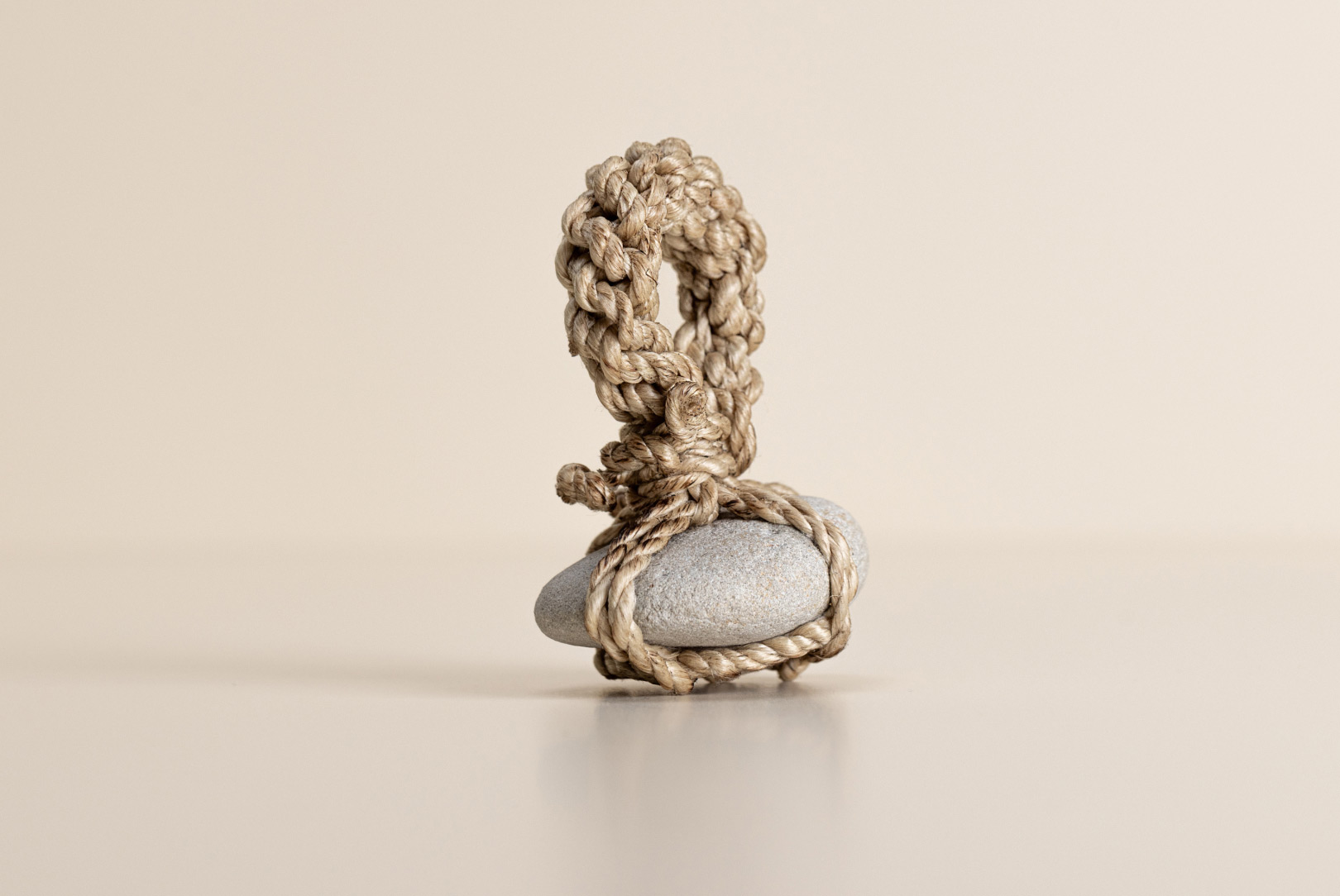 AGOBAY Showroom ZurichOften used in Japanese temples and tea houses, kekkai stones are crafted with intention. They are not merely objects but keepers of spiritual wisdom, echoing the Zen philosophy that ‘heaven, earth and I all share the same origin, and are therefore one’. In Japan, this has led to a spirit of respect for nature and a desire to live in harmony with it since ancient times. The tactile roughness of the stone and the smooth strength of the hemp invite one to ponder the interconnectedness of our existence with nature.