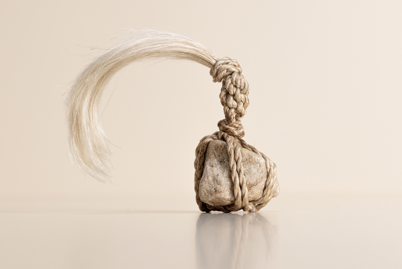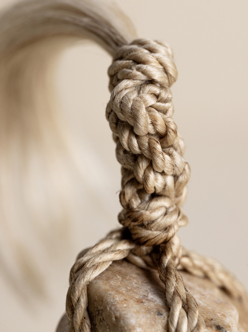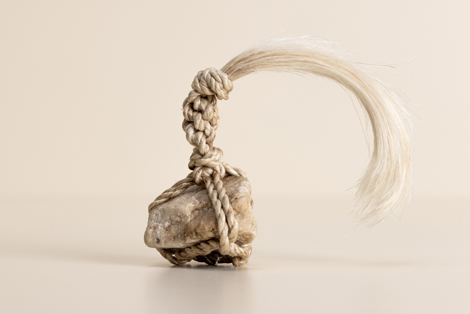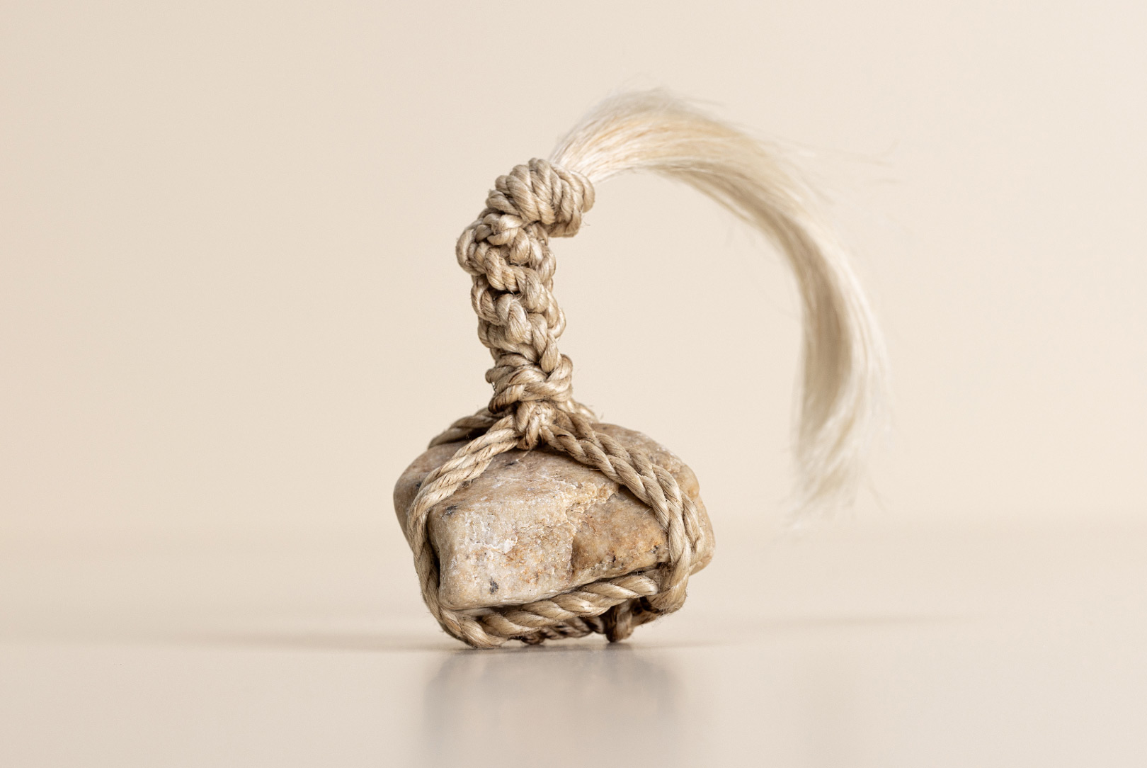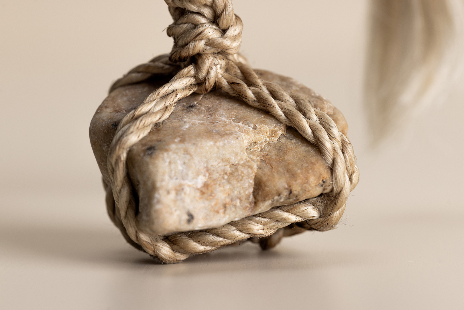 AGOBAY Showroom ZurichOften used in Japanese temples and tea houses, kekkai stones are crafted with intention. They are not merely objects but keepers of spiritual wisdom, echoing the Zen philosophy that ‘heaven, earth and I all share the same origin, and are therefore one’. In Japan, this has led to a spirit of respect for nature and a desire to live in harmony with it since ancient times. The tactile roughness of the stone and the smooth strength of the hemp invite one to ponder the interconnectedness of our existence with nature.