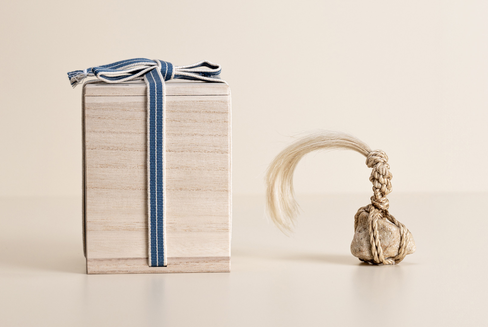 Each stone is delicately wrapped in washi paper, a traditional Japanese paper crafted from the elongated inner fibres of three plants: kozo, mitsumata and gampi. It is presented in a wooden box bearing the artisan’s signature mark. The box itself is made of Paulownia wood, known in East Asia as the ‘empress tree’ and valued for its lightweight but strong properties.