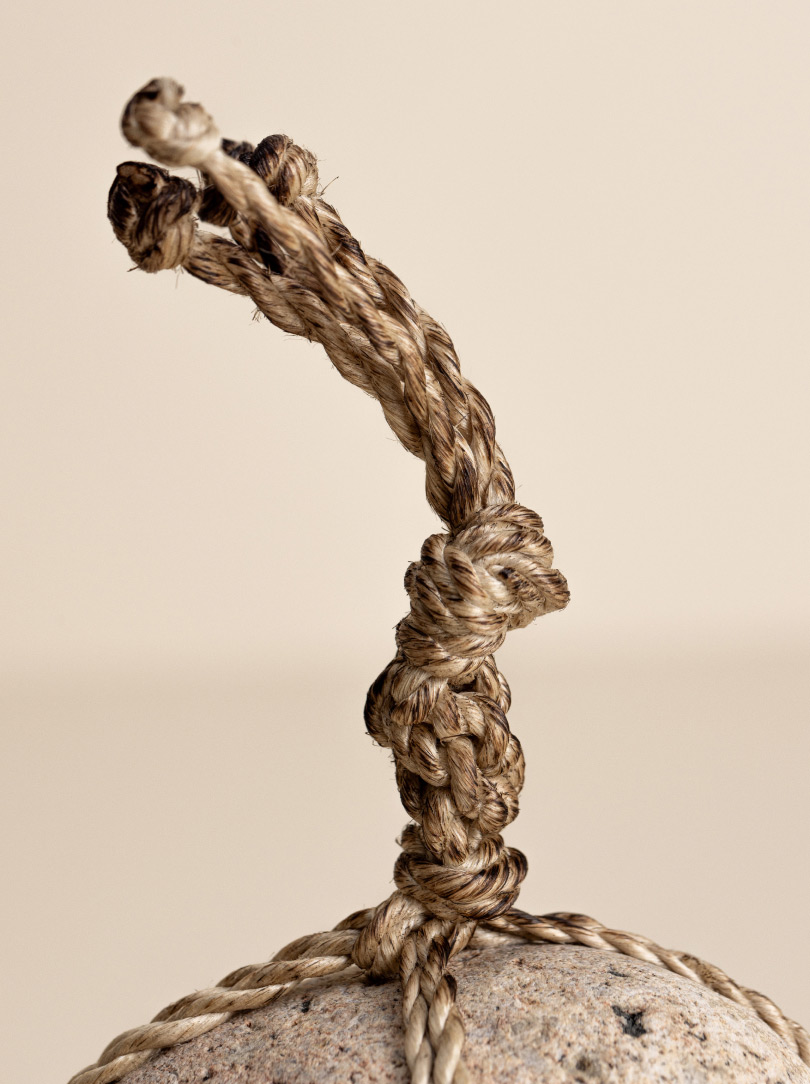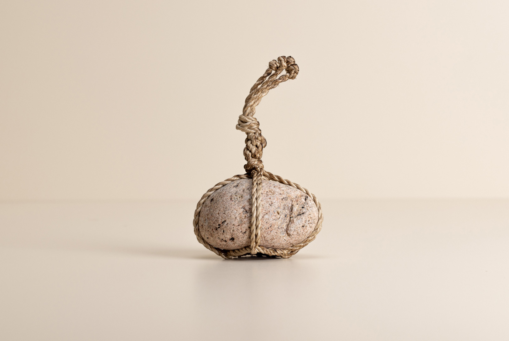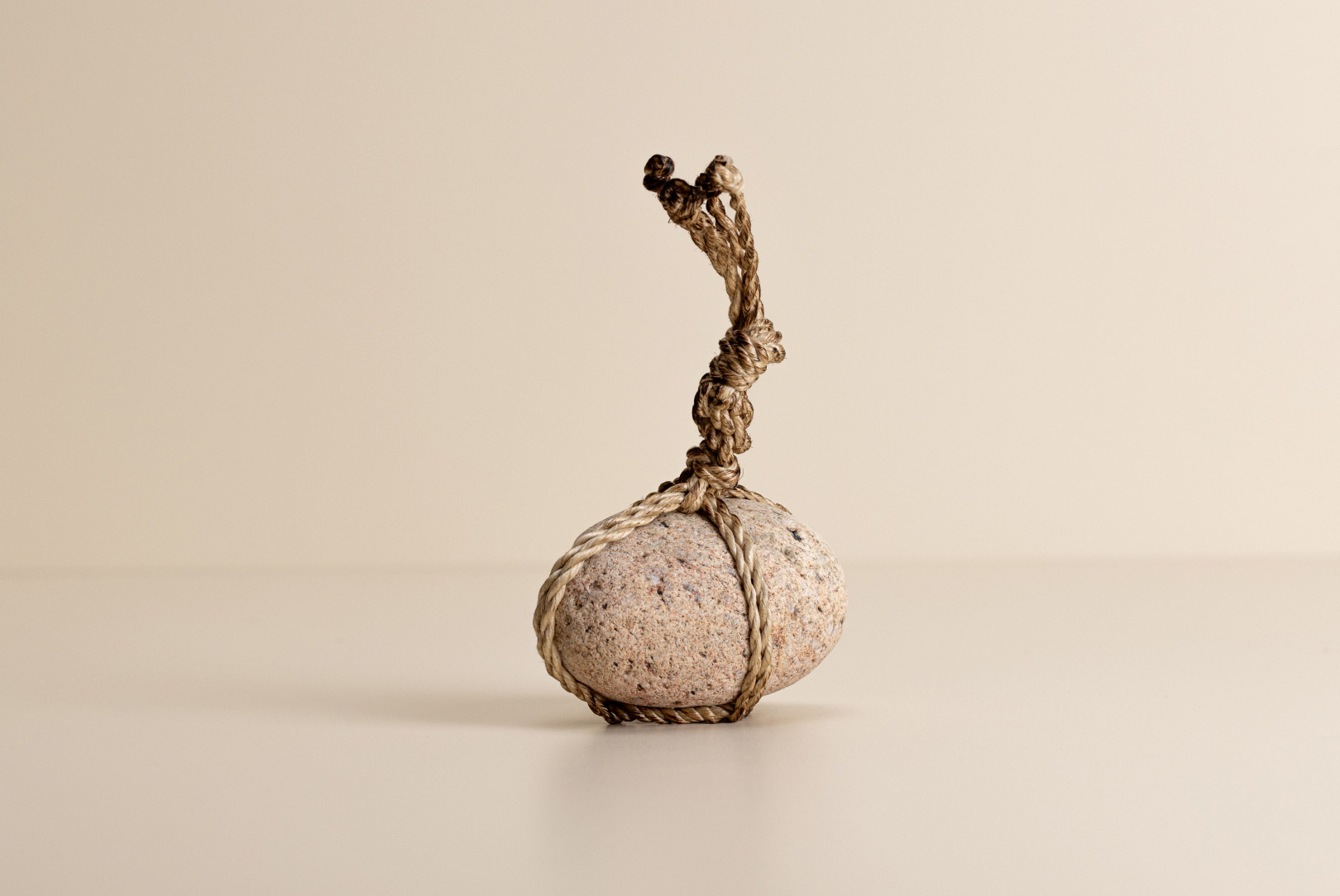 AGOBAY Showroom ZurichOften used in Japanese temples and tea houses, kekkai stones are crafted with intention. They are not merely objects but keepers of spiritual wisdom, echoing the Zen philosophy that ‘heaven, earth and I all share the same origin, and are therefore one’. In Japan, this has led to a spirit of respect for nature and a desire to live in harmony with it since ancient times. The tactile roughness of the stone and the smooth strength of the hemp invite one to ponder the interconnectedness of our existence with nature.