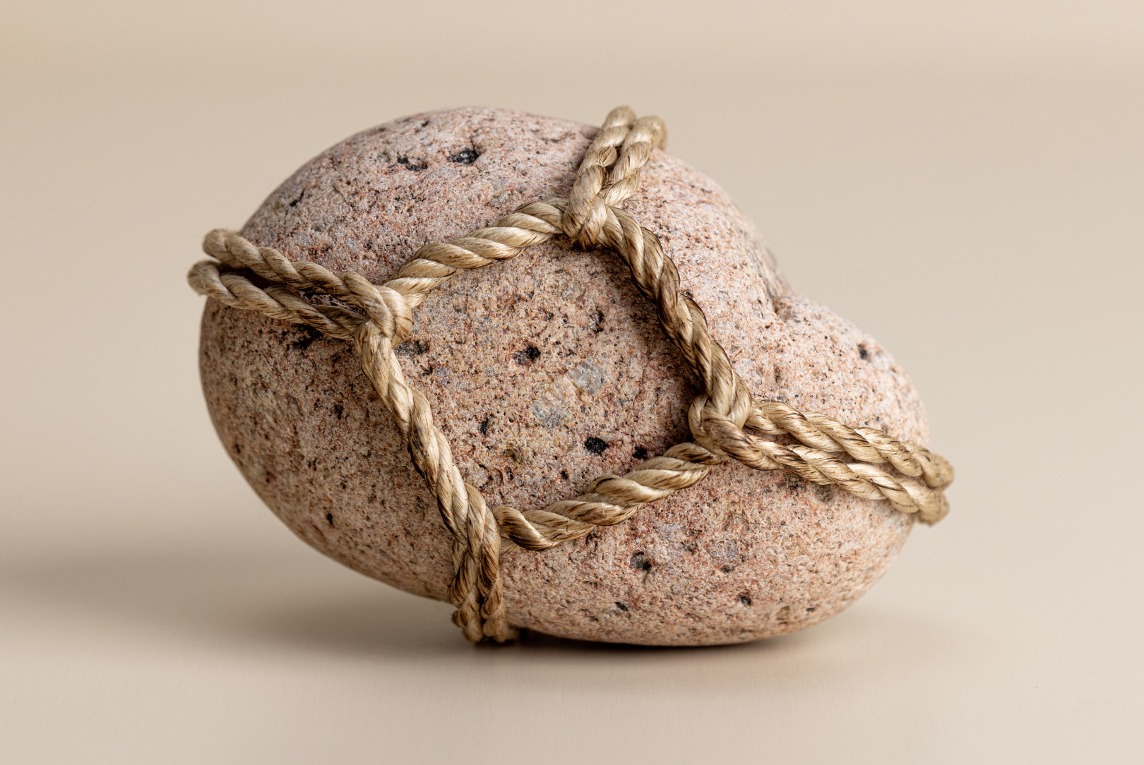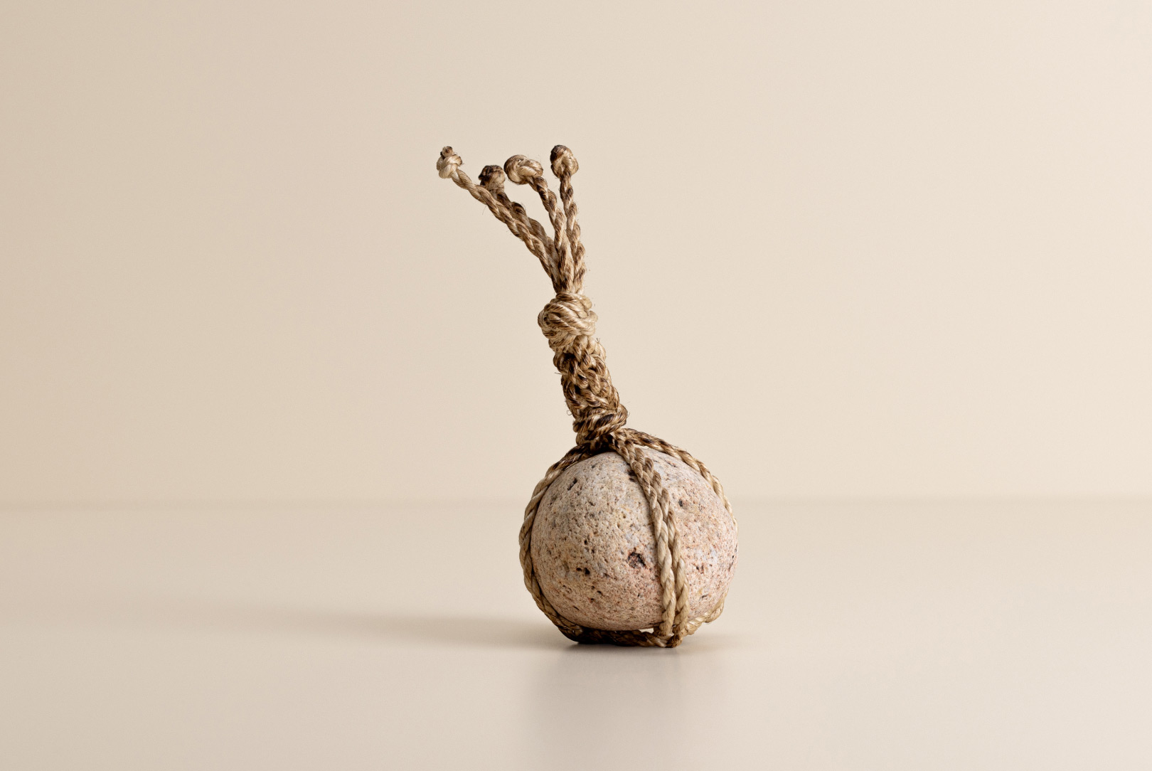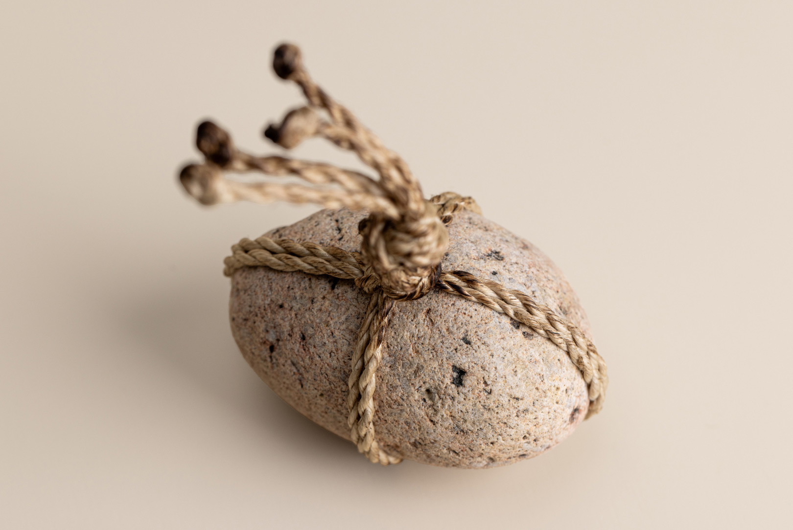 AGOBAY Showroom ZurichOften used in Japanese temples and tea houses, kekkai stones are crafted with intention. They are not merely objects but keepers of spiritual wisdom, echoing the Zen philosophy that ‘heaven, earth and I all share the same origin, and are therefore one’. In Japan, this has led to a spirit of respect for nature and a desire to live in harmony with it since ancient times. The tactile roughness of the stone and the smooth strength of the hemp invite one to ponder the interconnectedness of our existence with nature.
