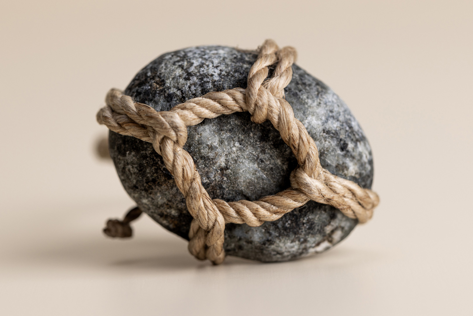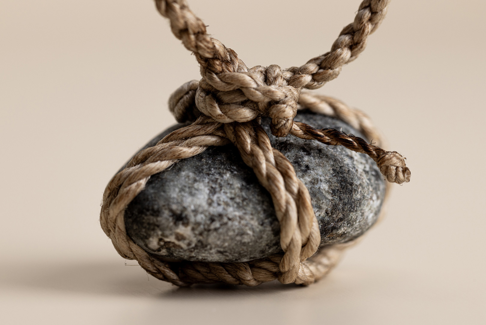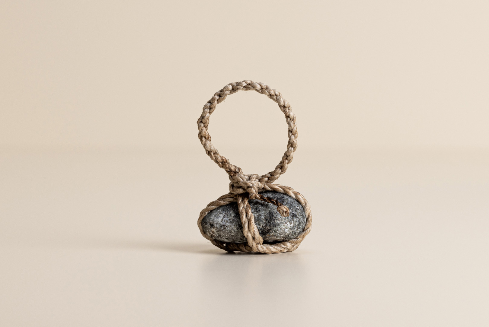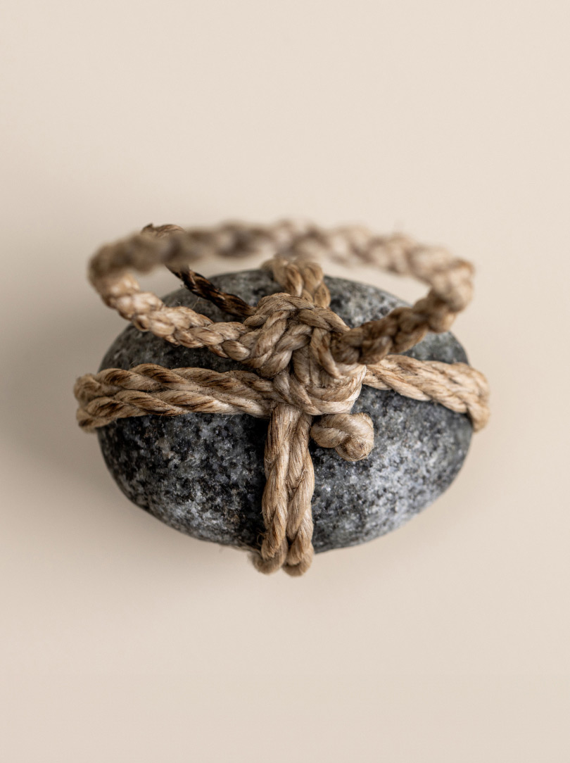 AGOBAY Showroom ZurichOften used in Japanese temples and tea houses, ‘kekkai’ stones are crafted with intention. They are not merely objects but keepers of spiritual wisdom, echoing the Zen philosophy that ‘heaven, earth and I all share the same origin, and are therefore one’. In Japan, this has led to a spirit of respect for nature and a desire to live in harmony with it since ancient times. The tactile roughness of the stone and the smooth strength of the hemp invite one to ponder the interconnectedness of our existence with nature.