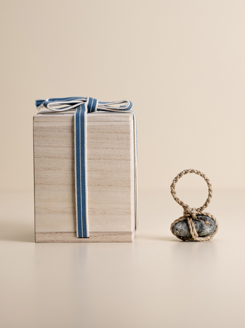 Each stone is delicately wrapped in washi paper, a traditional Japanese paper crafted from the elongated inner fibres of three plants: kozo, mitsumata and gampi. It is presented in a wooden box bearing the artisan’s signature mark. The box itself is made of Paulownia wood, known in East Asia as the ‘empress tree’ and valued for its lightweight but strong properties.