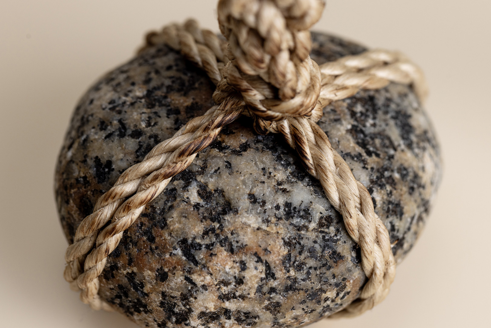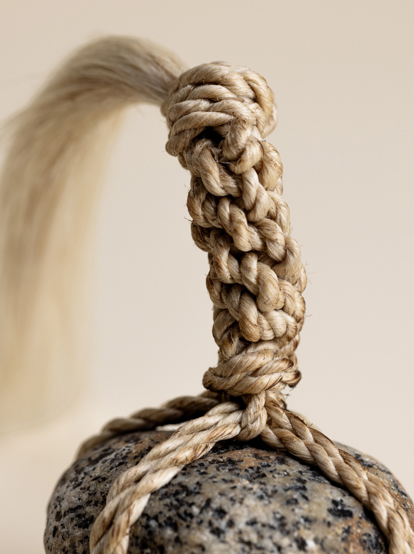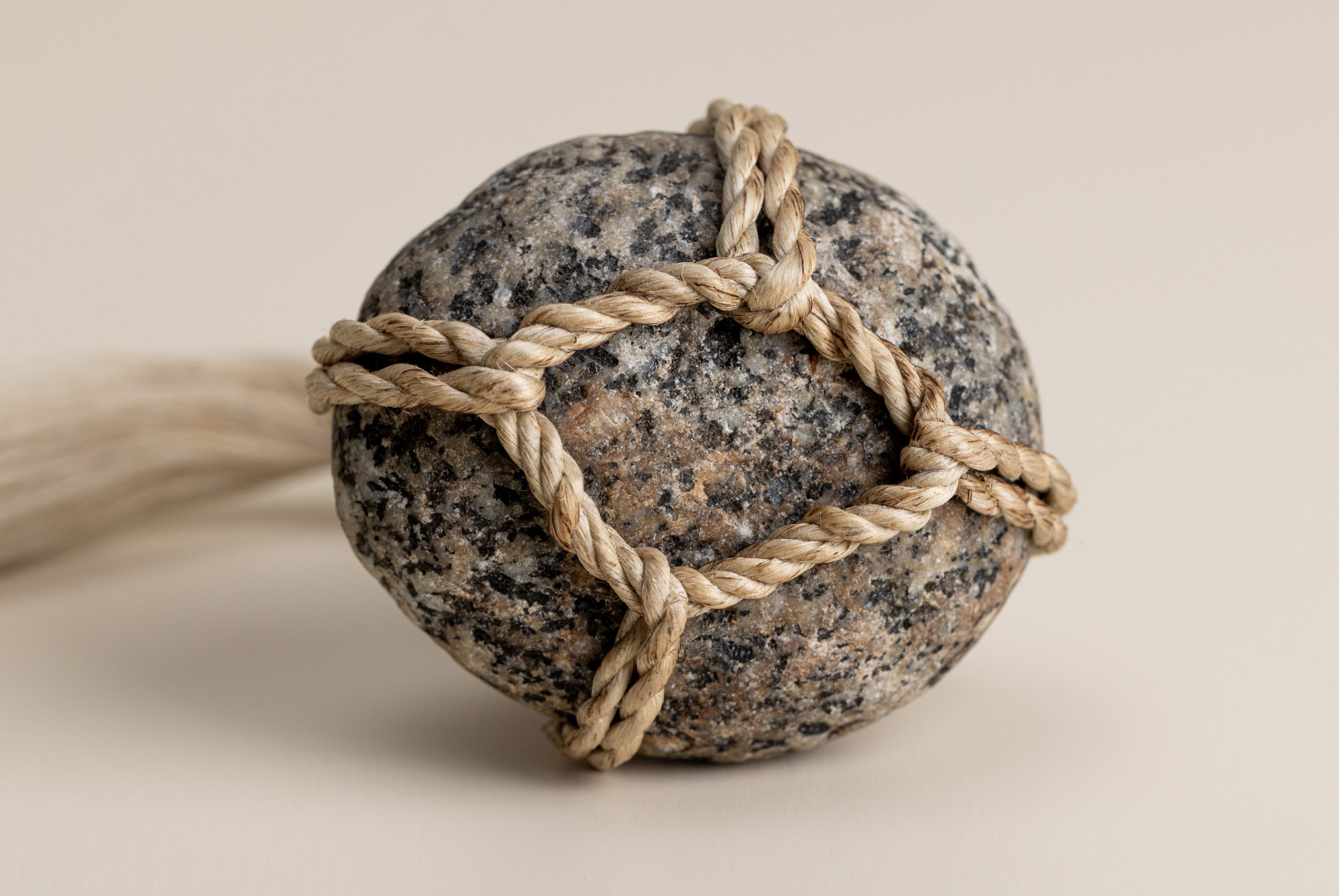 AGOBAY Showroom ZurichOften used in Japanese temples and tea houses, ‘kekkai’ stones are crafted with intention. They are not merely objects but keepers of spiritual wisdom, echoing the Zen philosophy that ‘heaven, earth and I all share the same origin, and are therefore one’. In Japan, this has led to a spirit of respect for nature and a desire to live in harmony with it since ancient times. The tactile roughness of the stone and the smooth strength of the hemp invite one to ponder the interconnectedness of our existence with nature.