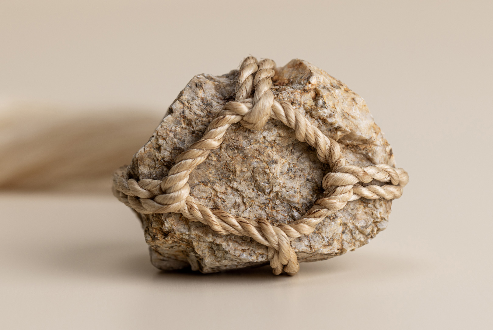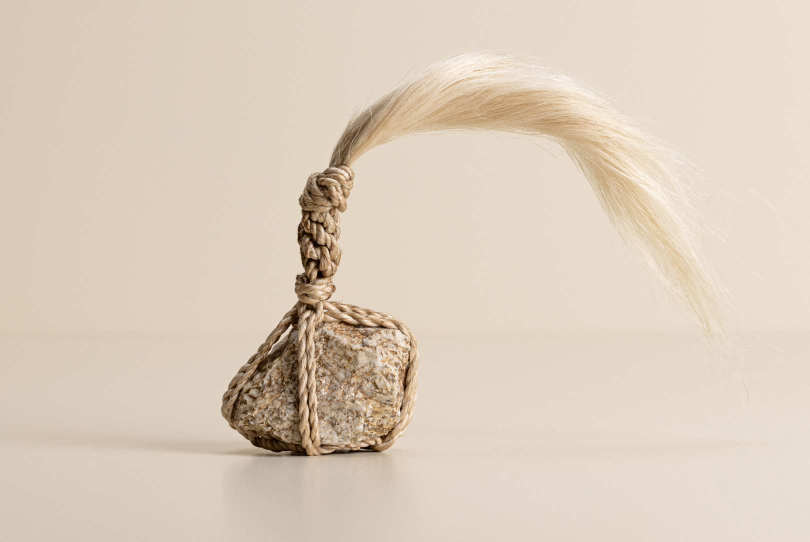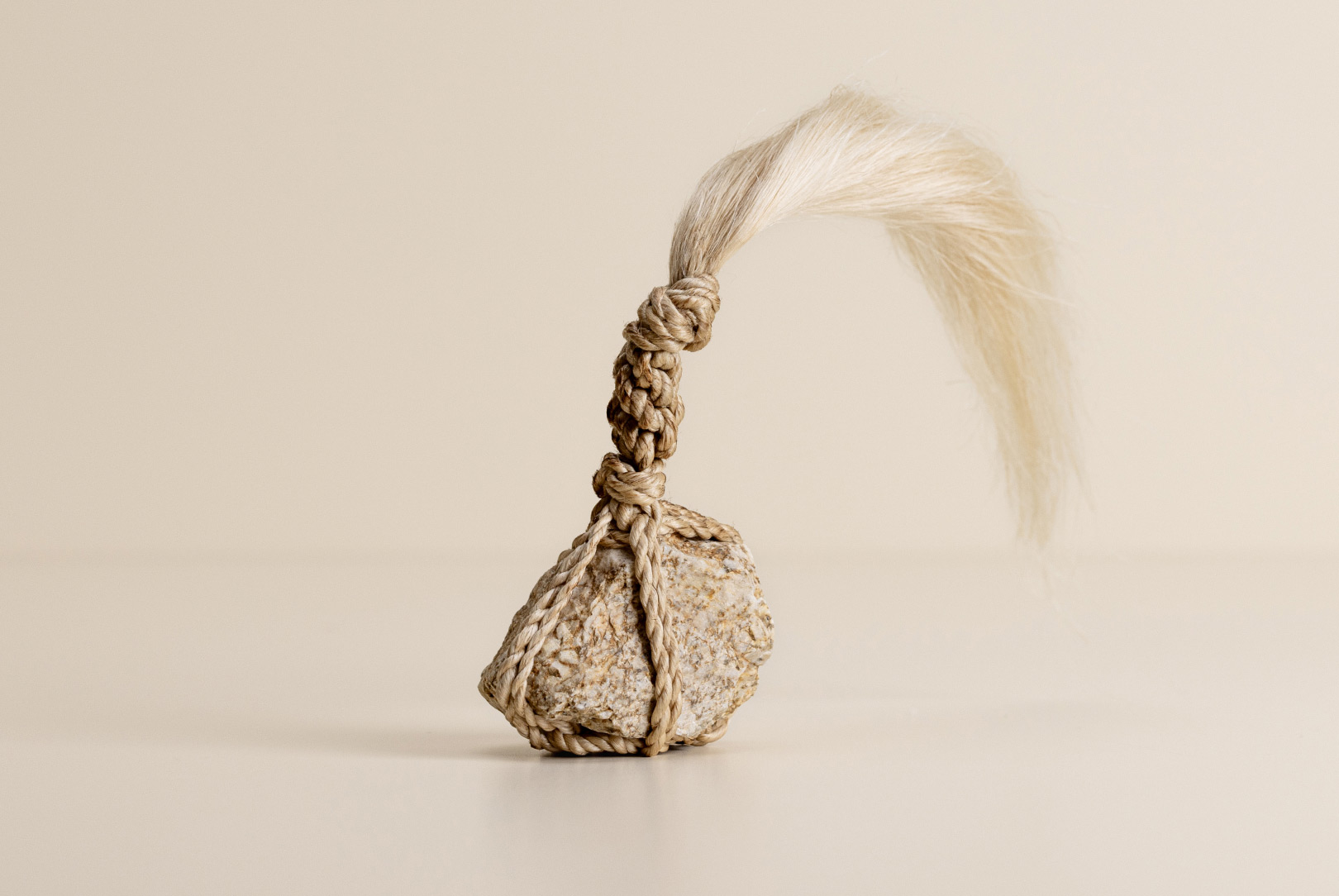AGOBAY Showroom ZurichOften used in Japanese temples and tea houses, kekkai stones are crafted with intention. They are not merely objects but keepers of spiritual wisdom, echoing the Zen philosophy that ‘heaven, earth and I all share the same origin, and are therefore one’. In Japan, this has led to a spirit of respect for nature and a desire to live in harmony with it since ancient times. The tactile roughness of the stone and the smooth strength of the hemp invite one to ponder the interconnectedness of our existence with nature.