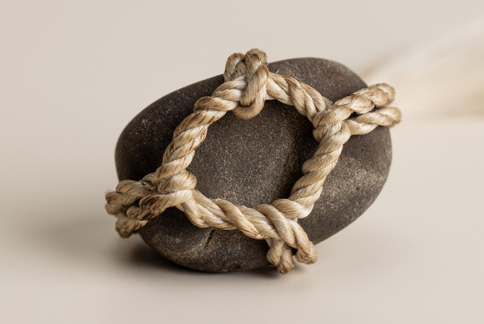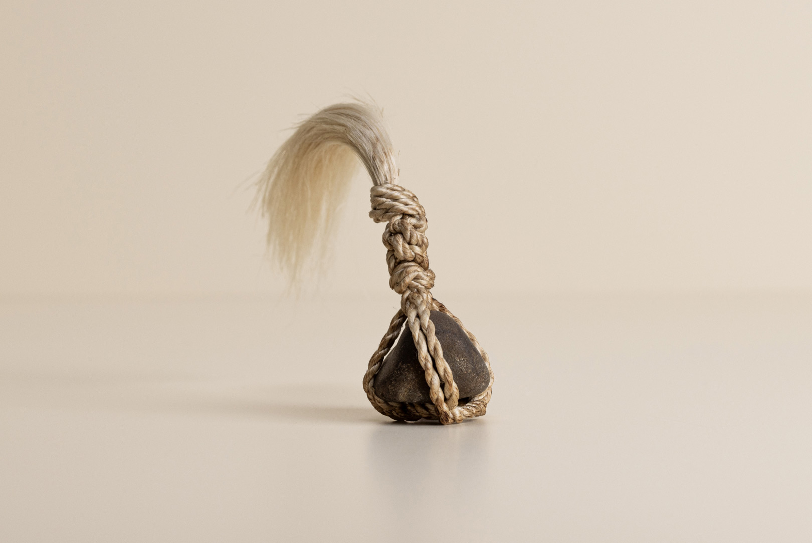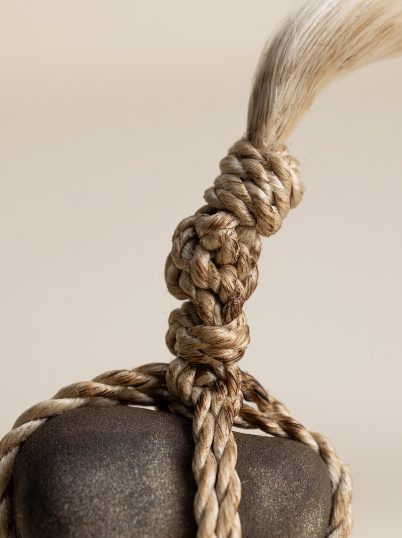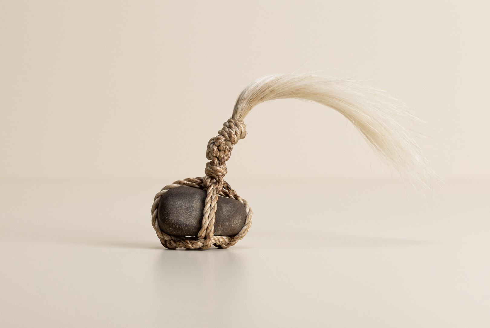 AGOBAY Showroom ZurichOften used in Japanese temples and tea houses, kekkai stones are crafted with intention. They are not merely objects but keepers of spiritual wisdom, echoing the Zen philosophy that ‘heaven, earth and I all share the same origin, and are therefore one’. In Japan, this has led to a spirit of respect for nature and a desire to live in harmony with it since ancient times. The tactile roughness of the stone and the smooth strength of the hemp invite one to ponder the interconnectedness of our existence with nature.