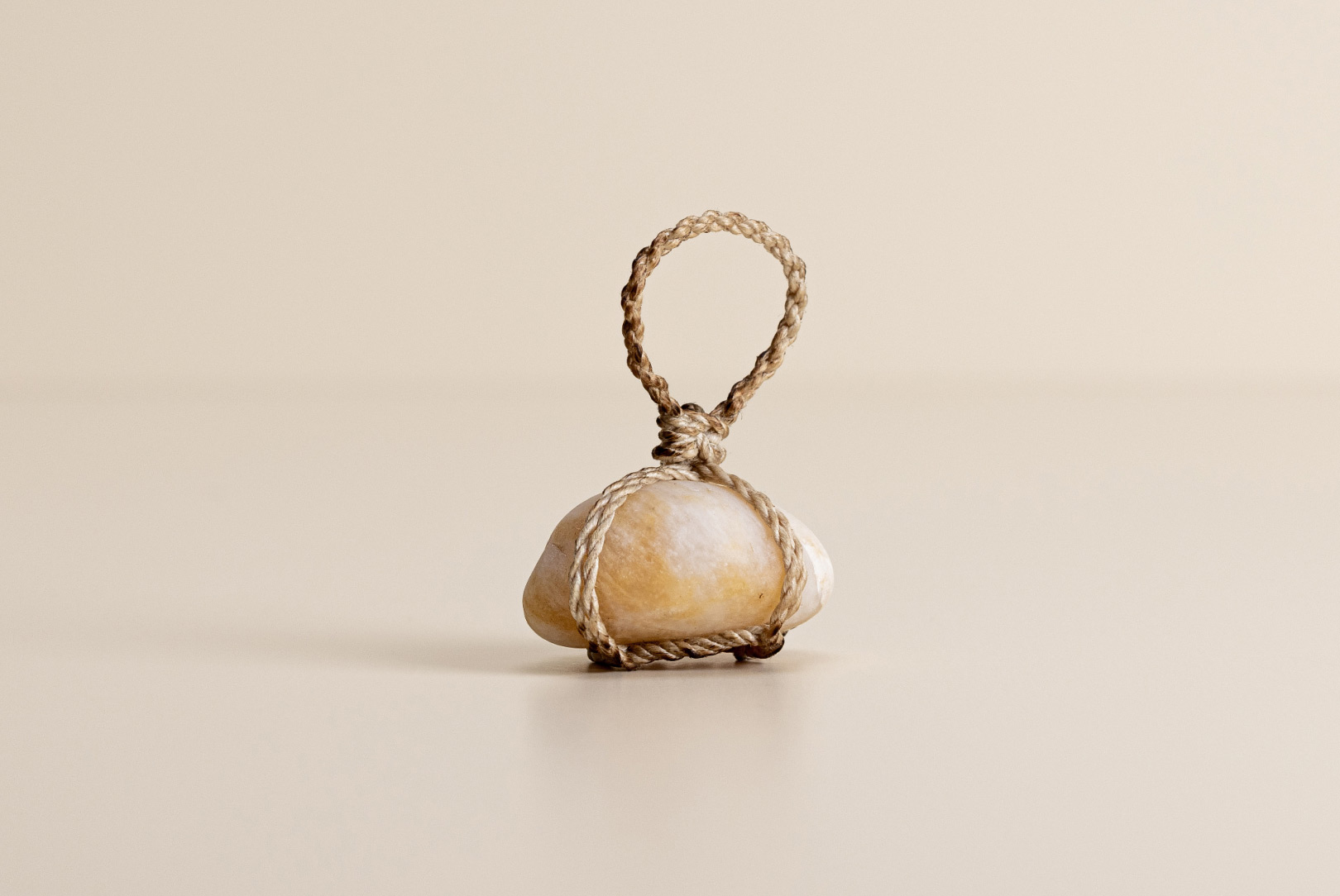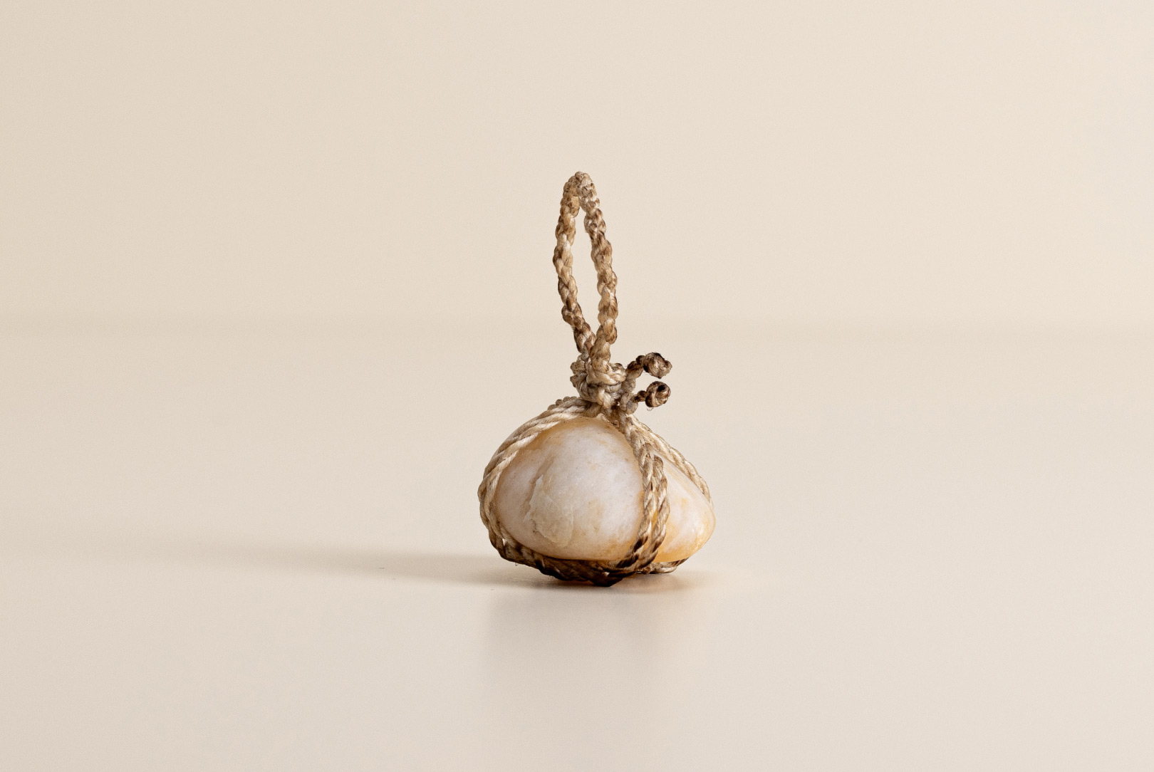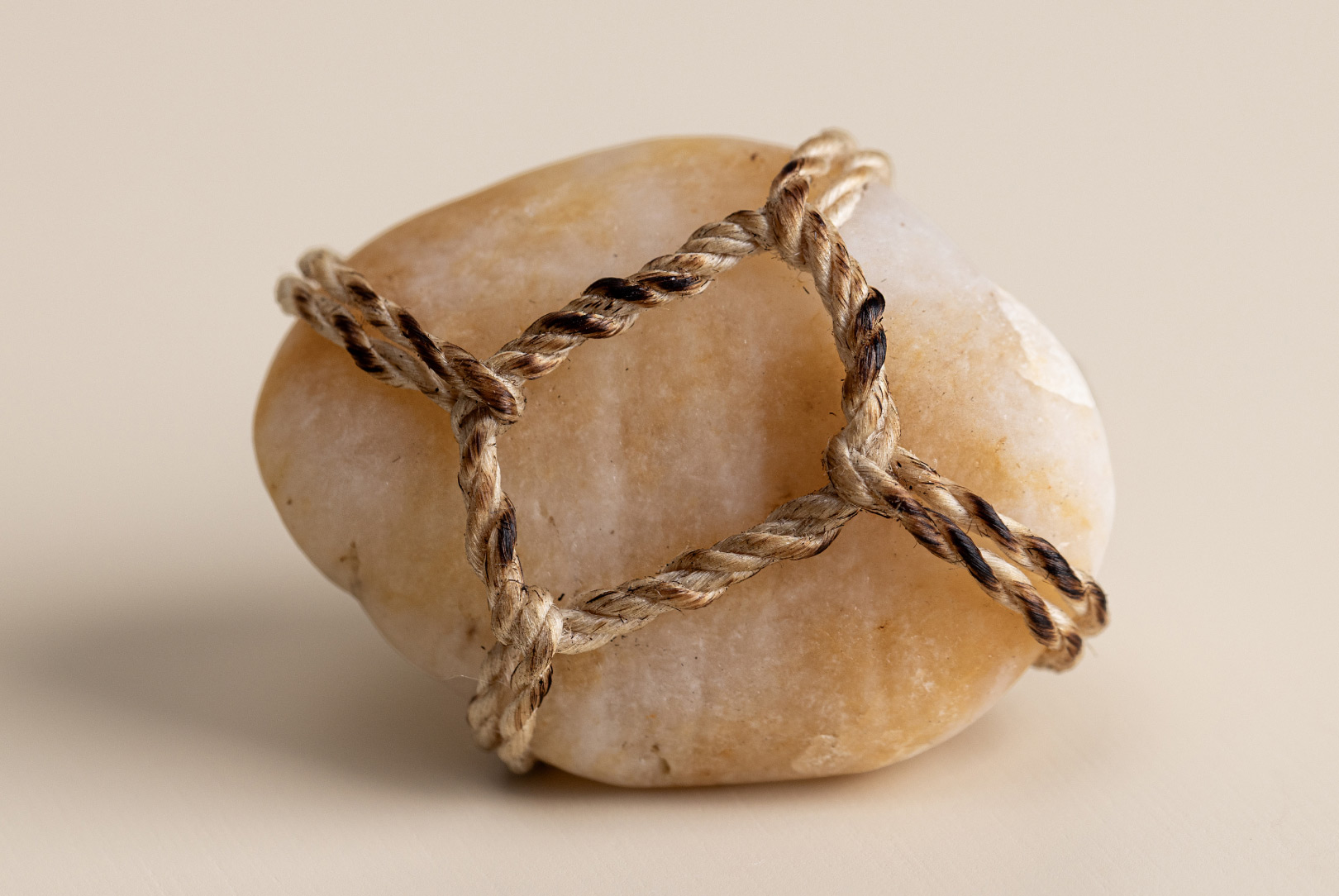 In the quietness of the dawn at one of Kyoto’s oldest Zen temples, Buddhist Zen monk Tosei Shinabe sits in deep meditation, practising ‘zazen’ (‘za’ 坐, Japanese for seated and ‘zen’ 禅 for meditation). His journey takes him to the mystical Awaji Island, the ‘land of birth’ in Japanese mythology, where he selects stones imbued with the earth‘s raw beauty. Wrapped in Seima rope made from the finest Japanese hemp, his za kekkai stones serve as a silent testament, a Dharma tool, to the boundary between two spiritual realms, a line as delicate as it is profound.