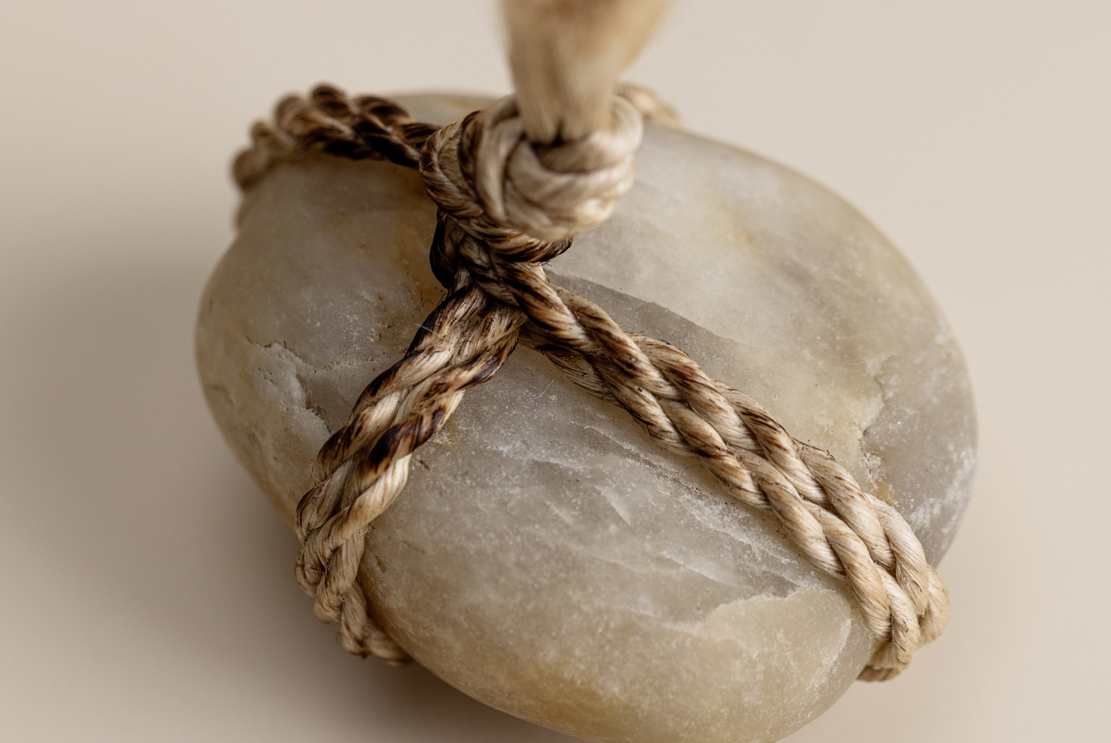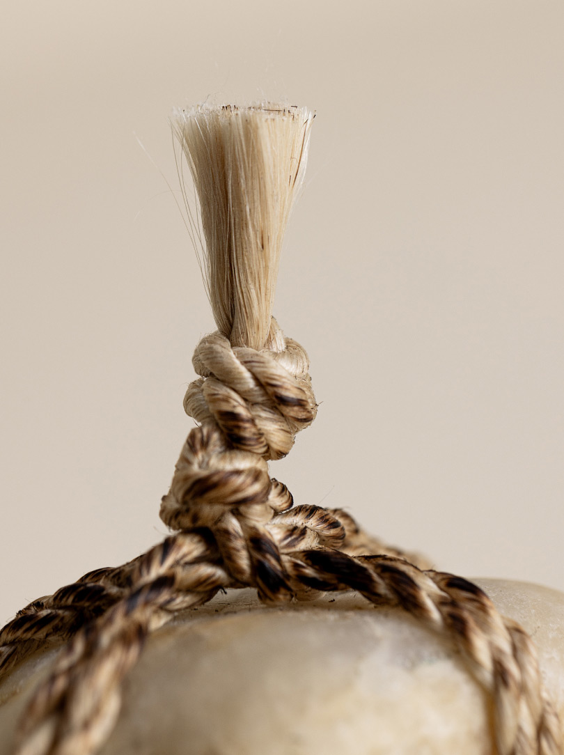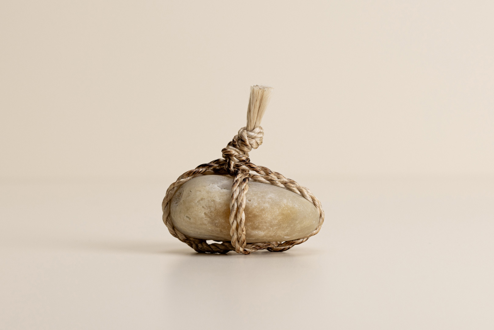 AGOBAY Showroom ZurichOften used in Japanese temples and tea houses, ‘kekkai’ stones are crafted with intention. They are not merely objects but keepers of spiritual wisdom, echoing the Zen philosophy that ‘heaven, earth and I all share the same origin, and are therefore one’. In Japan, this has led to a spirit of respect for nature and a desire to live in harmony with it since ancient times. The tactile roughness of the stone and the smooth strength of the hemp invite one to ponder the interconnectedness of our existence with nature.