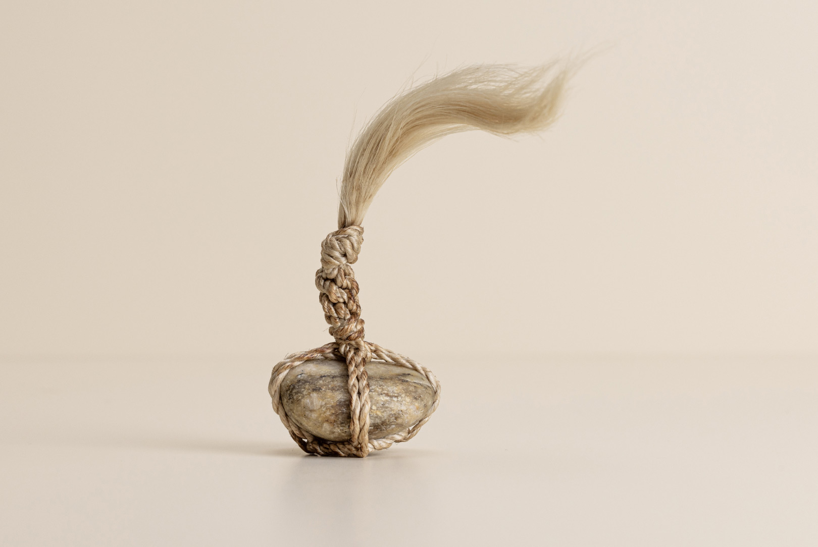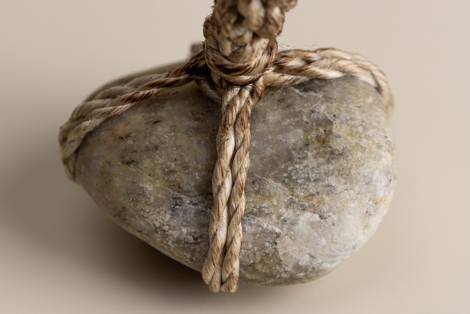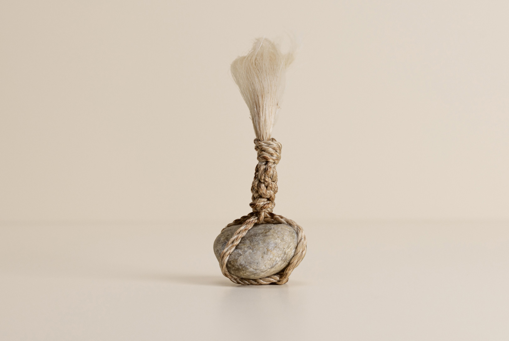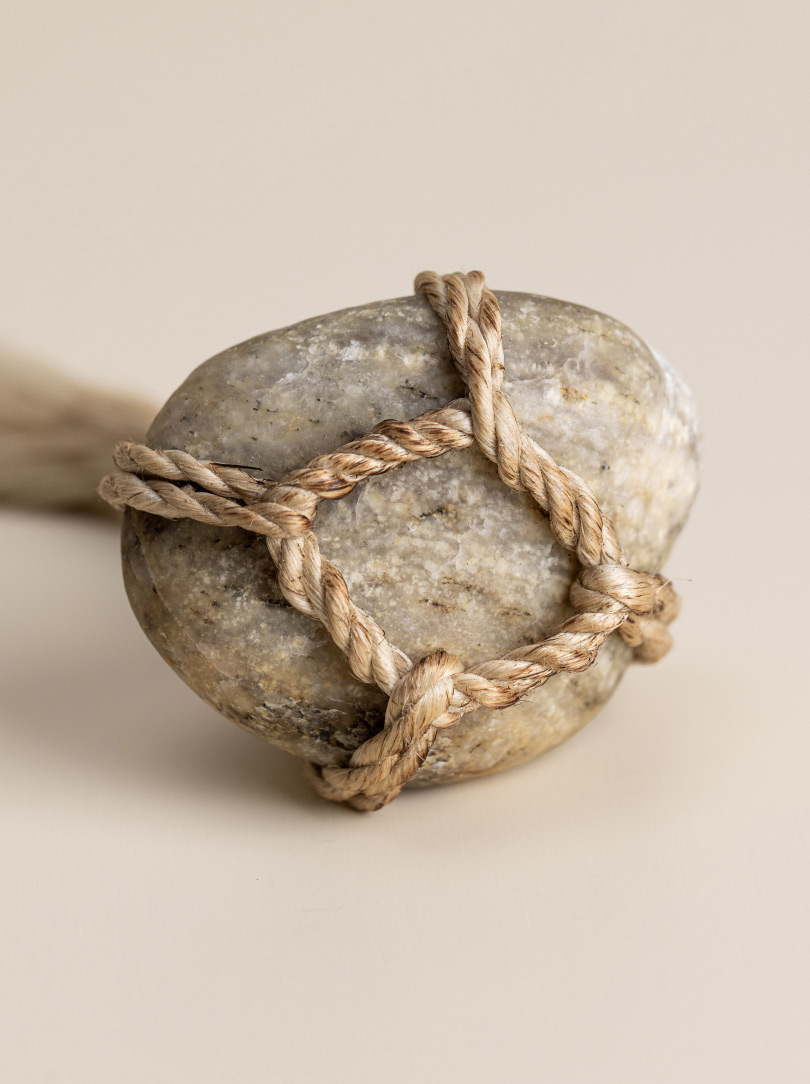 AGOBAY Showroom ZurichOften used in Japanese temples and tea houses, ‘kekkai’ stones are crafted with intention. They are not merely objects but keepers of spiritual wisdom, echoing the Zen philosophy that ‘heaven, earth and I all share the same origin, and are therefore one’. In Japan, this has led to a spirit of respect for nature and a desire to live in harmony with it since ancient times. The tactile roughness of the stone and the smooth strength of the hemp invite one to ponder the interconnectedness of our existence with nature.