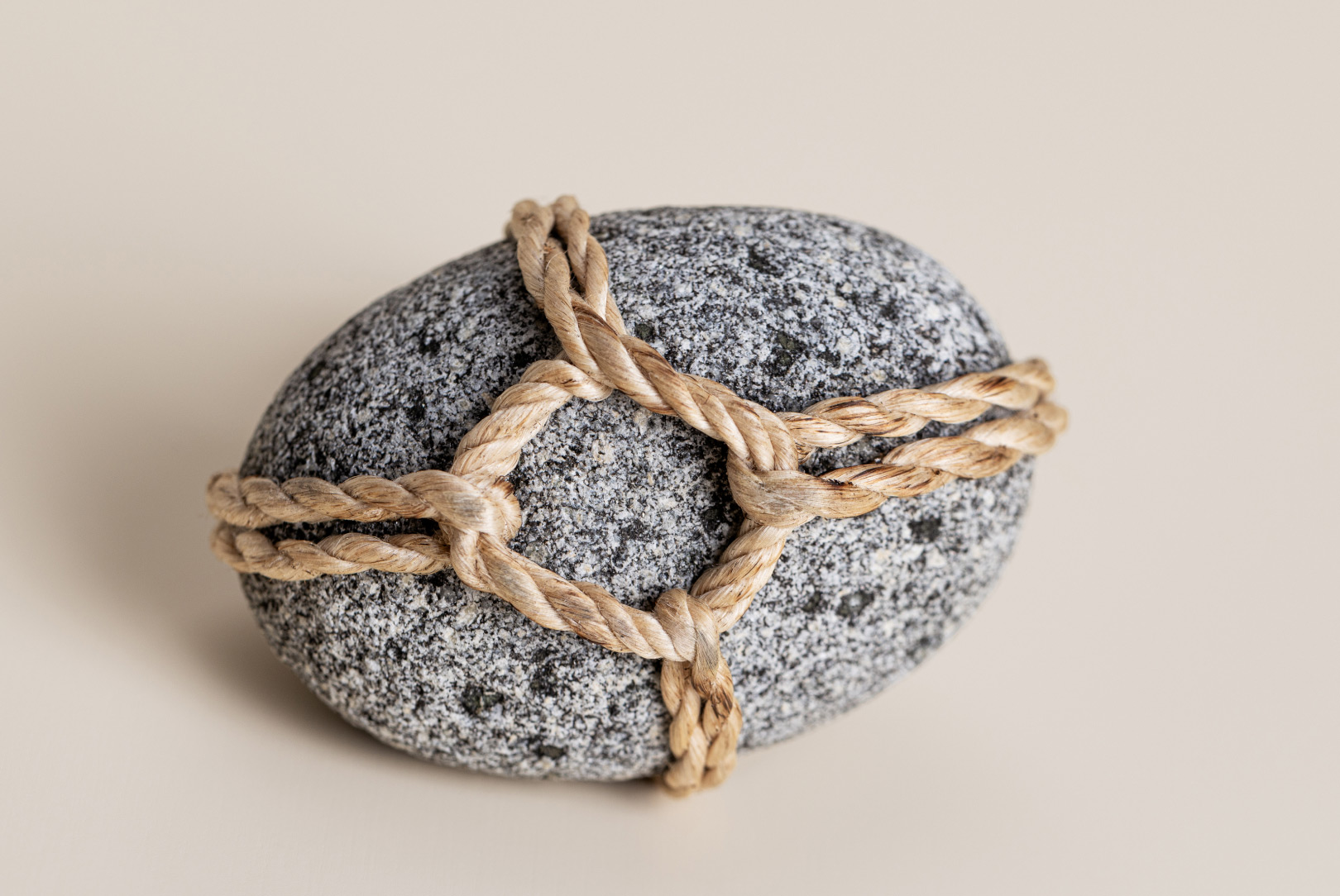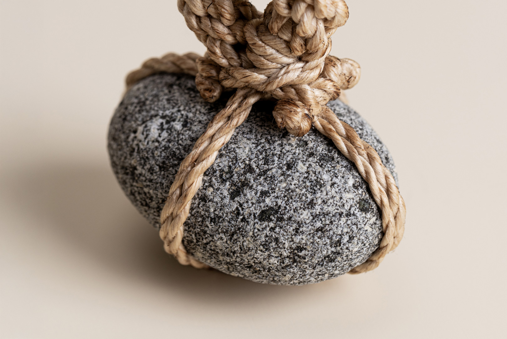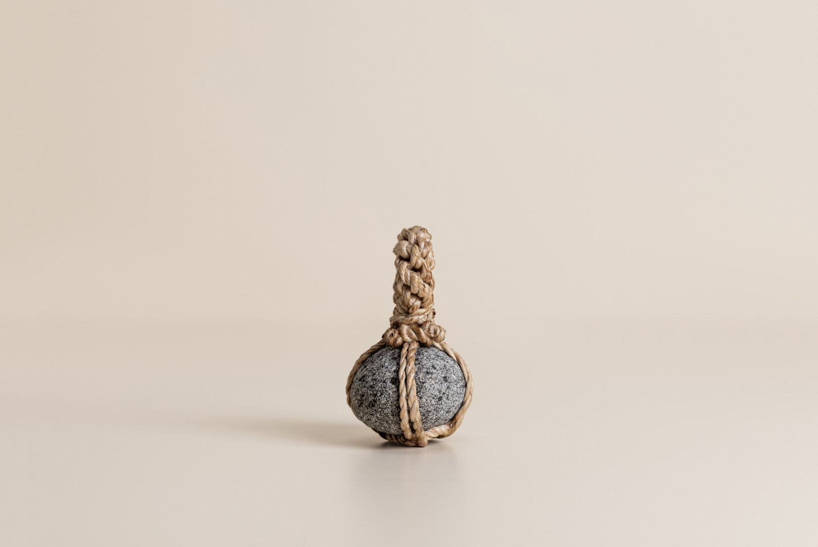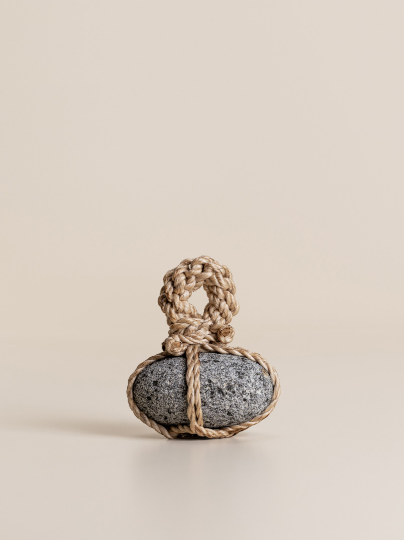 AGOBAY Showroom ZurichOften used in Japanese temples and tea houses, ‘kekkai’ stones are crafted with intention. They are not merely objects but keepers of spiritual wisdom, echoing the Zen philosophy that ‘heaven, earth and I all share the same origin, and are therefore one’. In Japan, this has led to a spirit of respect for nature and a desire to live in harmony with it since ancient times. The tactile roughness of the stone and the smooth strength of the hemp invite one to ponder the interconnectedness of our existence with nature.