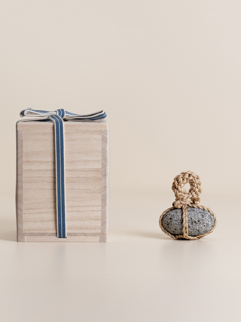 Each stone is delicately wrapped in washi paper, a traditional Japanese paper crafted from the elongated inner fibres of three plants: kozo, mitsumata and gampi. It is presented in a wooden box bearing the artisan’s signature mark. The box itself is made of Paulownia wood, known in East Asia as the ‘empress tree’ and valued for its lightweight but strong properties.