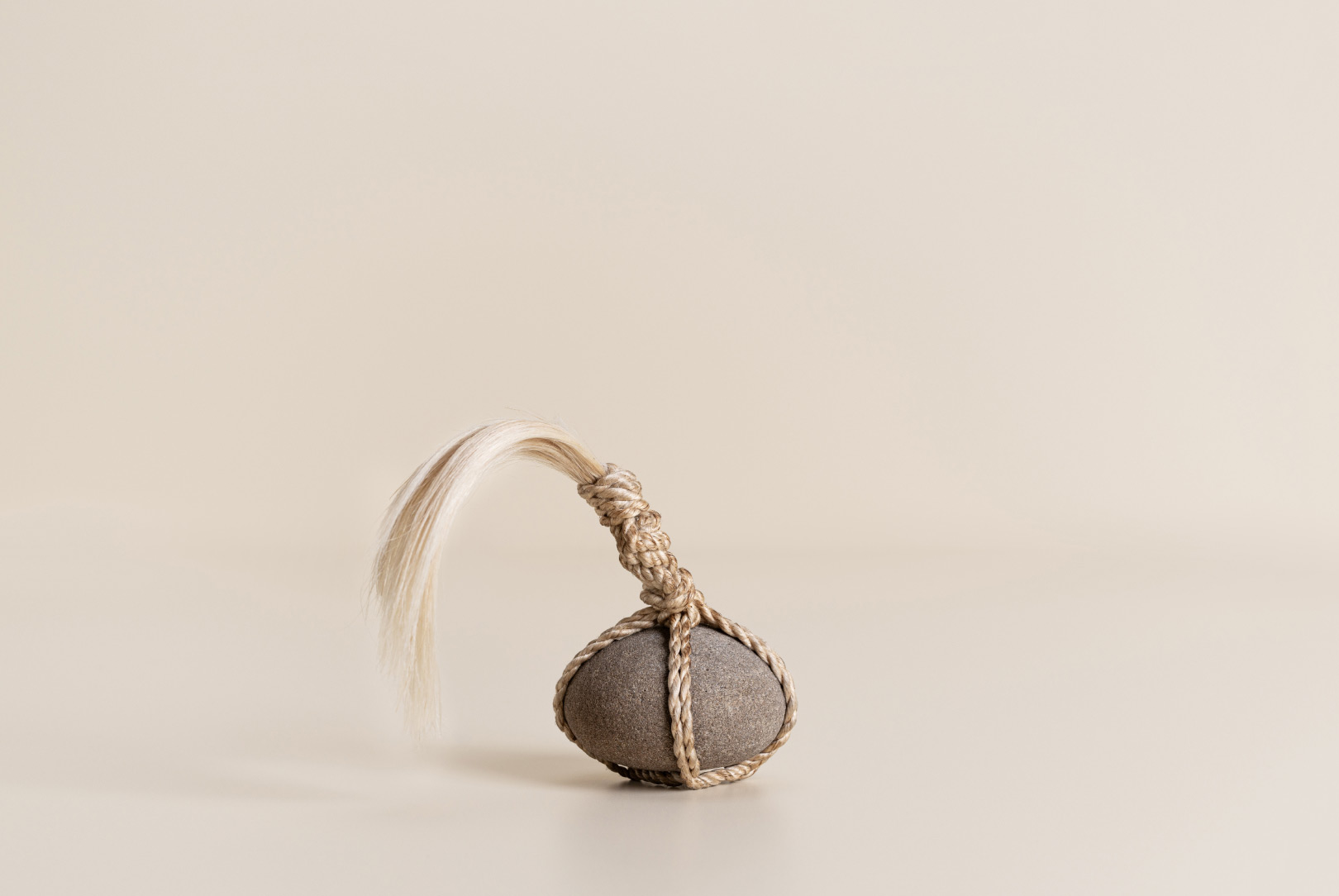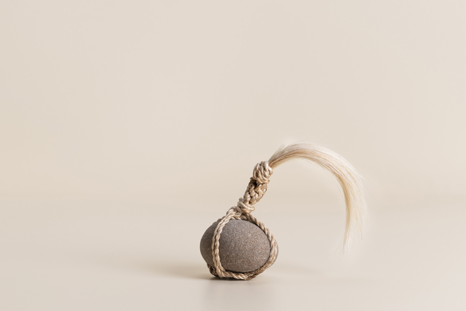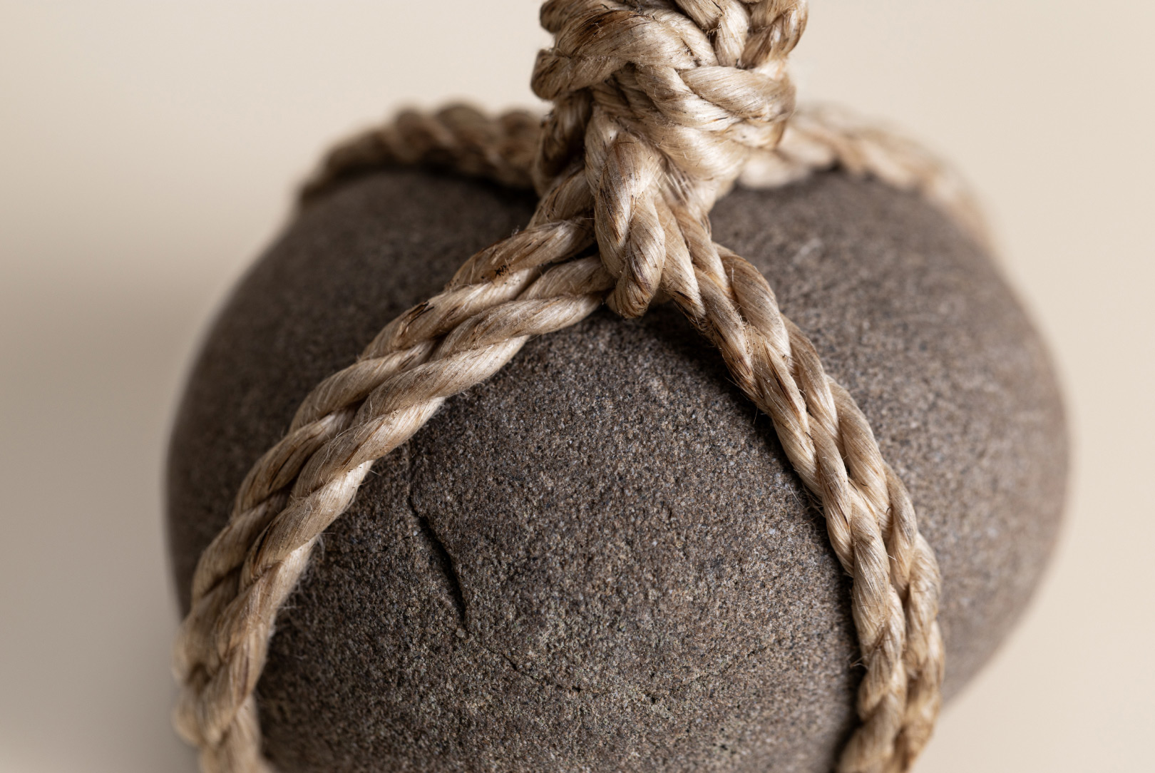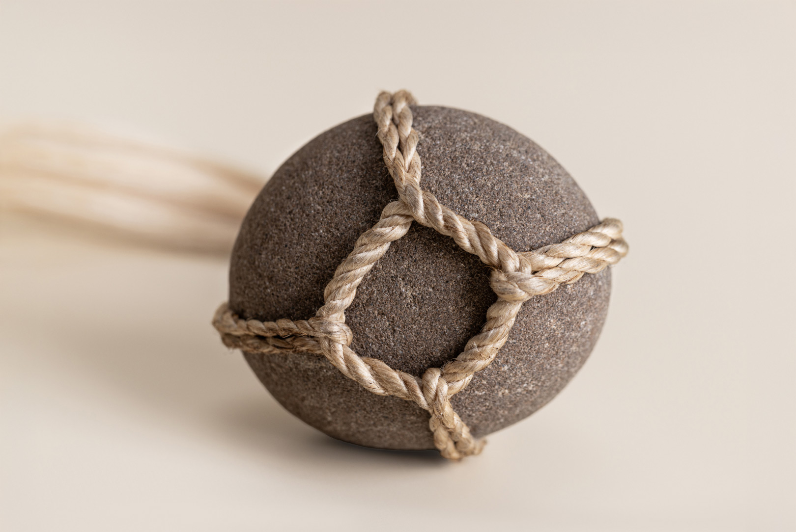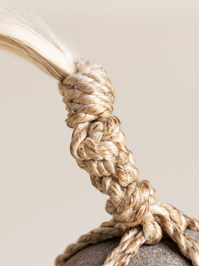 AGOBAY Showroom ZurichOften used in Japanese temples and tea houses, kekkai stones are crafted with intention. They are not merely objects but keepers of spiritual wisdom, echoing the Zen philosophy that ‘heaven, earth and I all share the same origin, and are therefore one’. In Japan, this has led to a spirit of respect for nature and a desire to live in harmony with it since ancient times. The tactile roughness of the stone and the smooth strength of the hemp invite one to ponder the interconnectedness of our existence with nature.