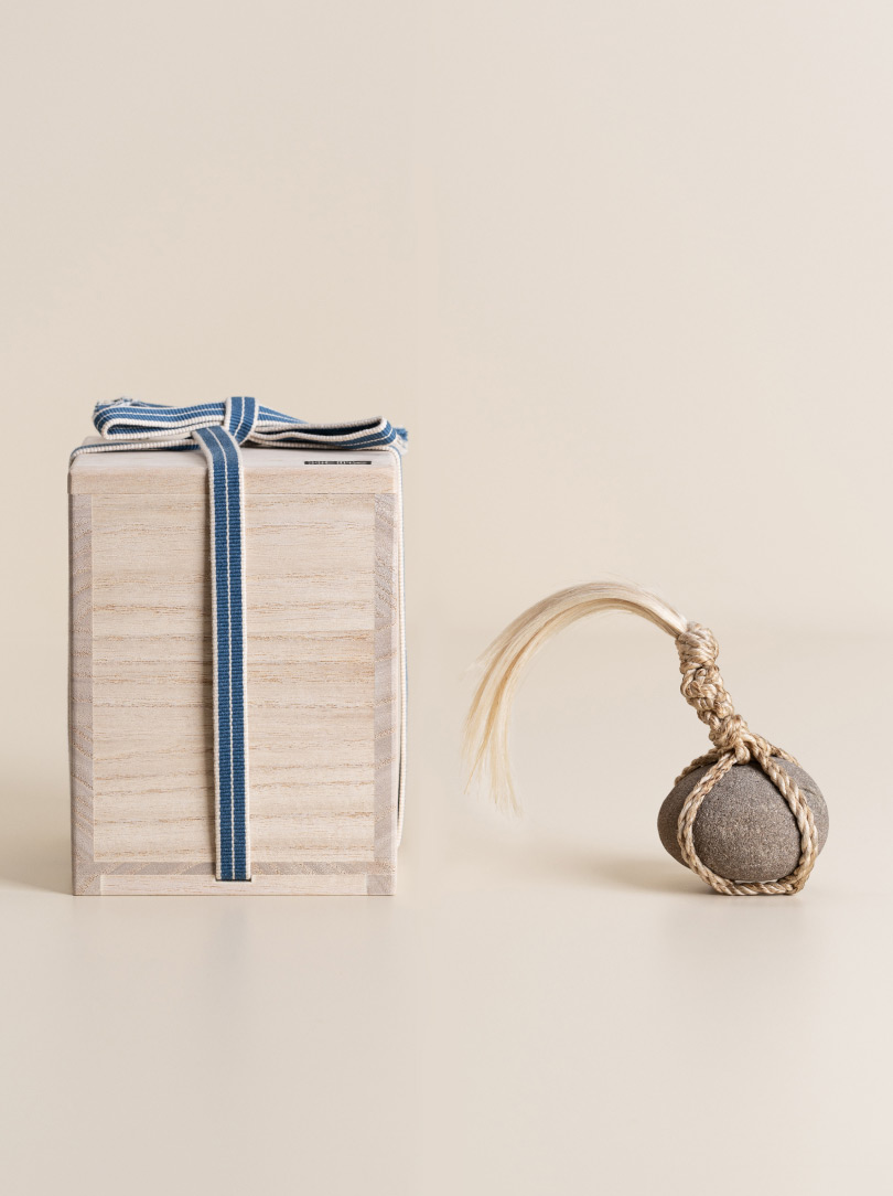 Each stone is delicately wrapped in washi paper, a traditional Japanese paper crafted from the elongated inner fibres of three plants: kozo, mitsumata and gampi. It is presented in a wooden box bearing the artisan’s signature mark. The box itself is made of Paulownia wood, known in East Asia as the ‘empress tree’ and valued for its lightweight but strong properties.