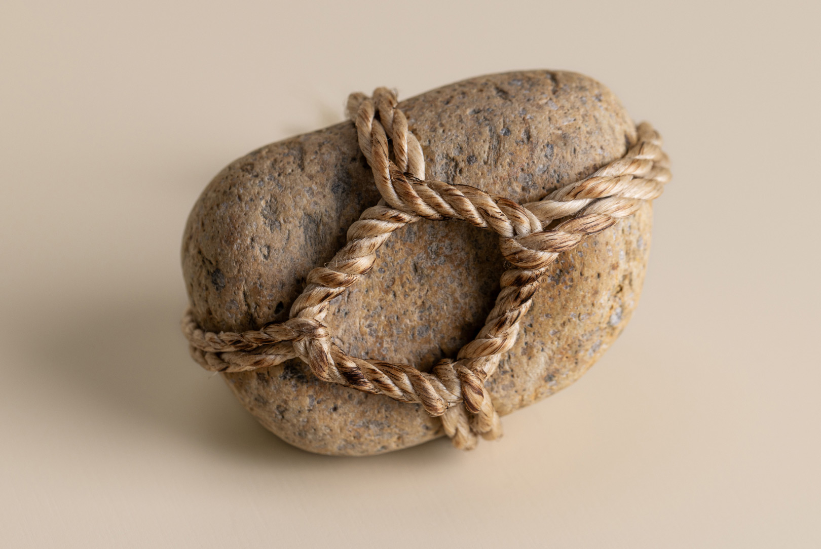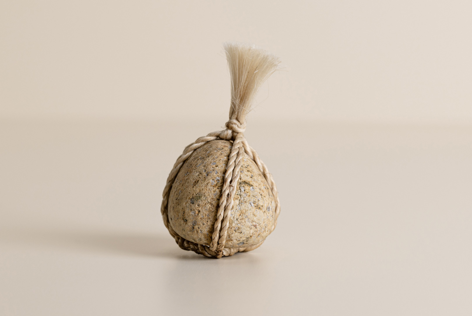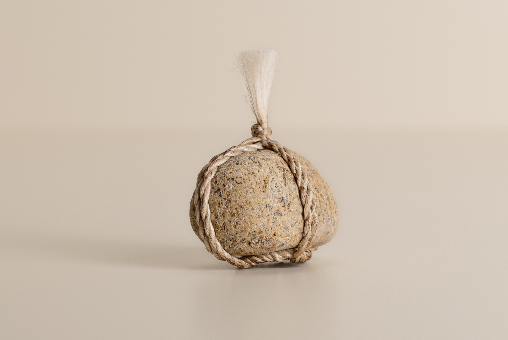 AGOBAY Showroom ZurichOften used in Japanese temples and tea houses, kekkai stones are crafted with intention. They are not merely objects but keepers of spiritual wisdom, echoing the Zen philosophy that ‘heaven, earth and I all share the same origin, and are therefore one’. In Japan, this has led to a spirit of respect for nature and a desire to live in harmony with it since ancient times. The tactile roughness of the stone and the smooth strength of the hemp invite one to ponder the interconnectedness of our existence with nature.